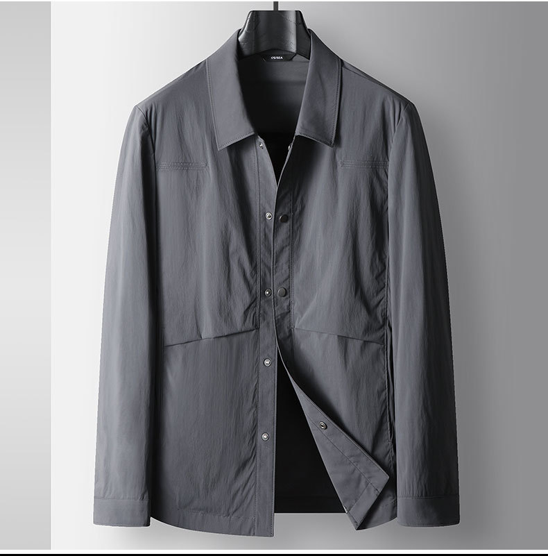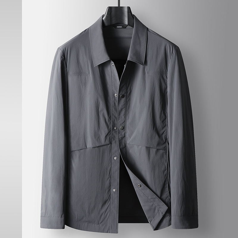 남성 자켓 2025 봄과 가을 마이크로 총알 비 철 옷깃 셔츠 버전 중반 청소년 럭셔리 캐주얼 작업 얇은 코트