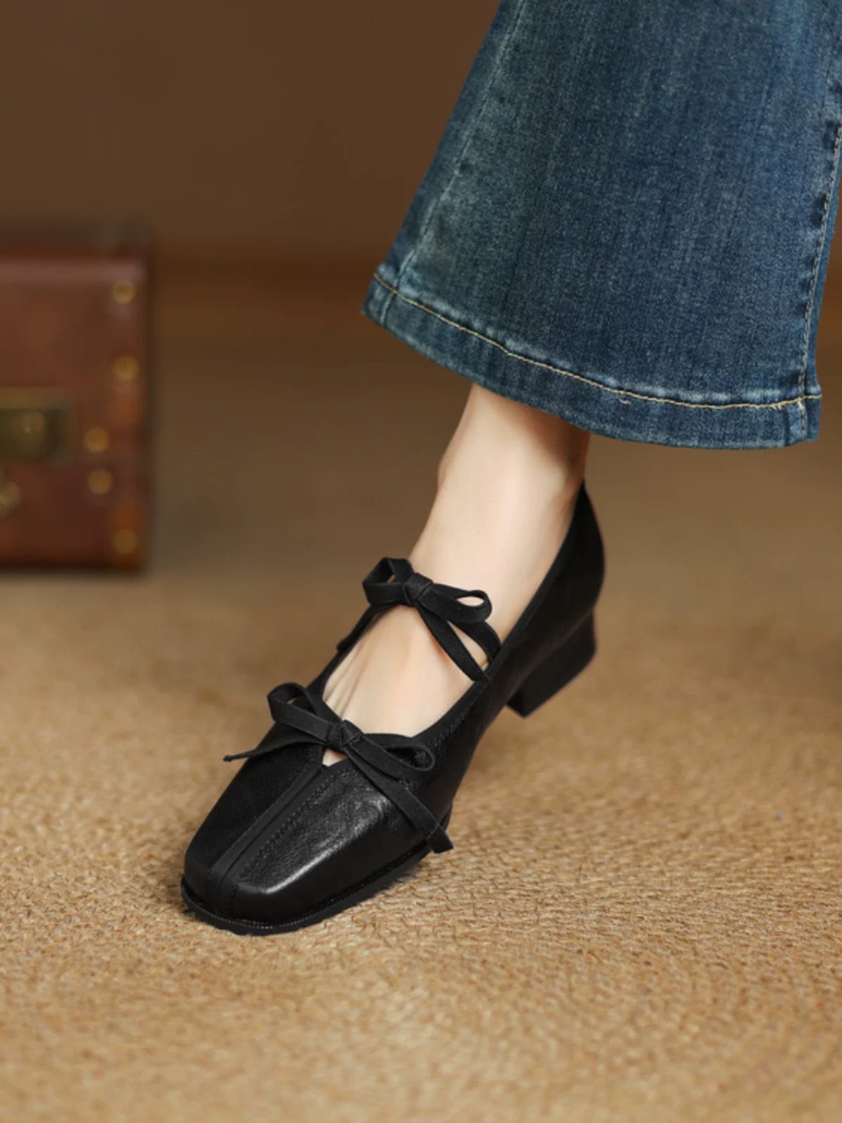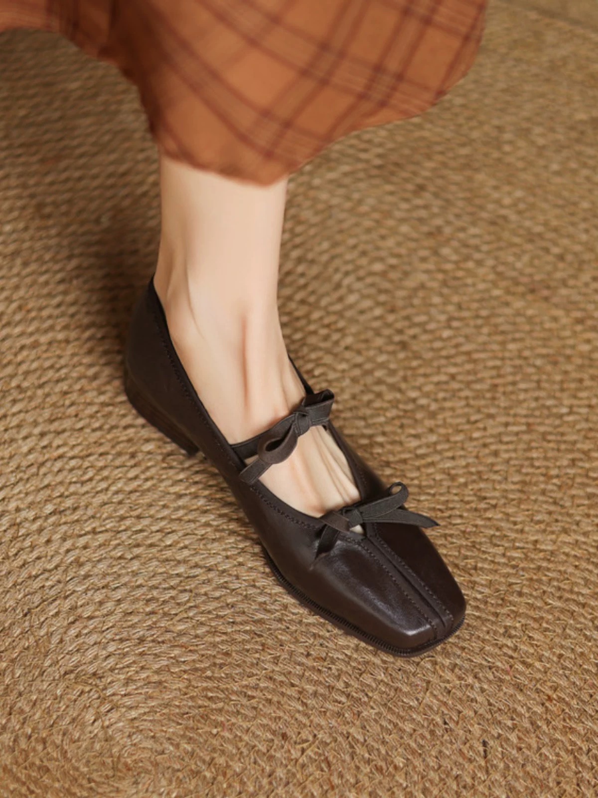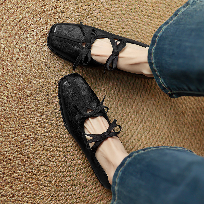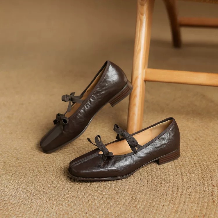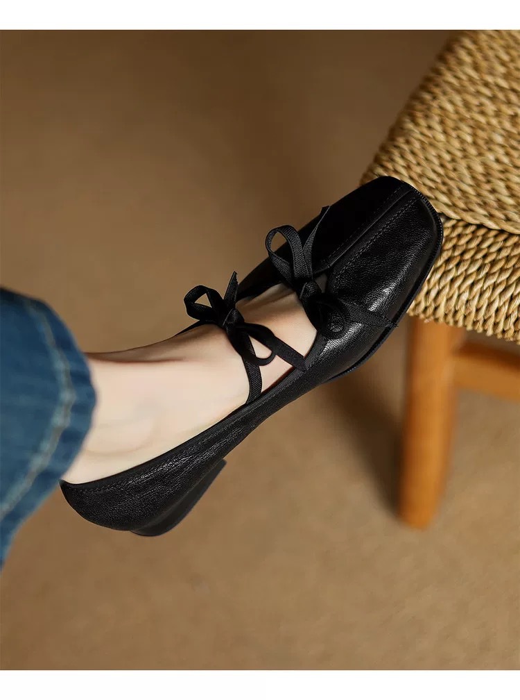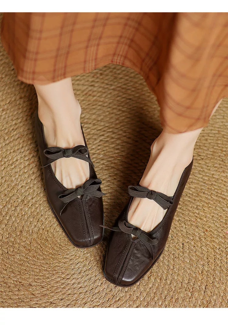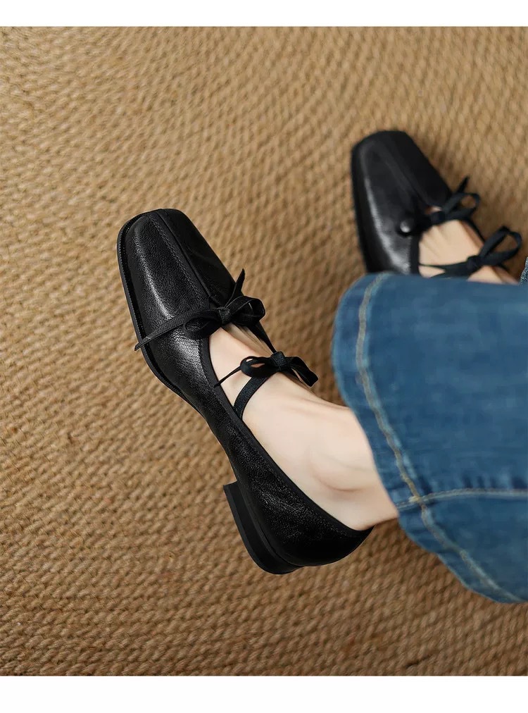대학 스타일 레트로 부드러운 가죽 활 메리 제인 작은 가죽 신발 모든 경기 스퀘어 토 플랫 싱글 레이어 신발 여성의 2025 새로운 스타일스토어 가기