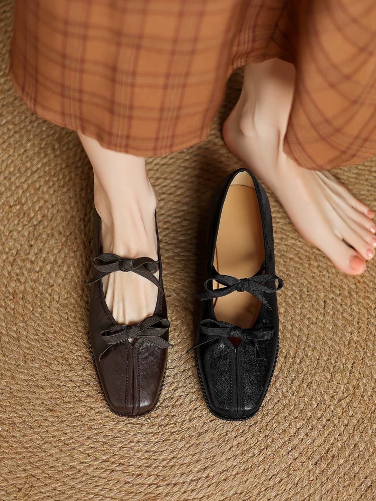 대학 스타일 레트로 부드러운 가죽 활 메리 제인 작은 가죽 신발 모든 경기 스퀘어 토 플랫 싱글 레이어 신발 여성의 2025 새로운 스타일