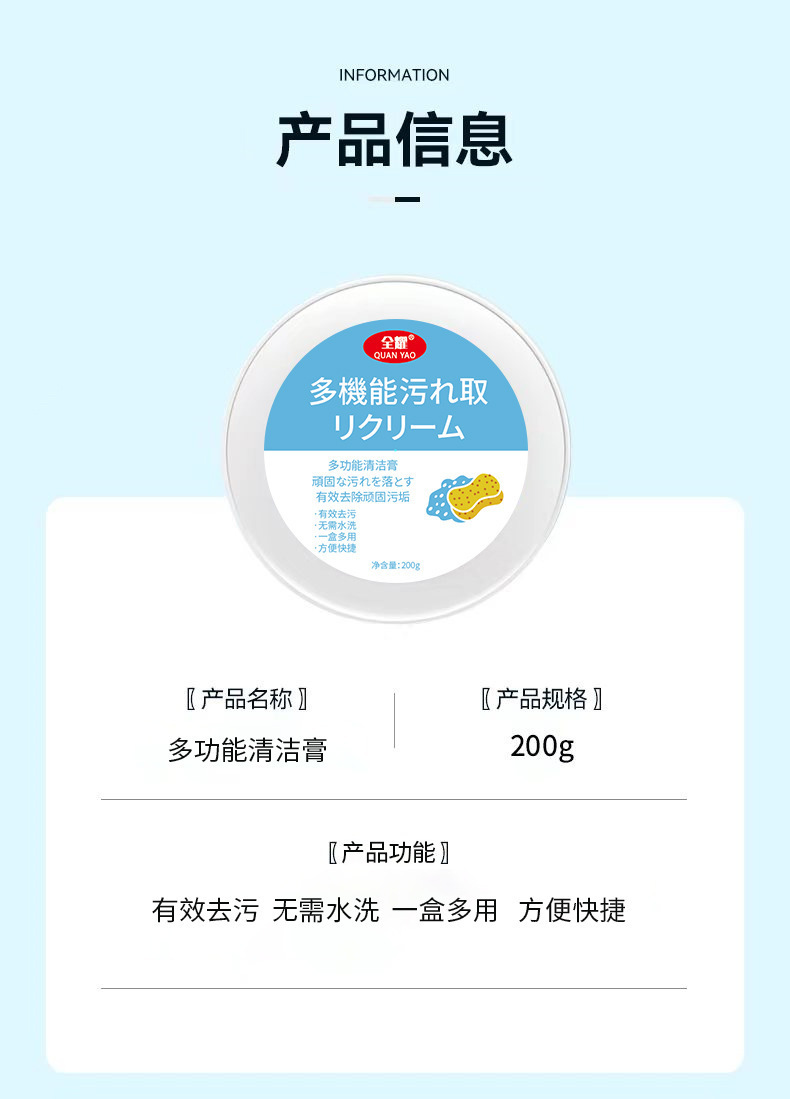 • Quanyao 다기능 청소 페이스트 200g 블루 라벨