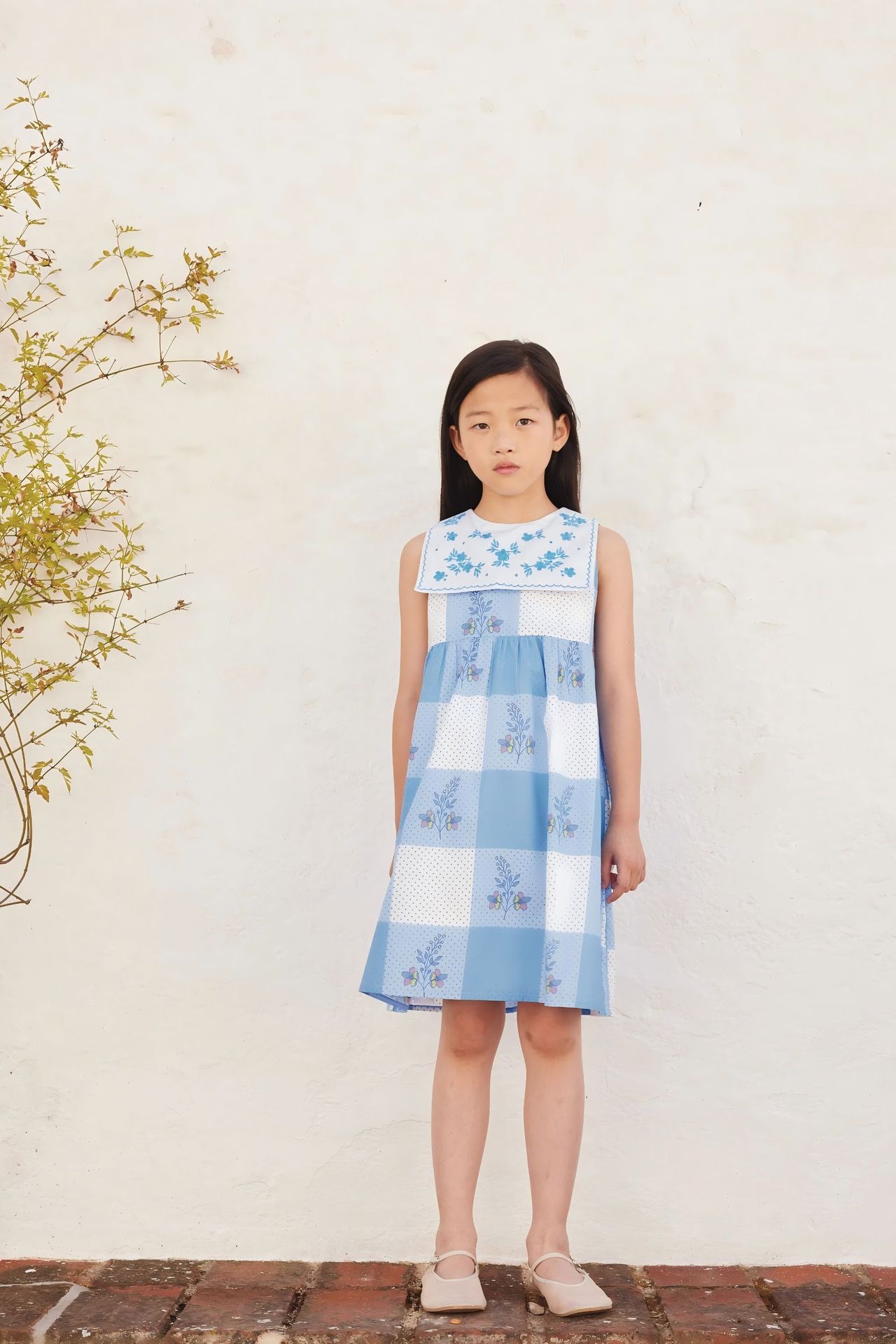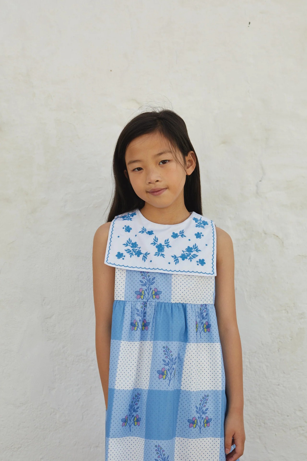 • 파란색 체크무늬 드레스 재고 있음