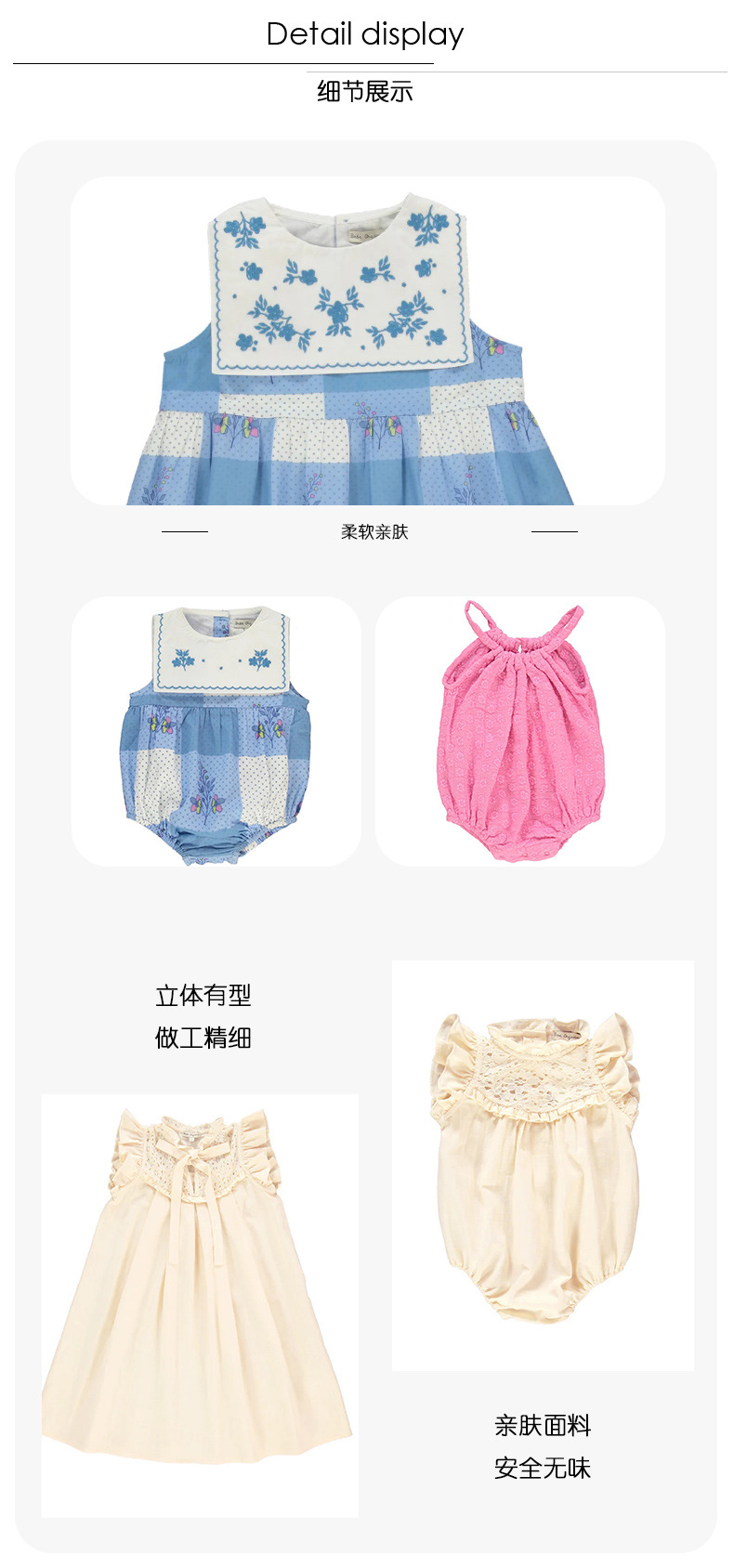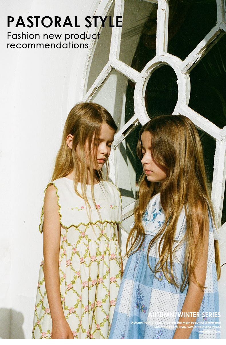 재고 있음 소녀 스커트 정장 새로운 휴가 시리즈 면화 얇은 드레스 소녀와 어린이를위한 민소매 크롤링 슈트스토어 가기