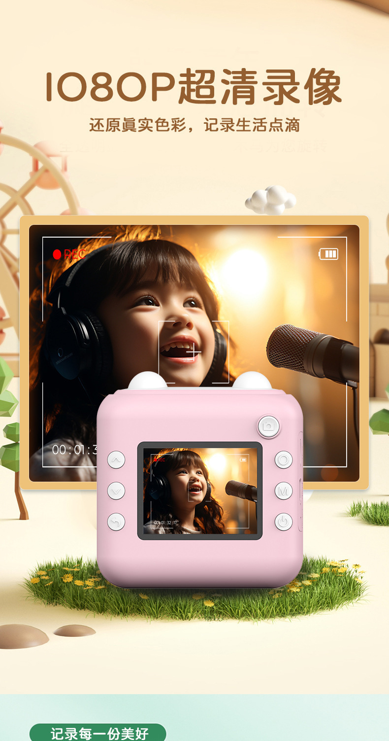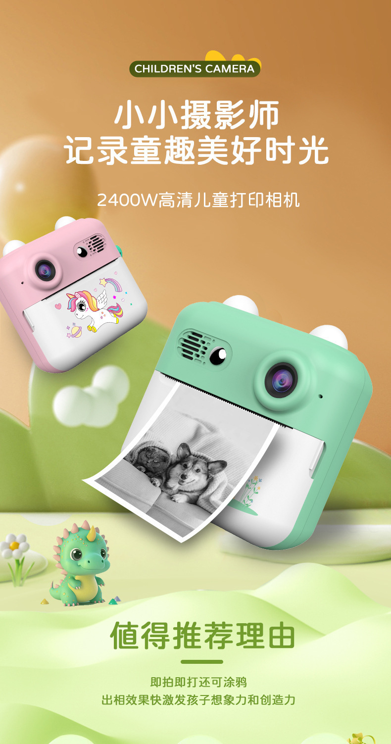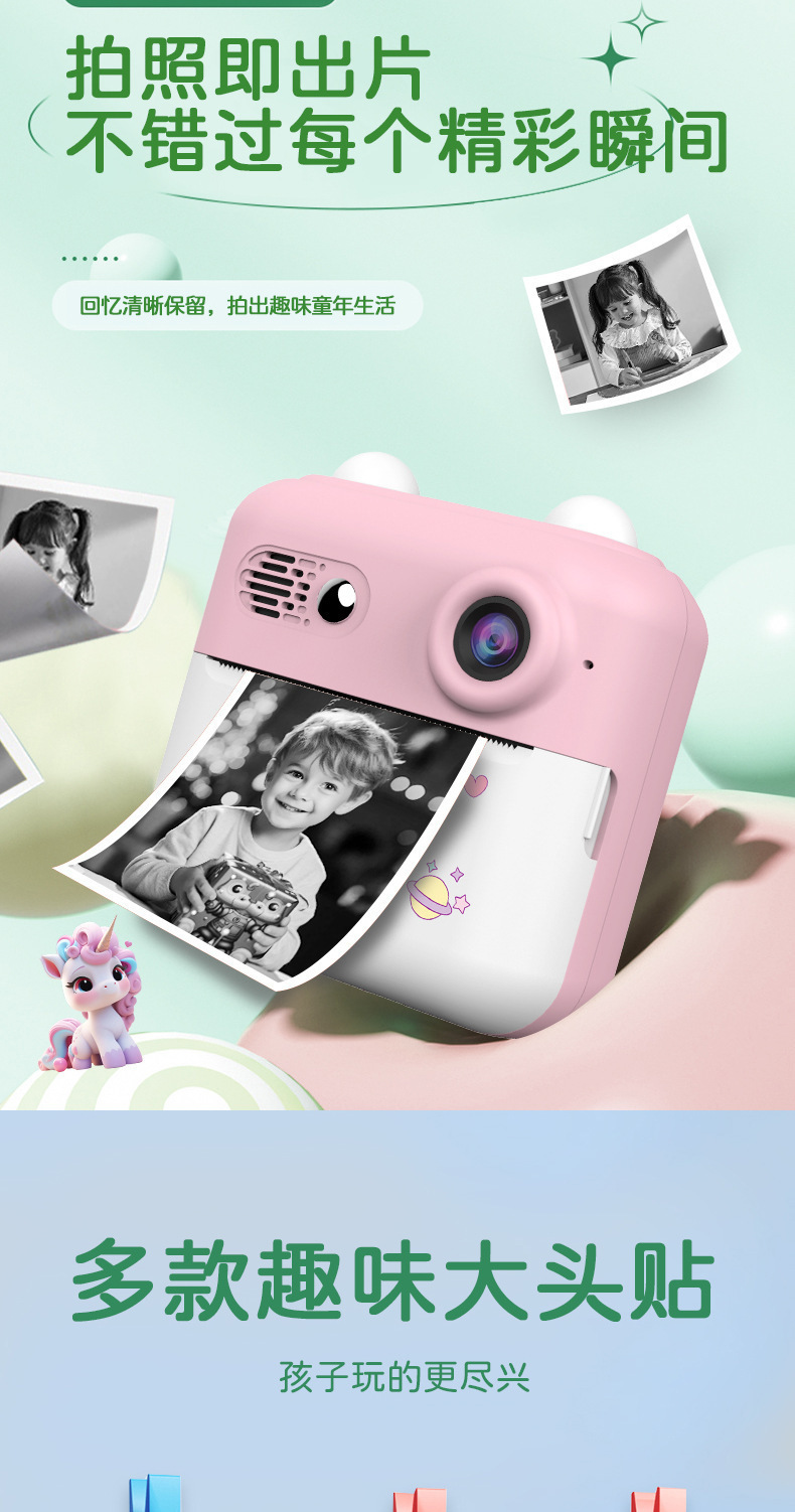 유니콘 어린이 인쇄 카메라 만화 미니 아기 돌리 디지털 카메라 장난감 열에 민감한 테이크 앤 플레이스토어 가기
