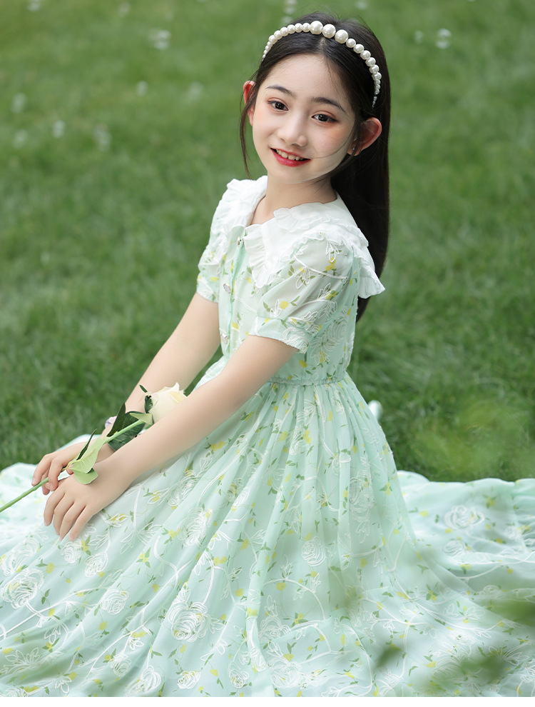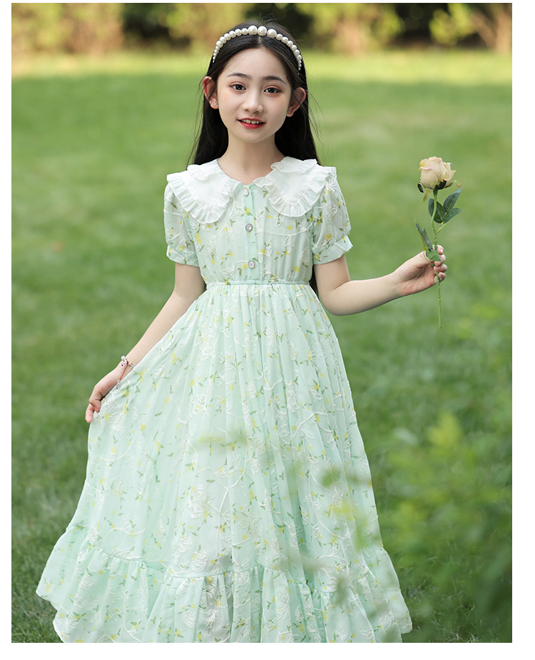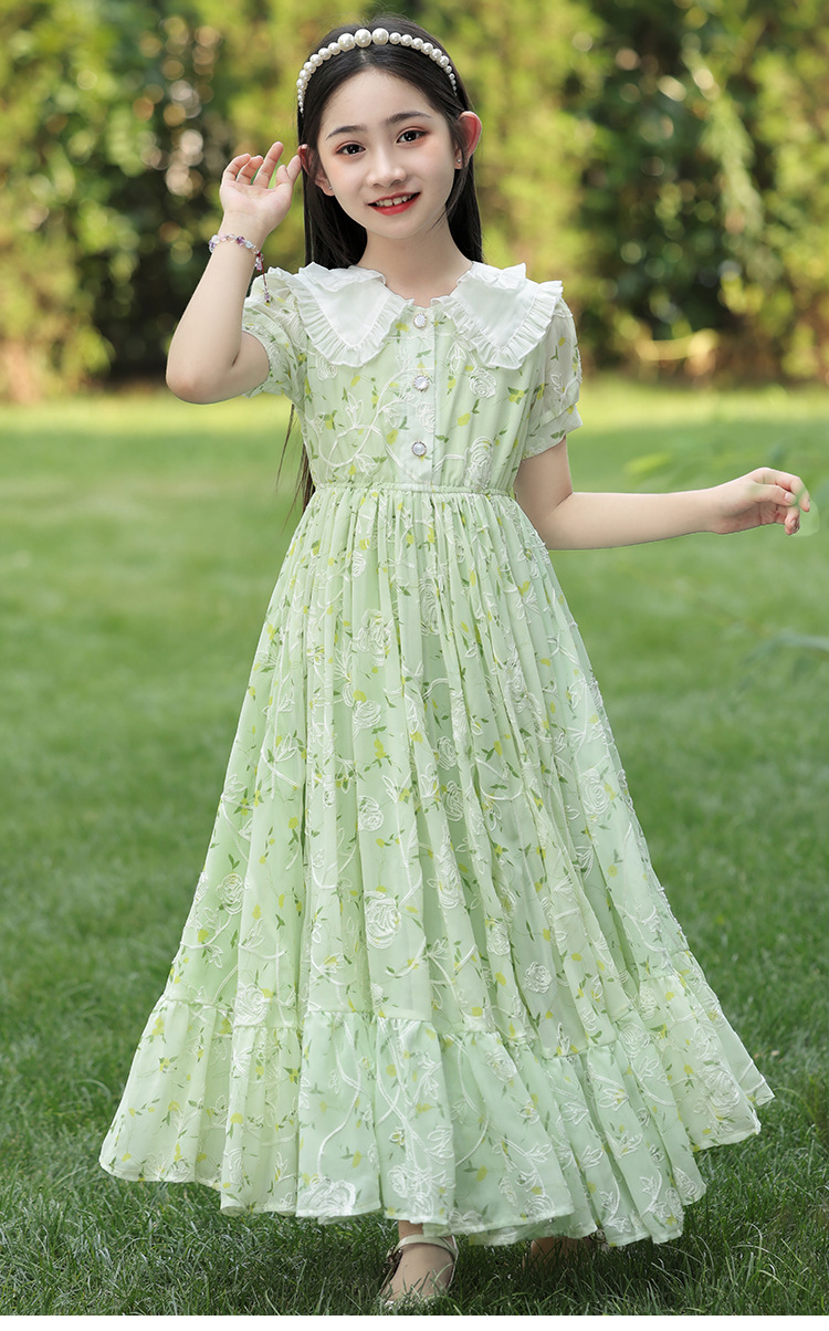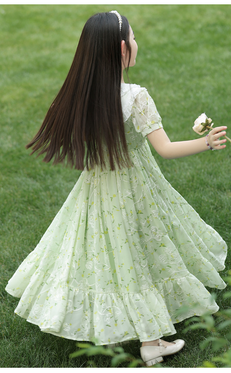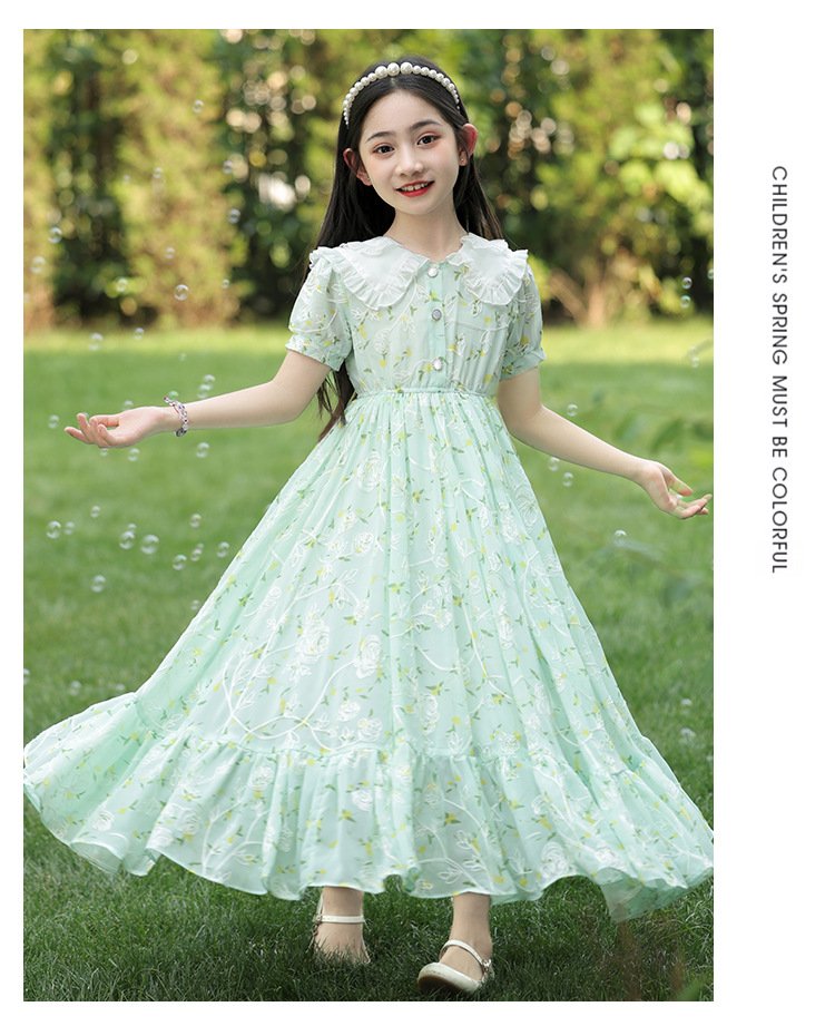 소녀 여름 원피스 원피스 2025 새로운 어린이 공주 원피스 서양식 긴 원피스 여름 꽃 시폰 원피스