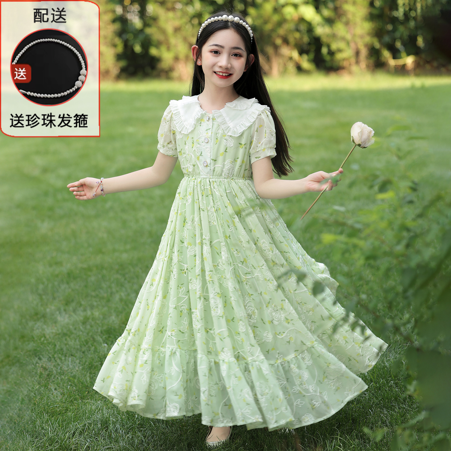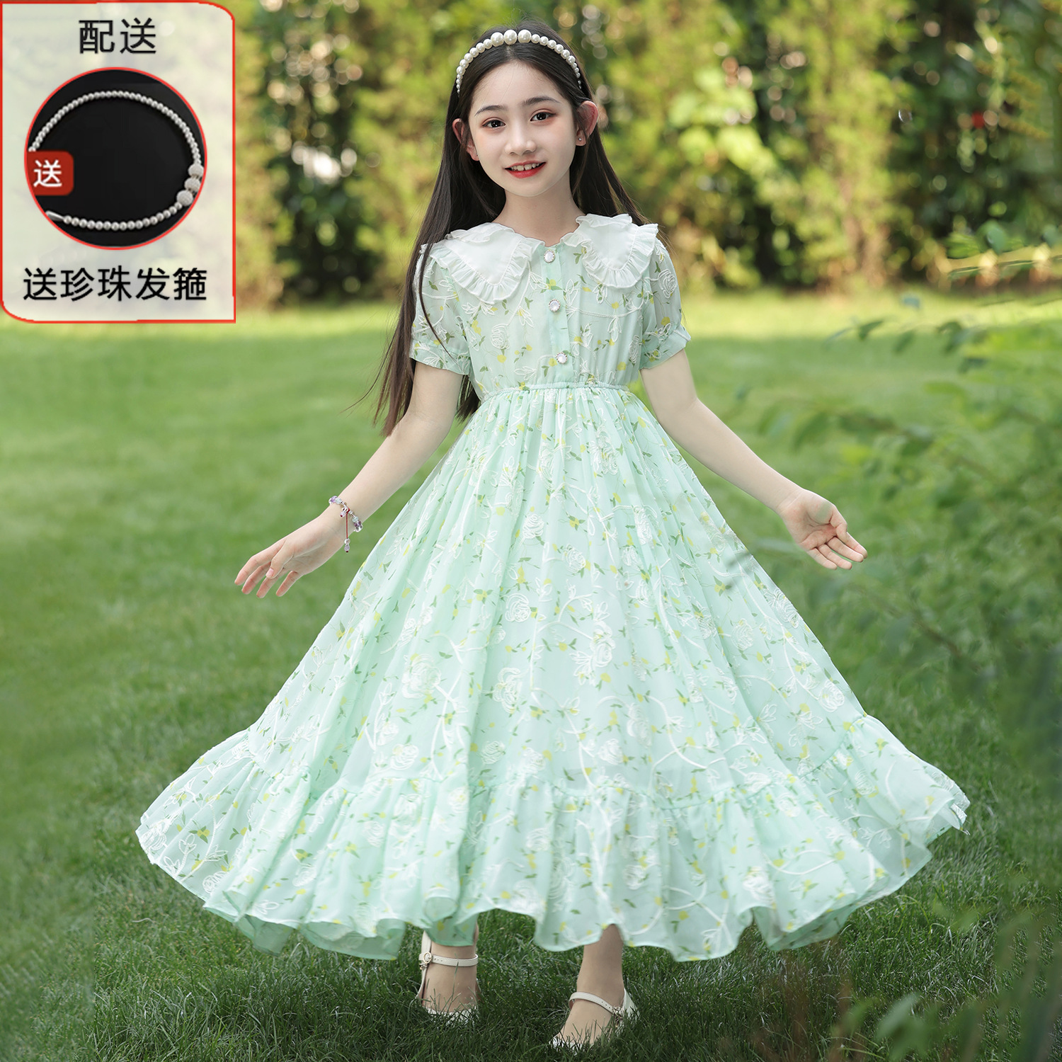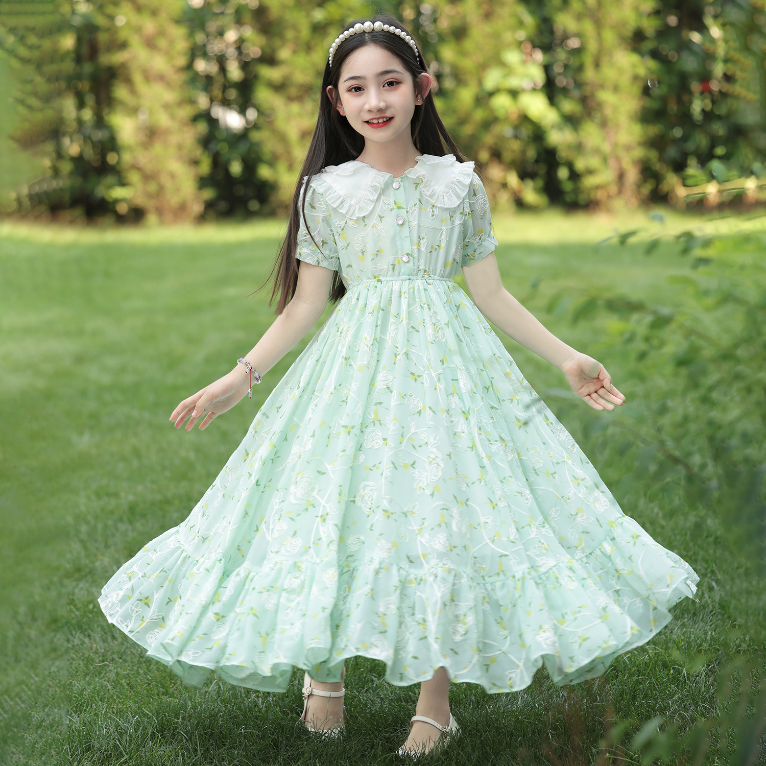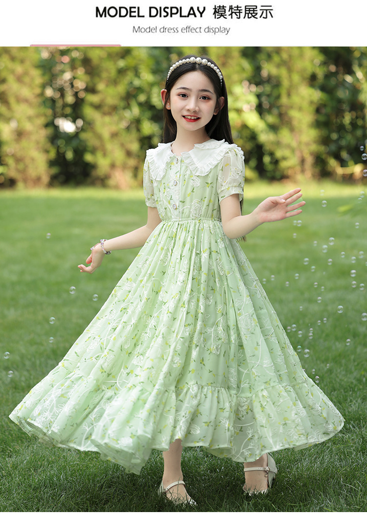 소녀 여름 원피스 원피스 2025 새로운 어린이 공주 원피스 서양식 긴 원피스 여름 꽃 시폰 원피스스토어 가기