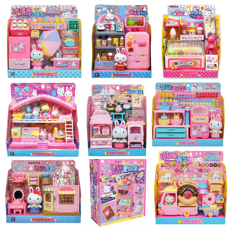 토끼 시뮬레이션 의사 세탁기 냉장고 과즙 기 출납원 놀이 장난감 소녀 핑크 시리즈스토어 가기