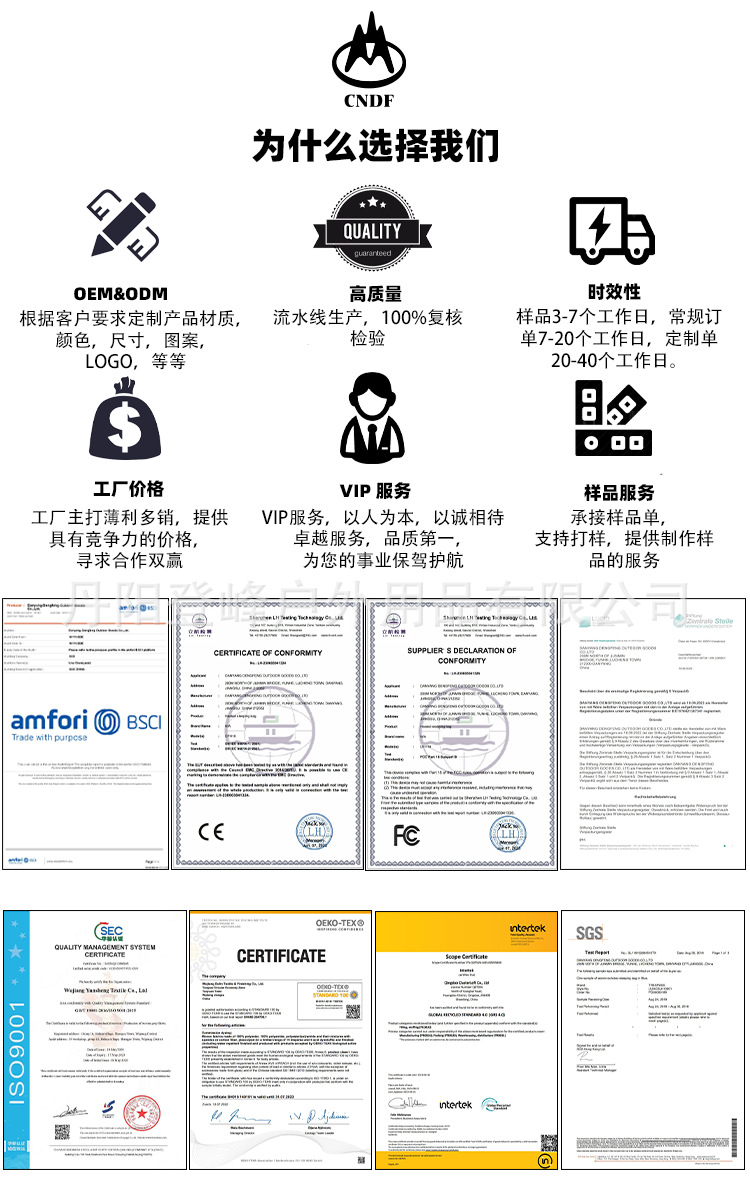 A7: 经过长时间不断的调整,我们做到了对生产全环节的把控,坚持高标准高质量完成每一个订单。 同时, 我们也通过了BSCI认证, ISO9001体系认证.