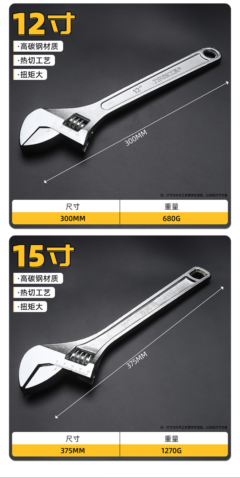 조정 가능한 렌치 크롬 도금 조정 가능한 렌치 도매 조명 핸들 조정 가능한 렌치 오픈 엔드 조정 가능한 렌치 공장 공급