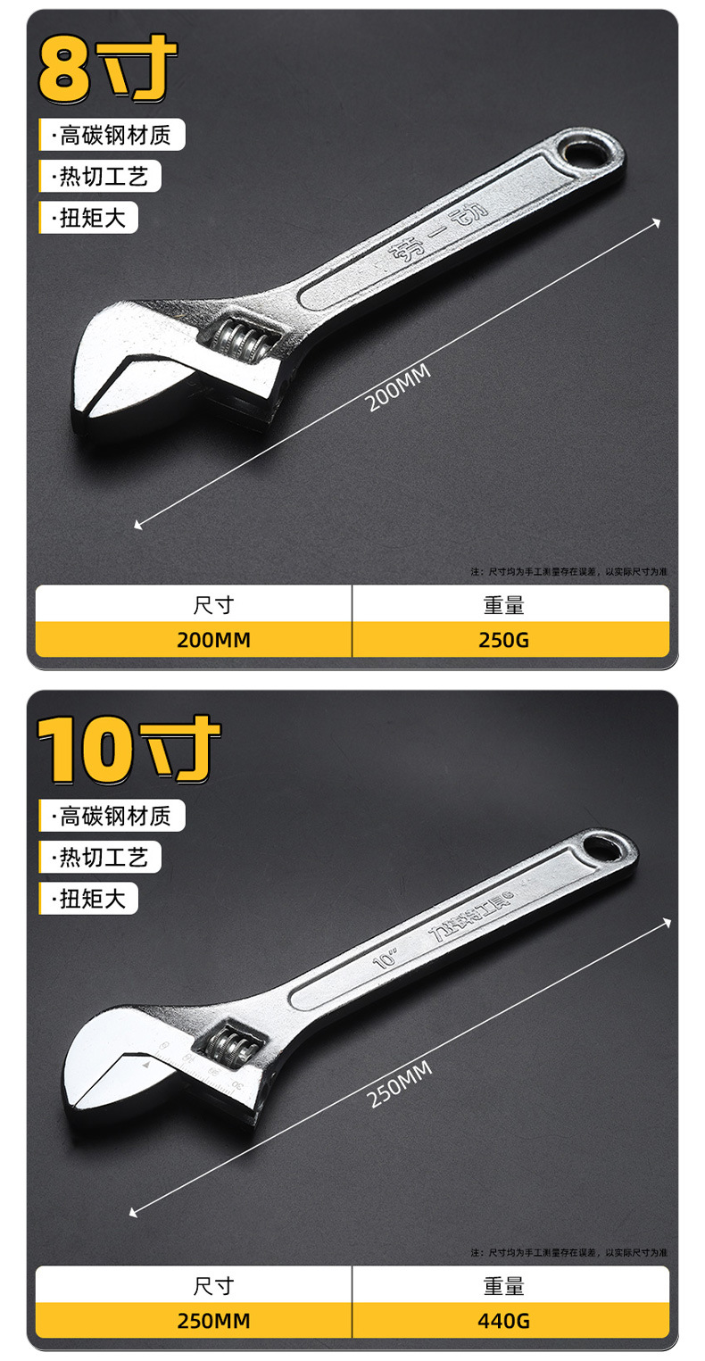 조정 가능한 렌치 크롬 도금 조정 가능한 렌치 도매 조명 핸들 조정 가능한 렌치 오픈 엔드 조정 가능한 렌치 공장 공급스토어 가기