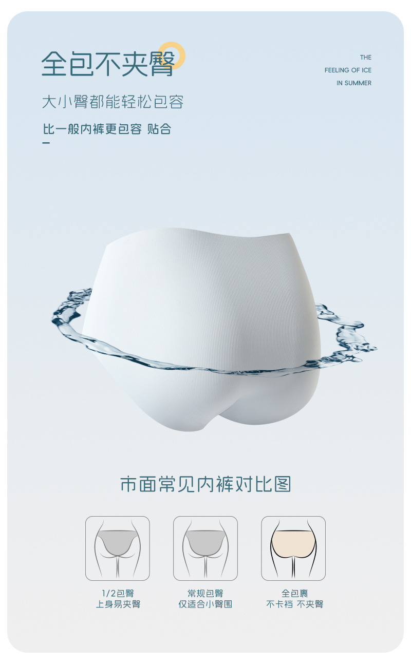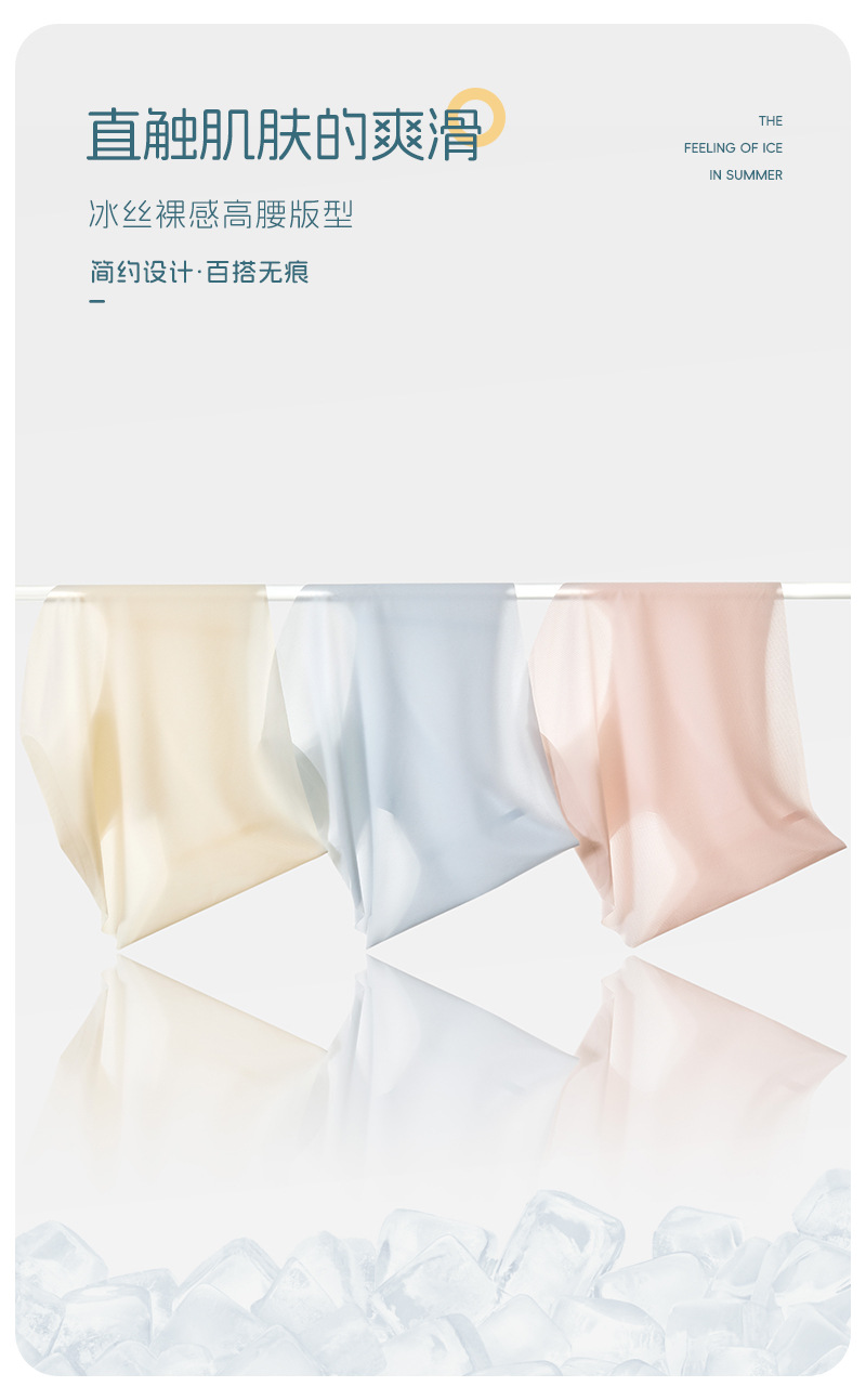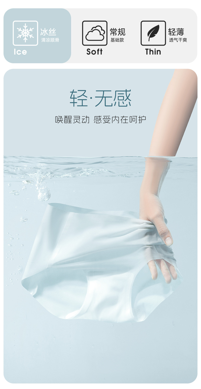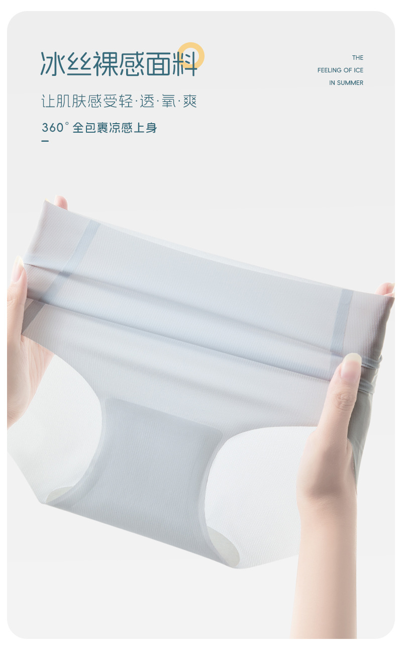 여름 얇은 얼음 실크 속옷 여성의 추적없는 빠른 건조 통기성 브리프 7A 항균 알몸 감각 추적없는 얼음 시원한 반바지 머리스토어 가기