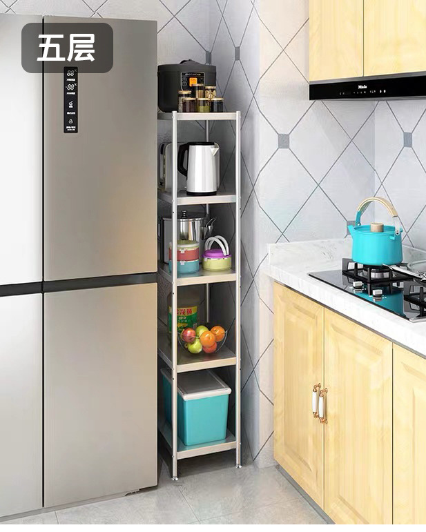 주방 스테인레스 스틸 갭 스토리지 랙 냉장고 갭 스토리지 랙 냄비 그릇 조미료 랙 다층 바닥 스토리지 랙