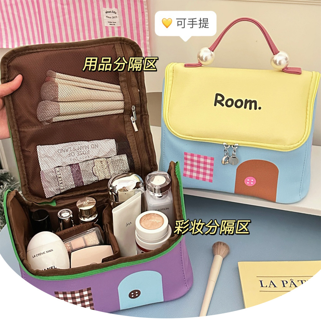 높은 뷰티 가치 도파민 하우스 화장품 가방 소녀의 대용량 파티션 휴대용 방수 가방 여행 휴대용 저장 가방스토어 가기