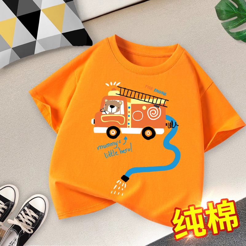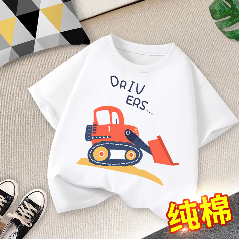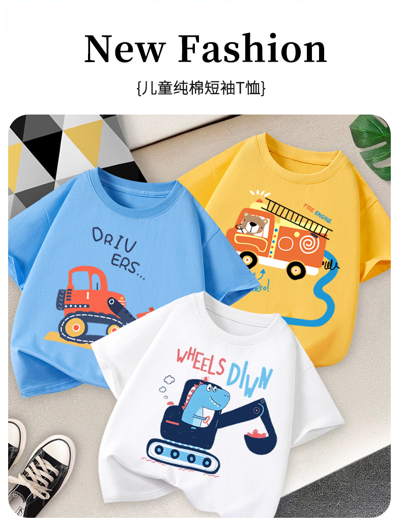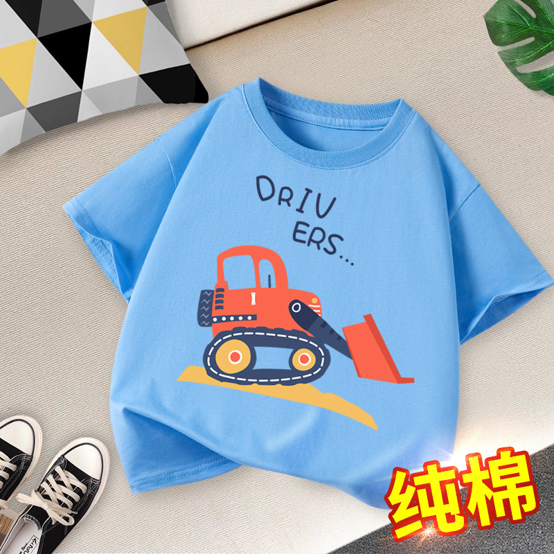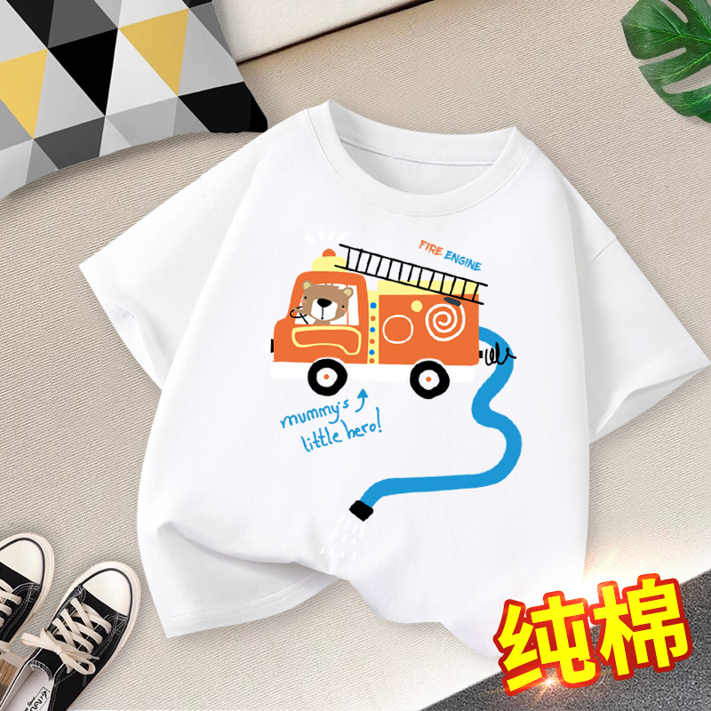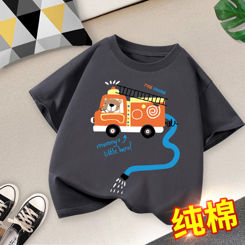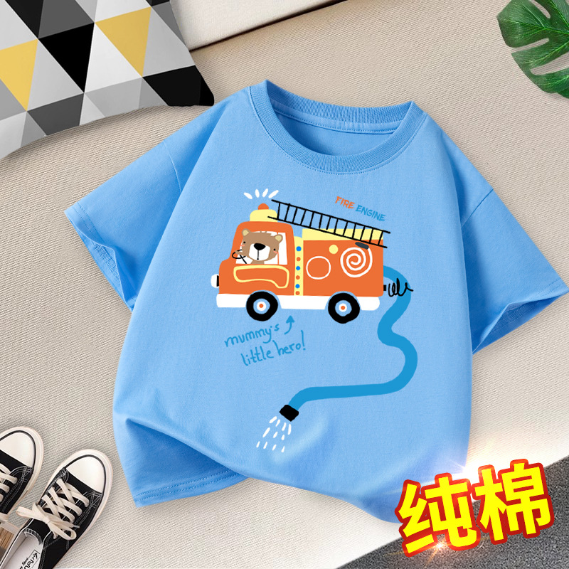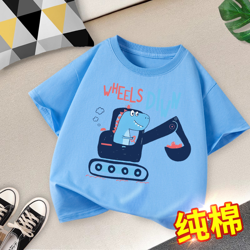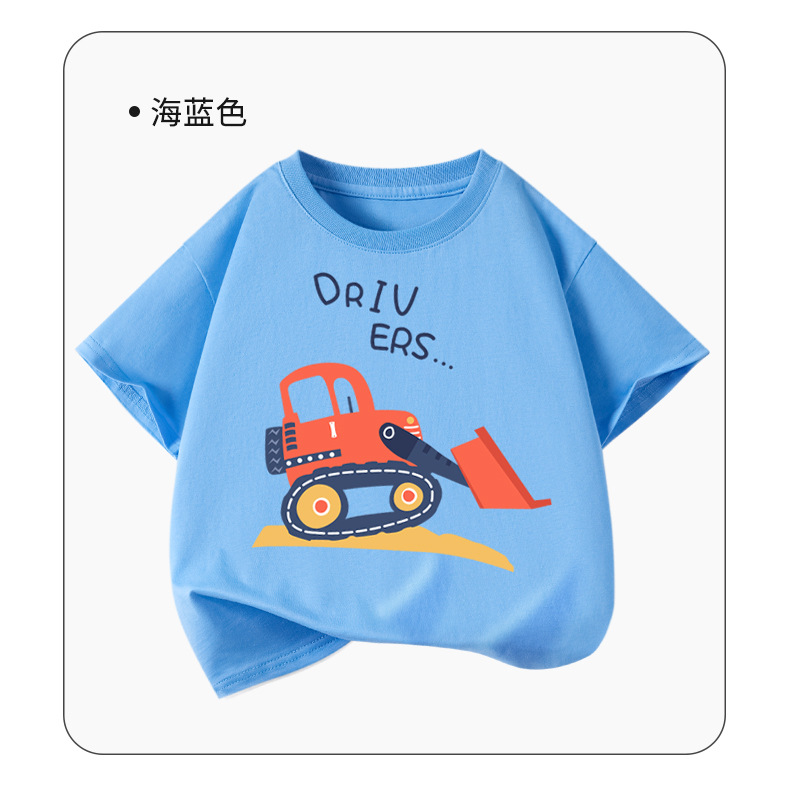 남아용 순면 티셔츠 반팔 아동복 이너웨어 중대형 아동용 세련된 라운드넥 반팔 아동용 만화 캐릭터 상의 트렌디한 아동복스토어 가기