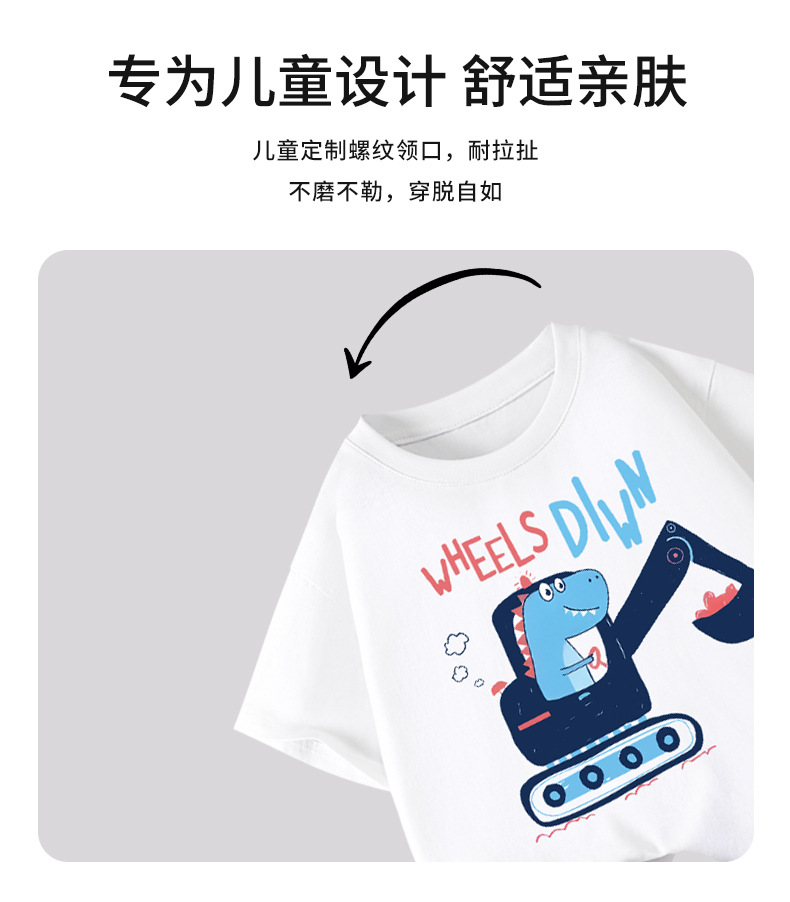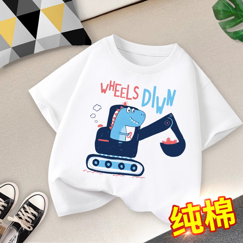 • 【순면 반팔 티셔츠】 굴삭기 공룡/화이트