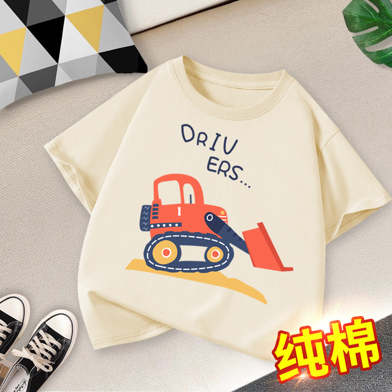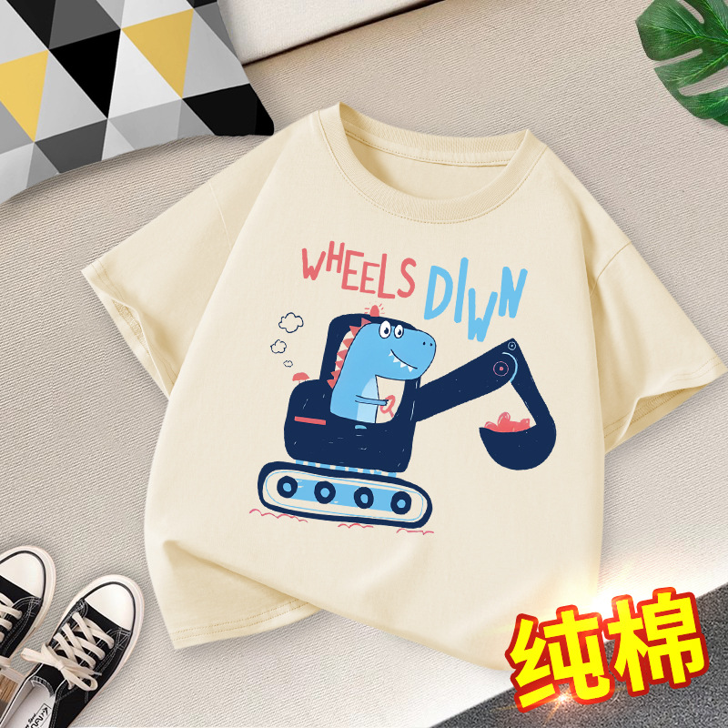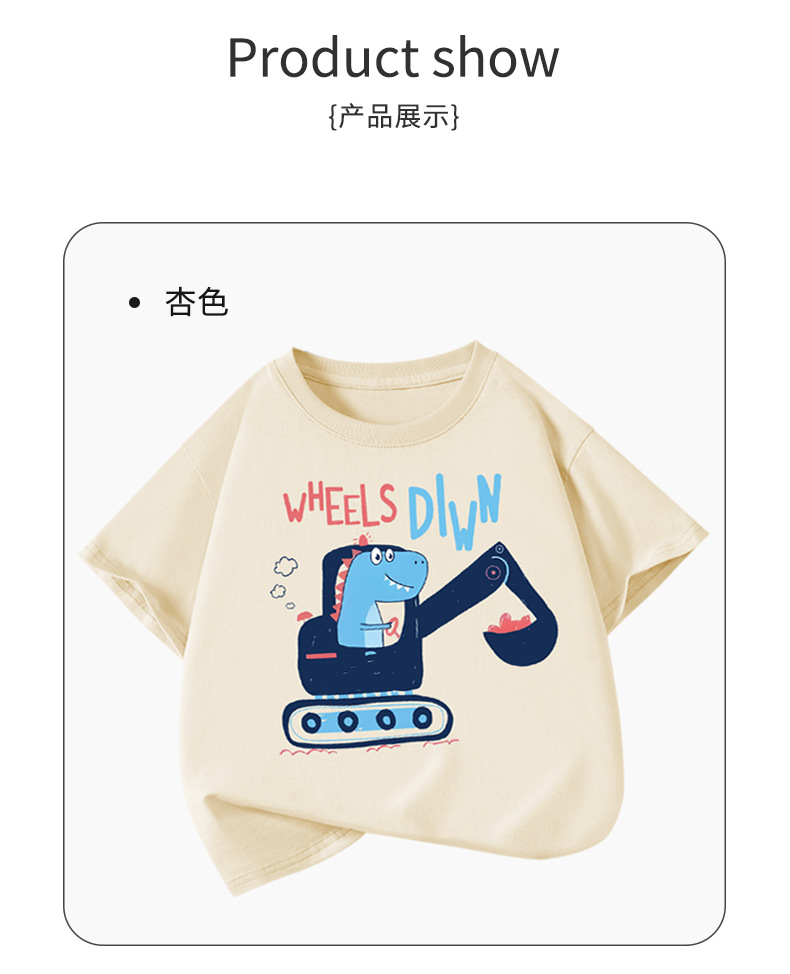 • 【순면 반팔 티셔츠】 굴삭기 공룡/살구색