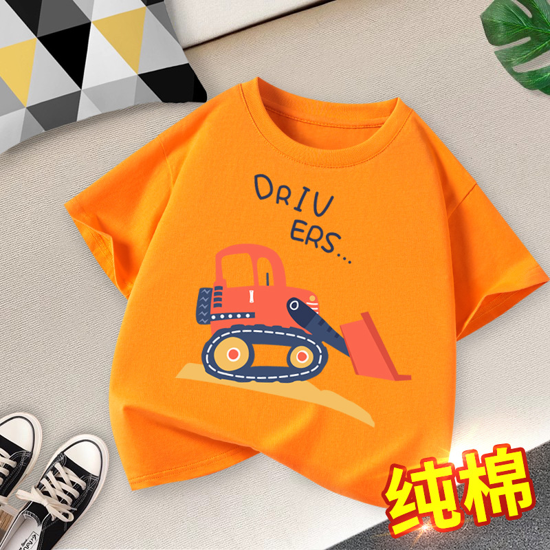 • 【순면 반팔 티셔츠】 불도저/오렌지