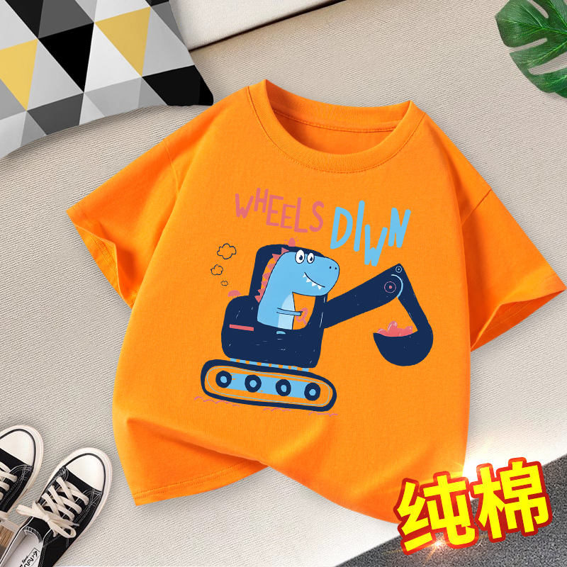 • 【순면 반팔 티셔츠】 굴삭기 공룡/오렌지