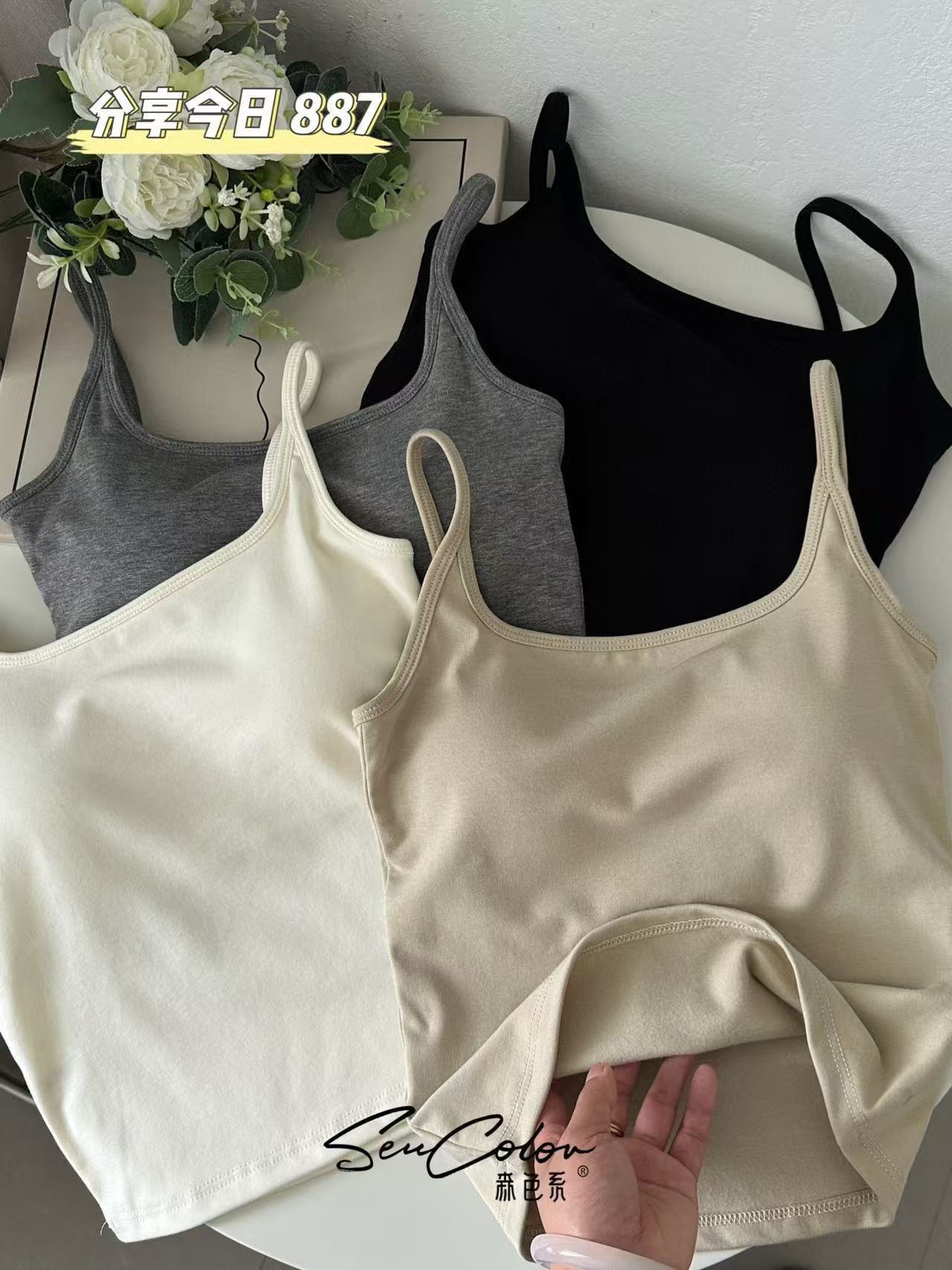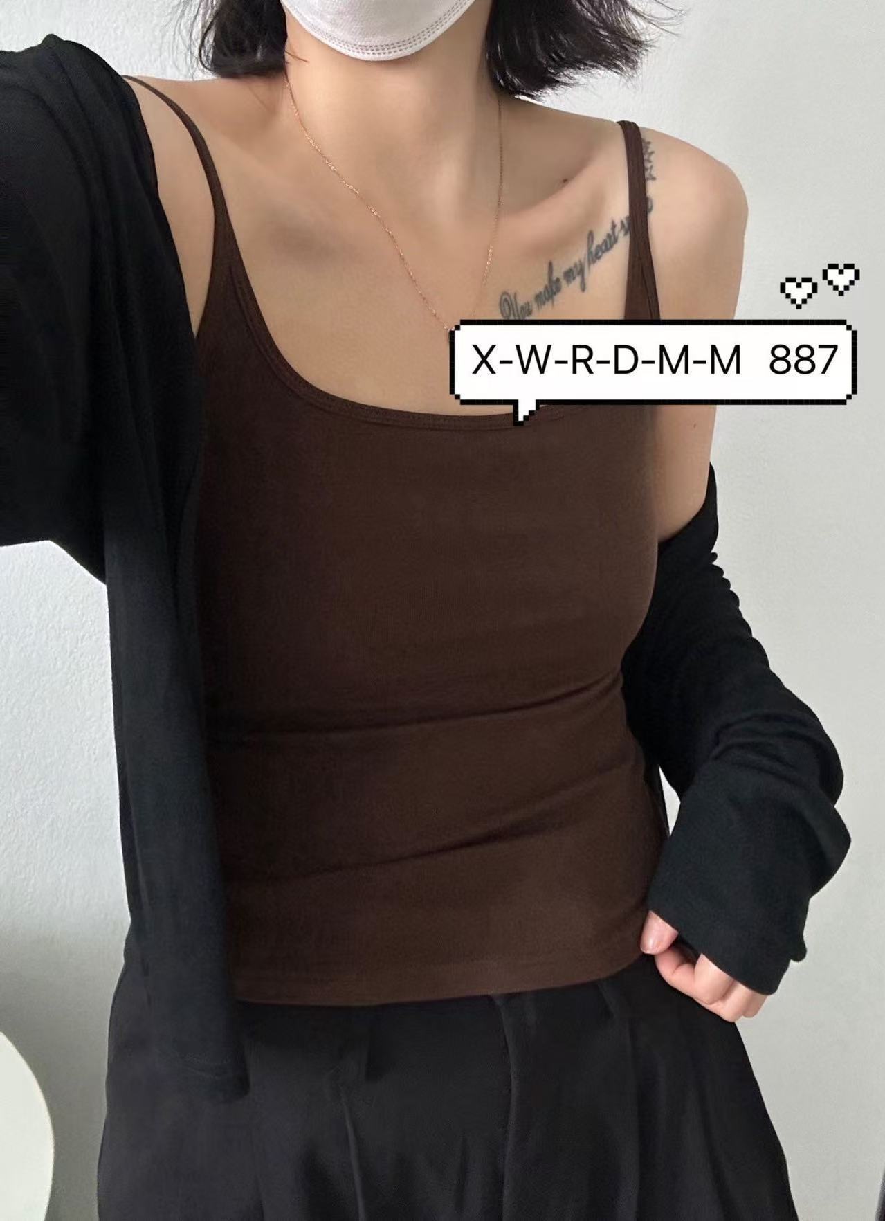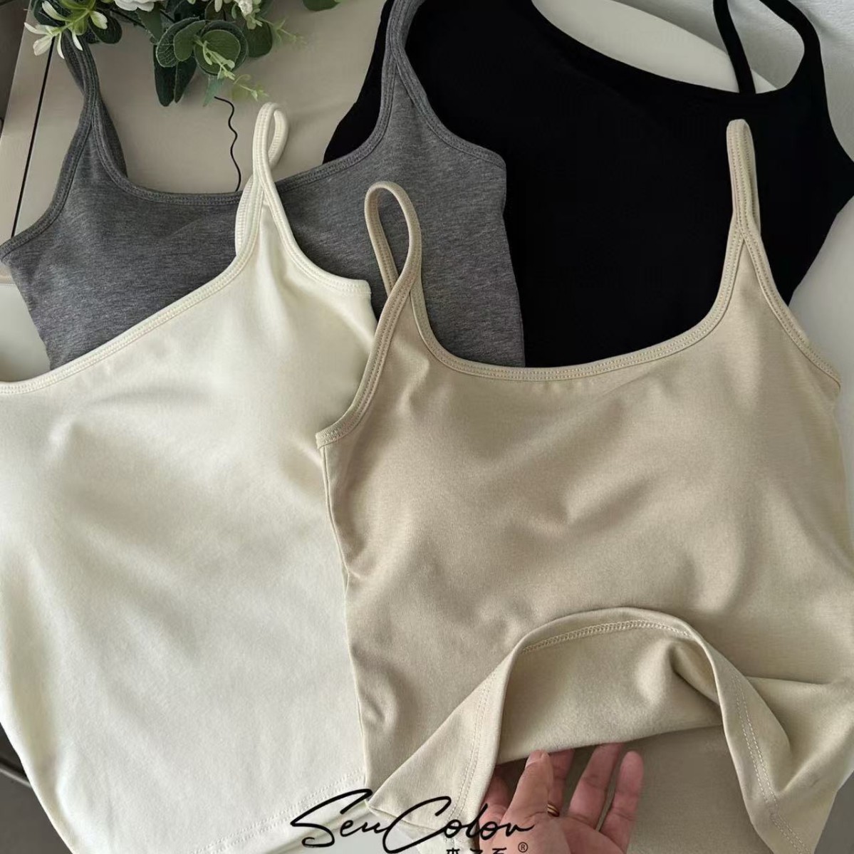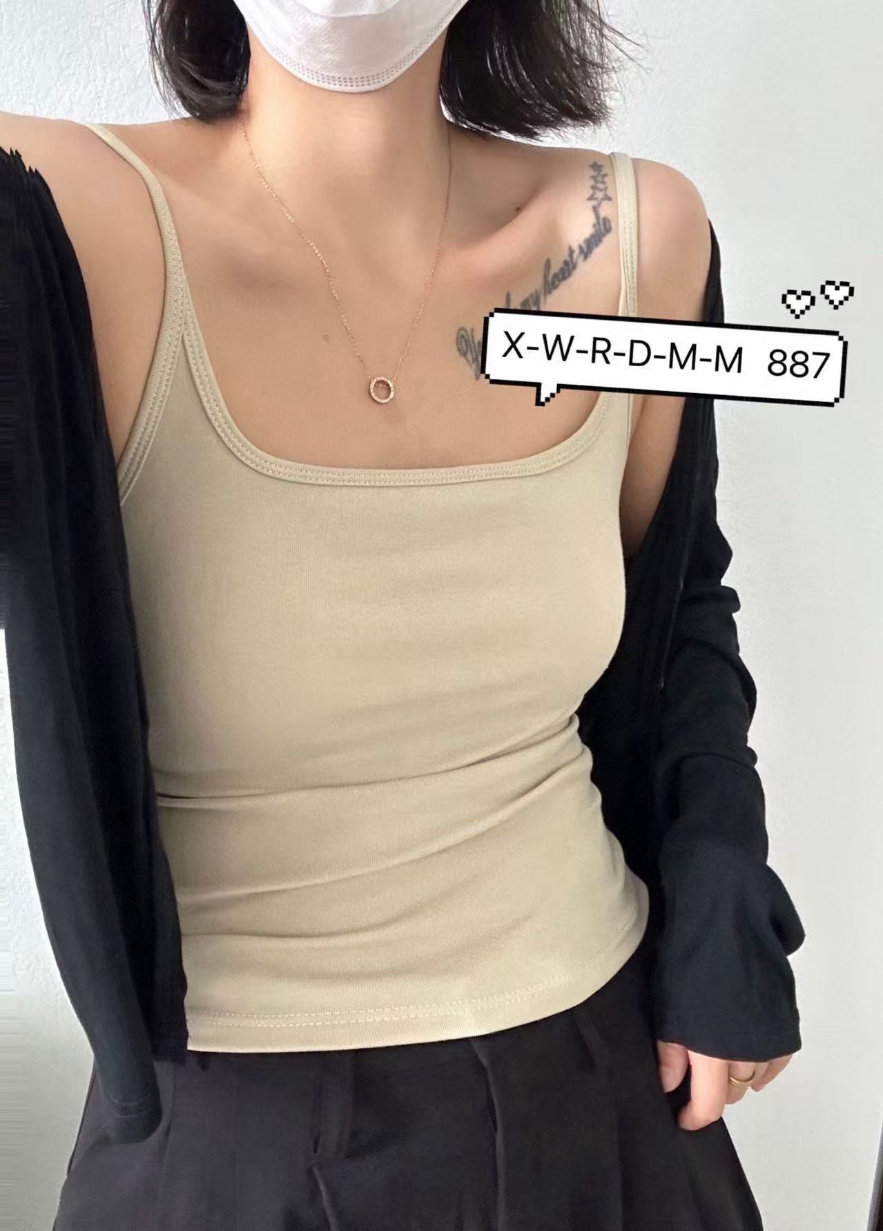 887 옷걸이 신상 순면 롱 버전 끈나시 고정형 일체컵 슬림핏 다용도 외출복 겸용
