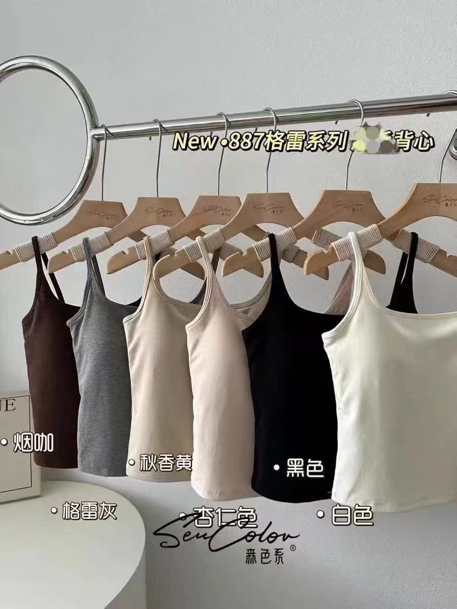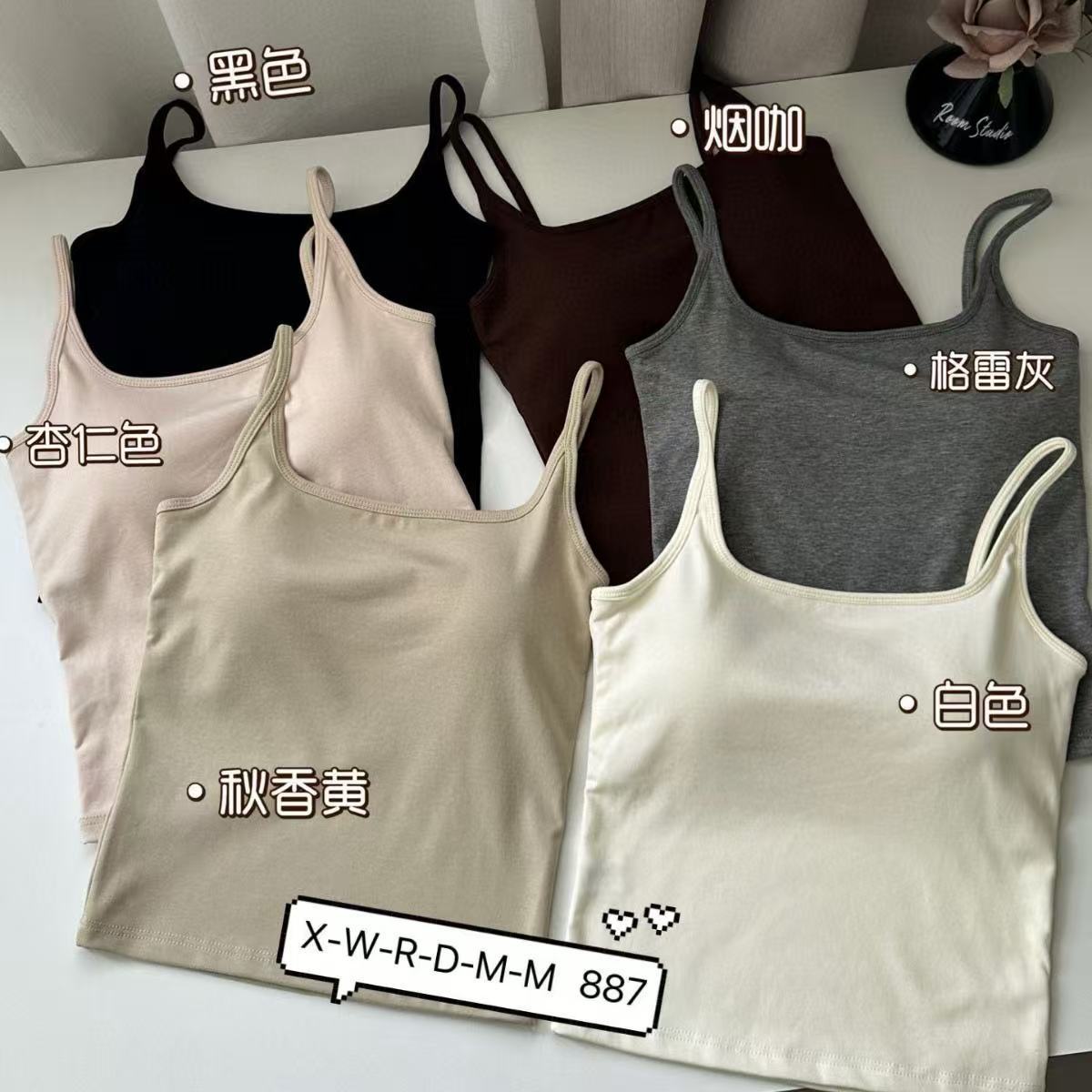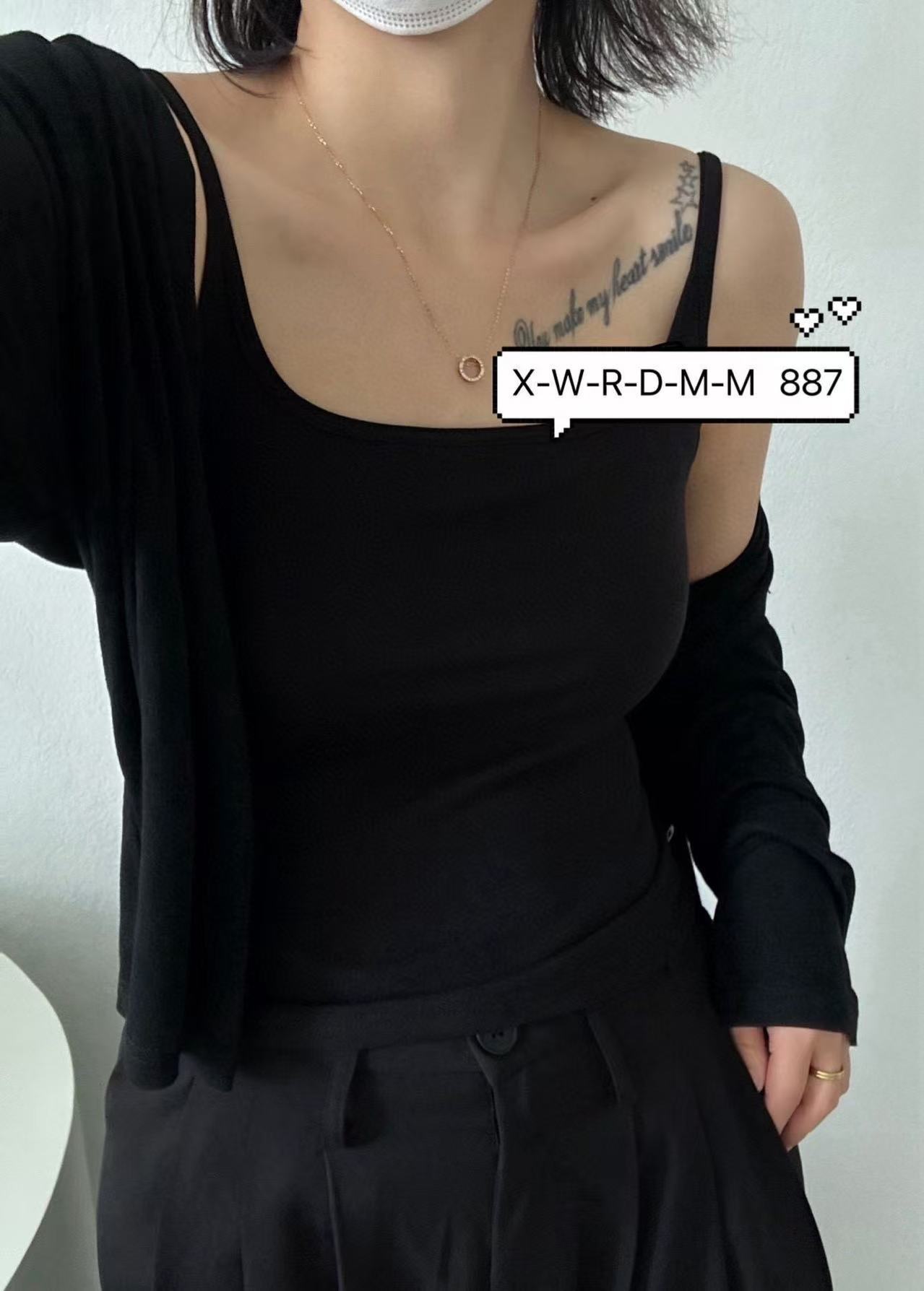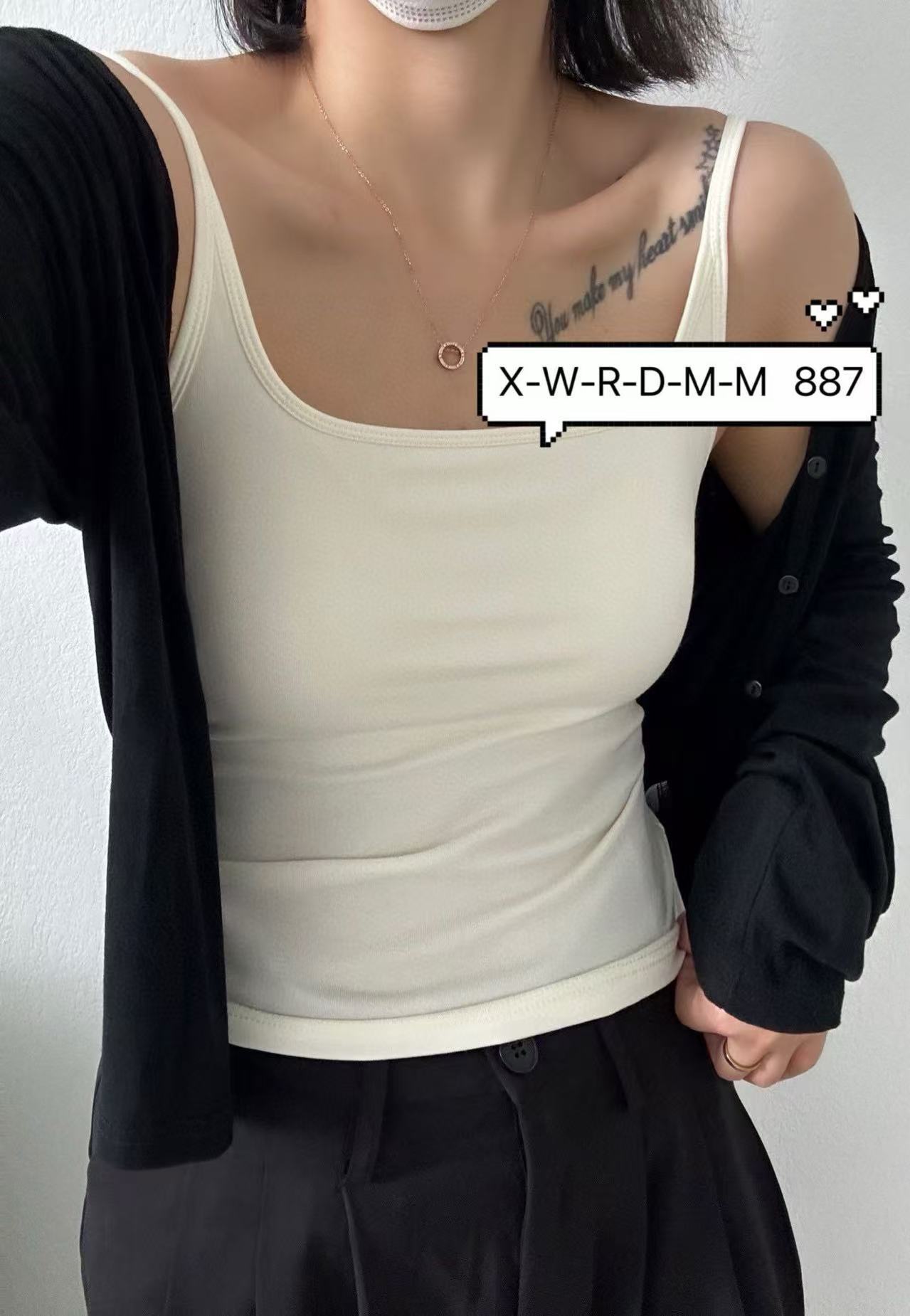 887 옷걸이 신상 순면 롱 버전 끈나시 고정형 일체컵 슬림핏 다용도 외출복 겸용