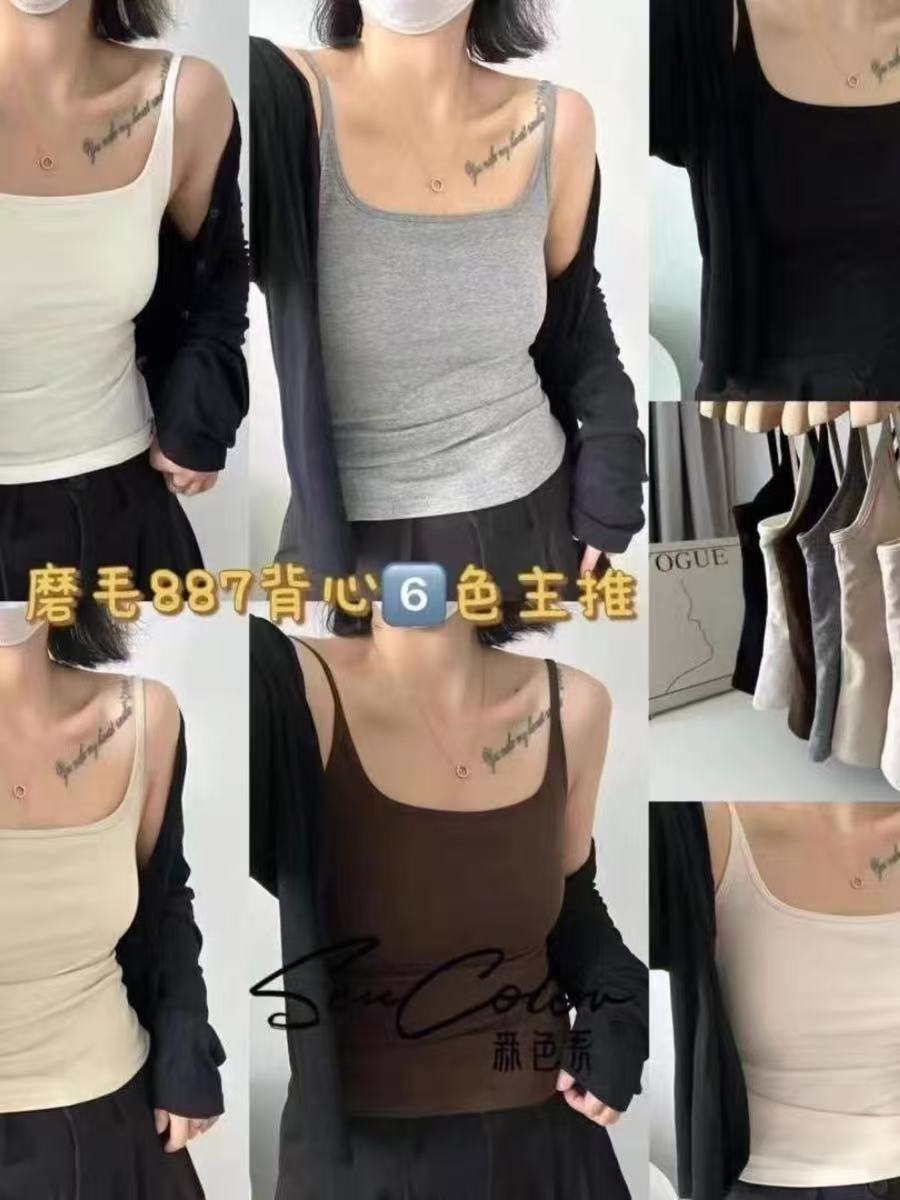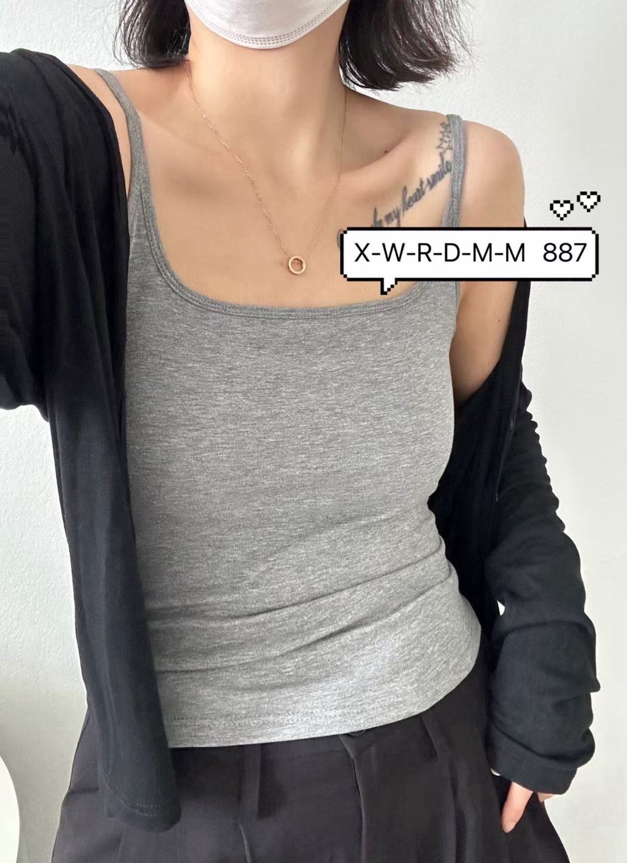 887 옷걸이 신상 순면 롱 버전 끈나시 고정형 일체컵 슬림핏 다용도 외출복 겸용스토어 가기