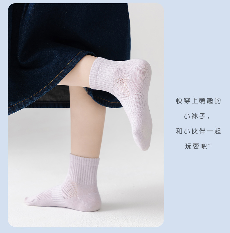 봄과 여름 어린이 단색 메쉬 스포츠 양말 얇은 소년과 소녀 아기 양말면 안티 필링 허리 뼈없는 양말