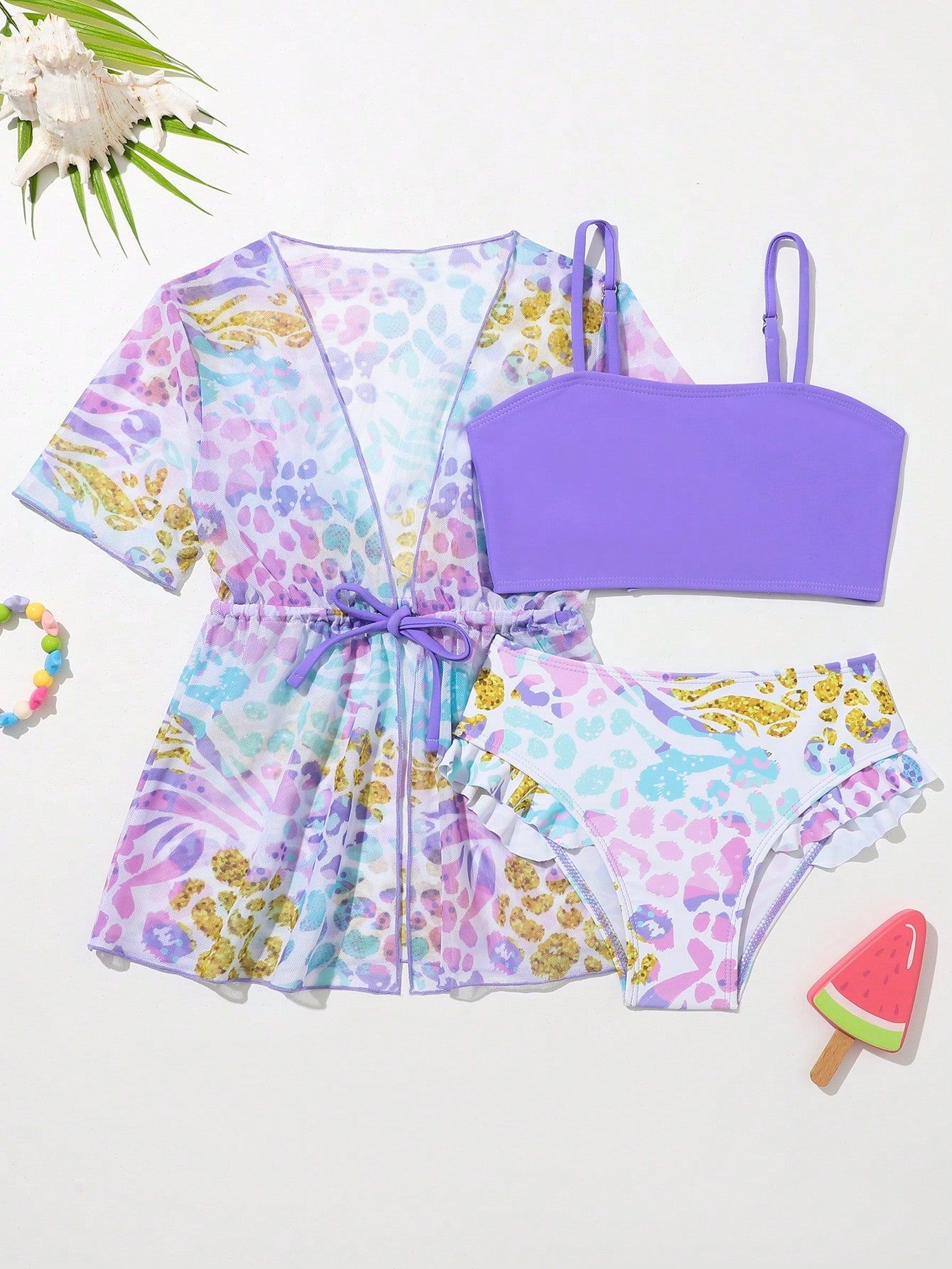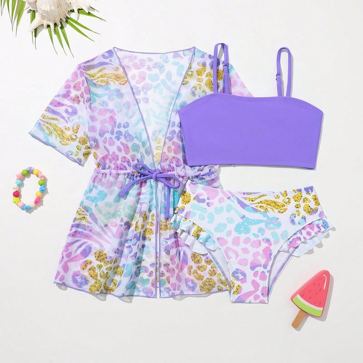 2025 새로운 스타일 4-7 세 소녀 수영복 세트 조정 가능한 스트랩 분할 세트 해변 수영