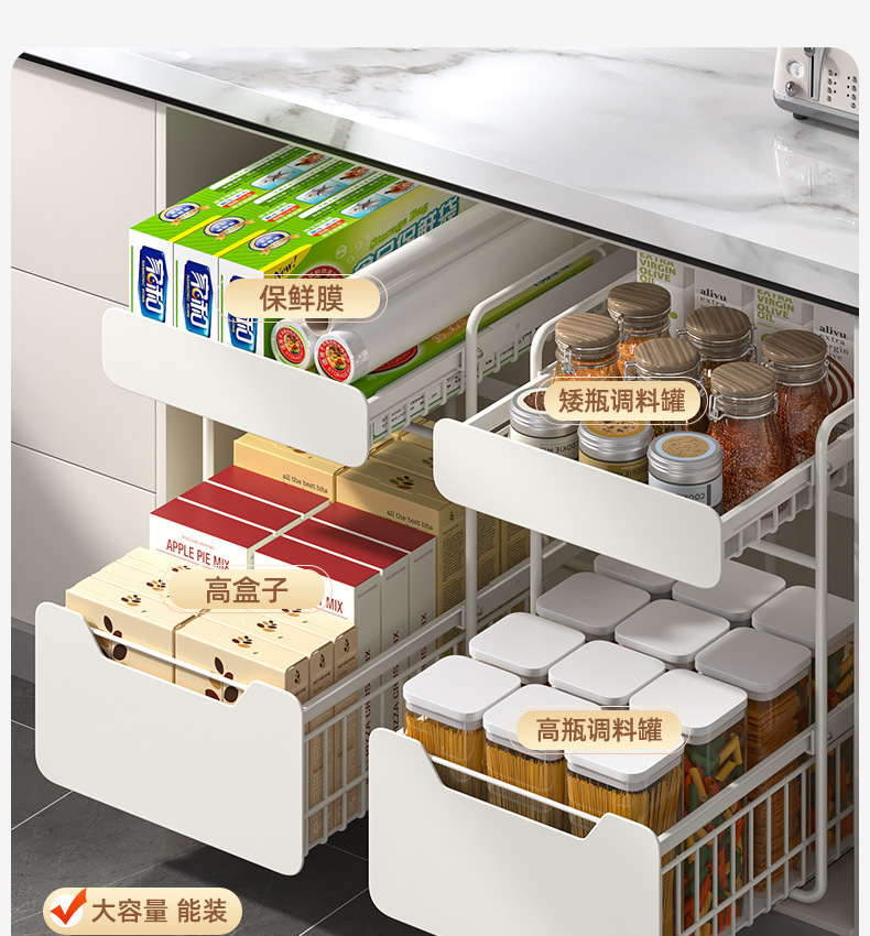 주방 싱크 랙 스테인레스 스틸 더블 레이어 양념 냄비 저장 랙 캐비닛 바구니 서랍 랙스토어 가기