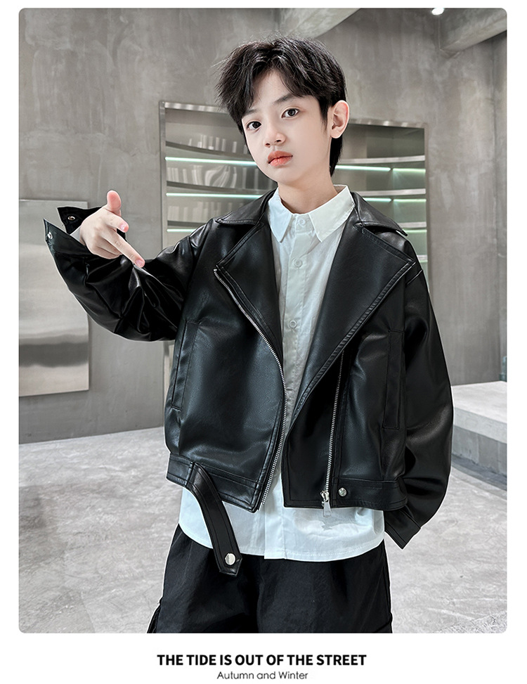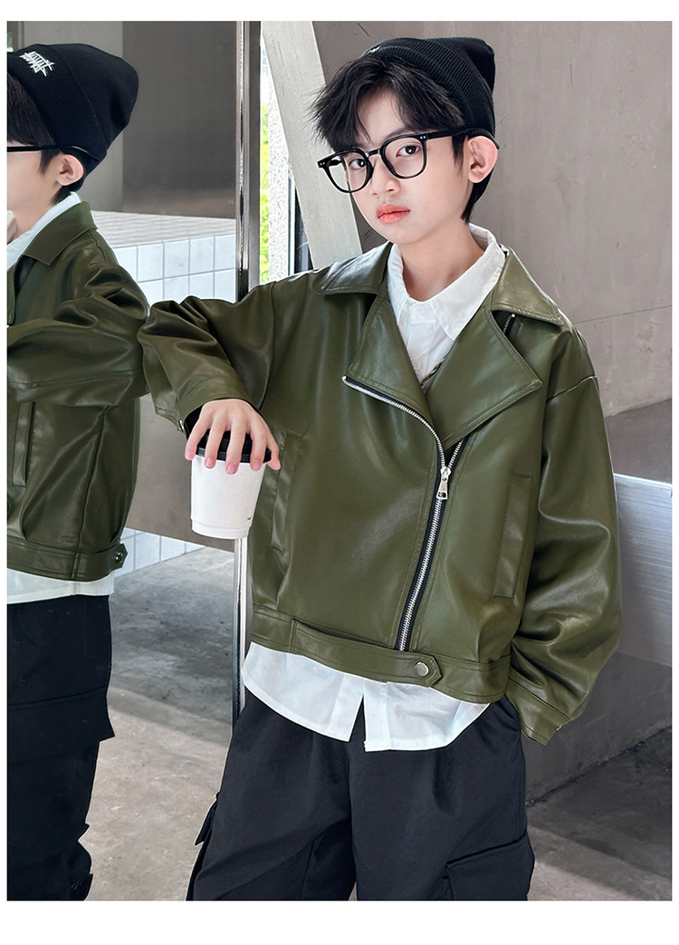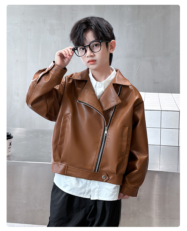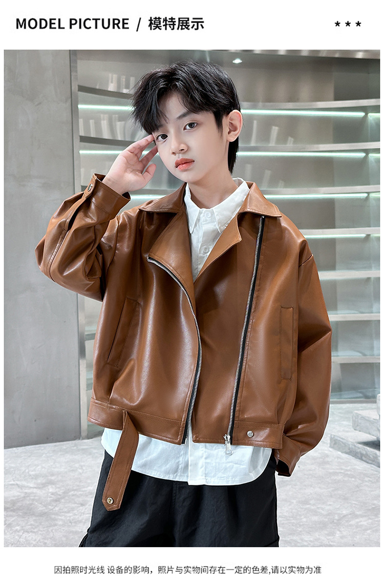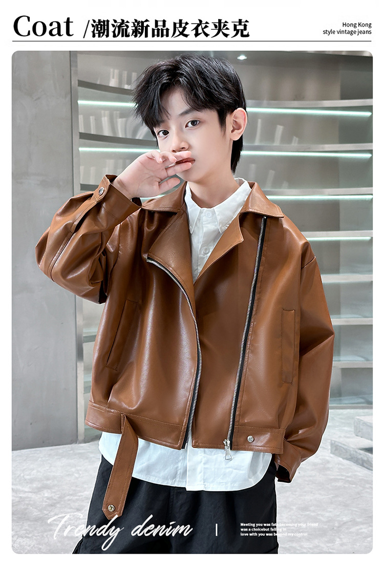 소년 가죽 자켓 새로운 대외 무역 봄과 가을 중대형 어린이 바이커 의류 어린이 PU 가죽 자켓 어린이 가죽 자켓스토어 가기