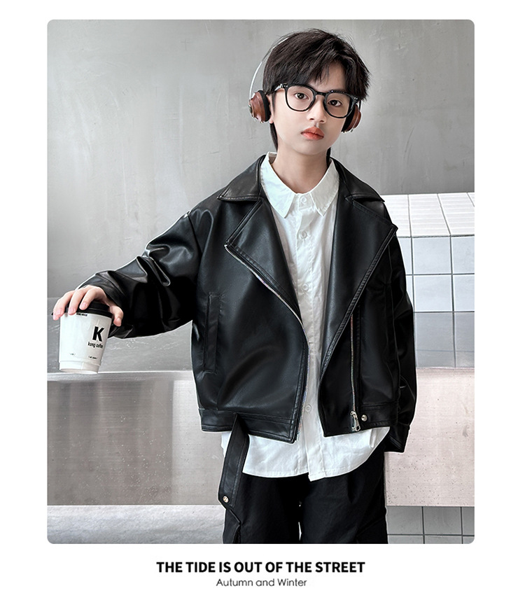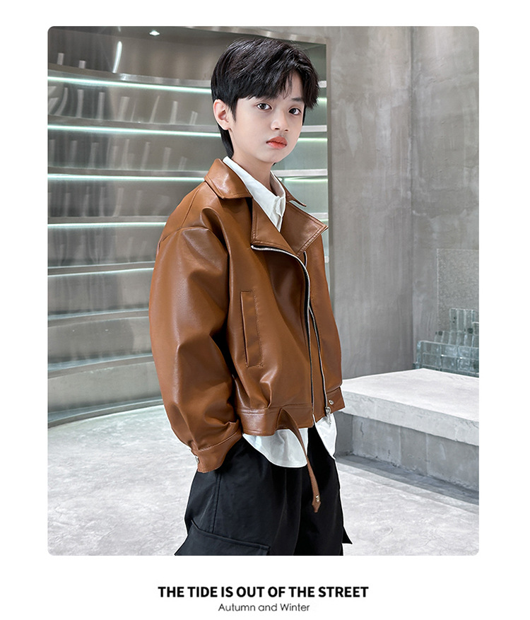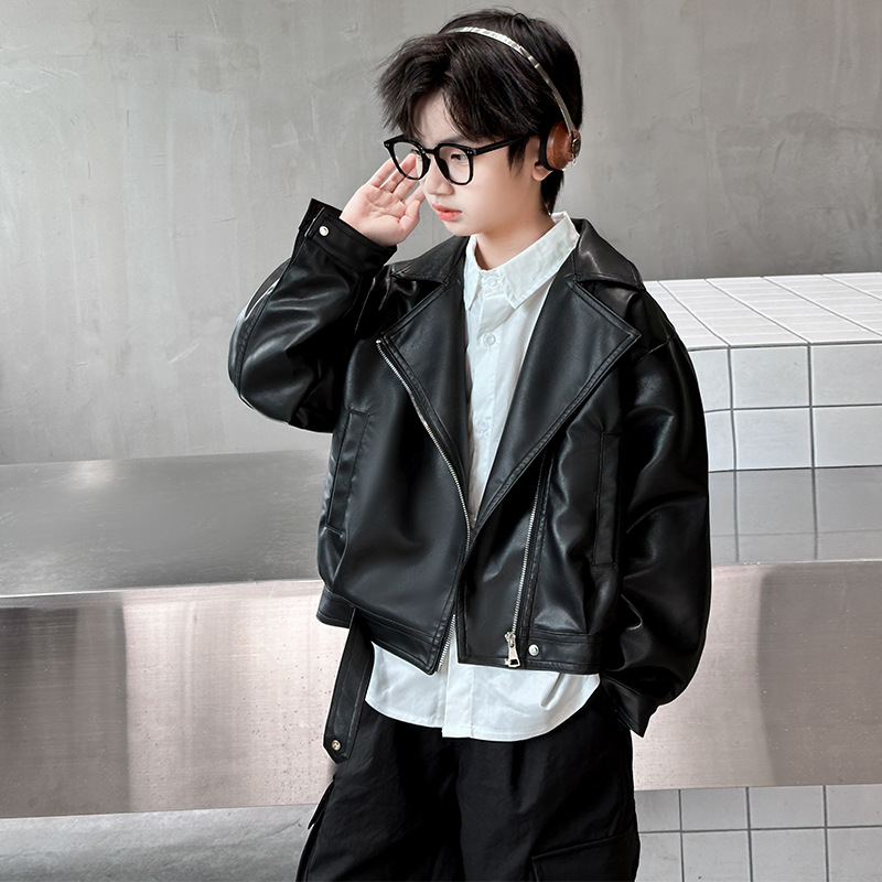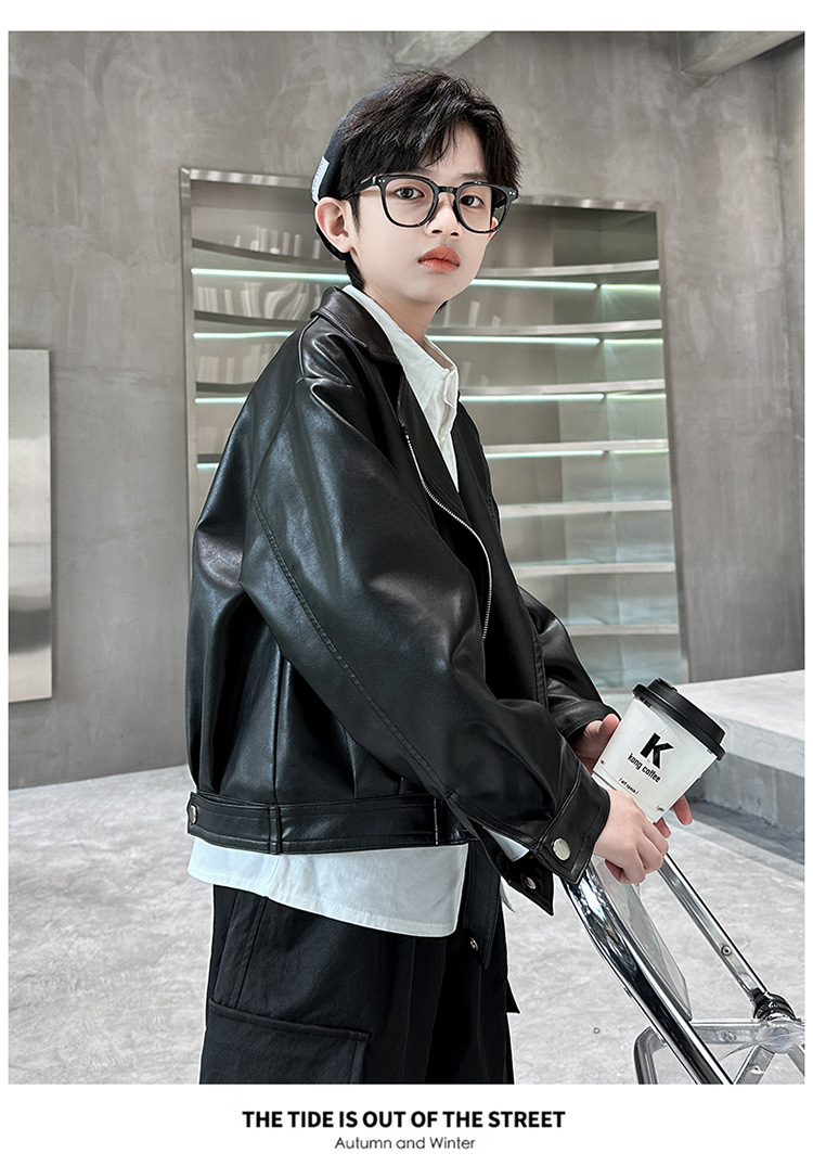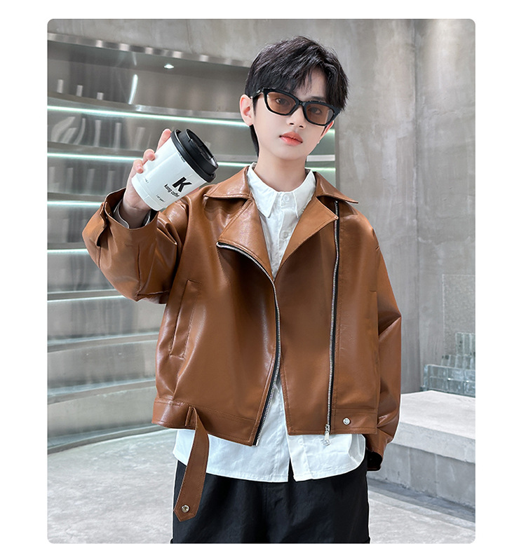 소년 가죽 자켓 새로운 대외 무역 봄과 가을 중대형 어린이 바이커 의류 어린이 PU 가죽 자켓 어린이 가죽 자켓스토어 가기