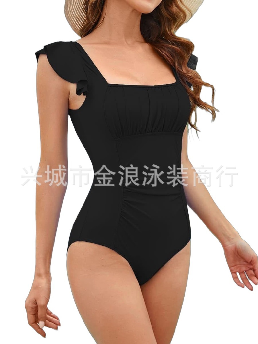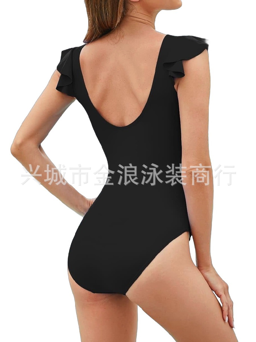 2025 유럽과 미국의 새로운 섹시한 여성 단색 원피스 수영복 크로스 국경 아마존 수영복 도매 제조 업체