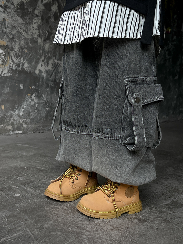 어린이 의류 아동용 무거운 작업 바지 봄 2025 새로운 아기 거리 스타일 청바지 소년 바지 조수