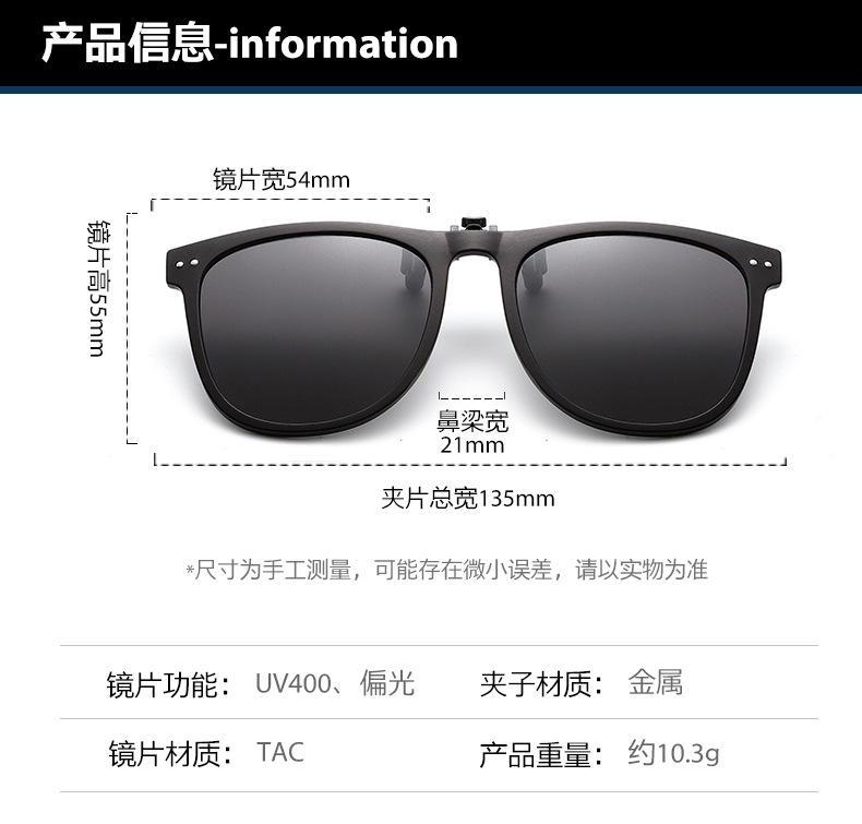 2025 새로운 패션은 편광 선글라스 클립 대형 프레임 라이트 남성과 여성 선글라스 클립 도매