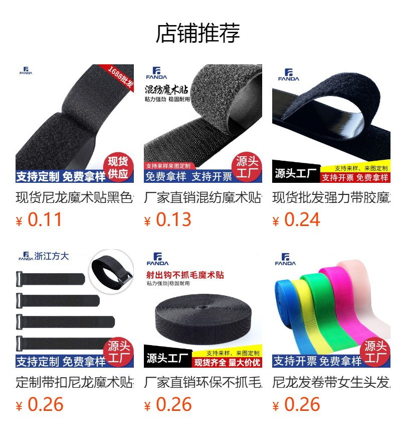 혼합 나일론 벨크로 후크 백 커튼 의류 액세서리 후크 및 루프 버클 재고 도매 6CM스토어 가기