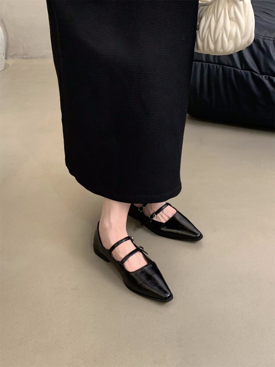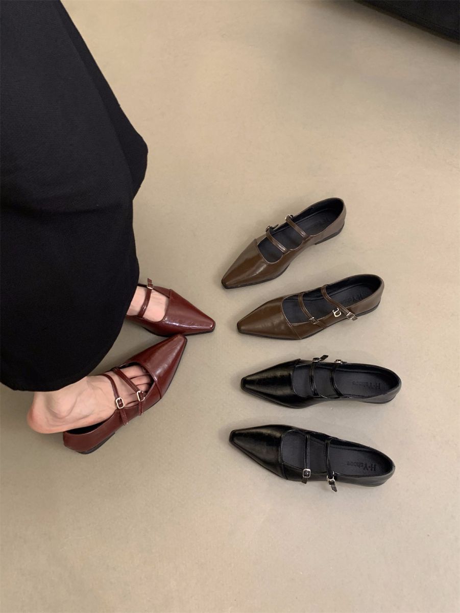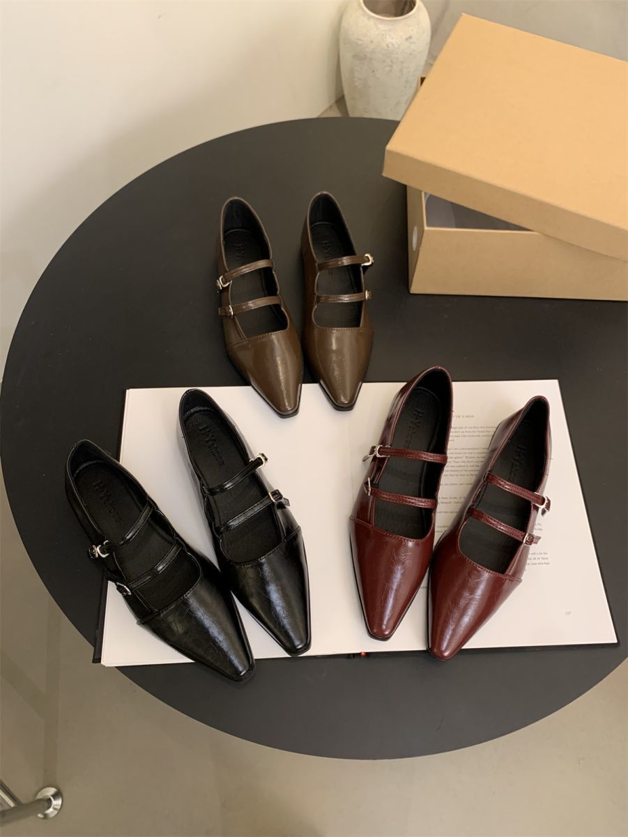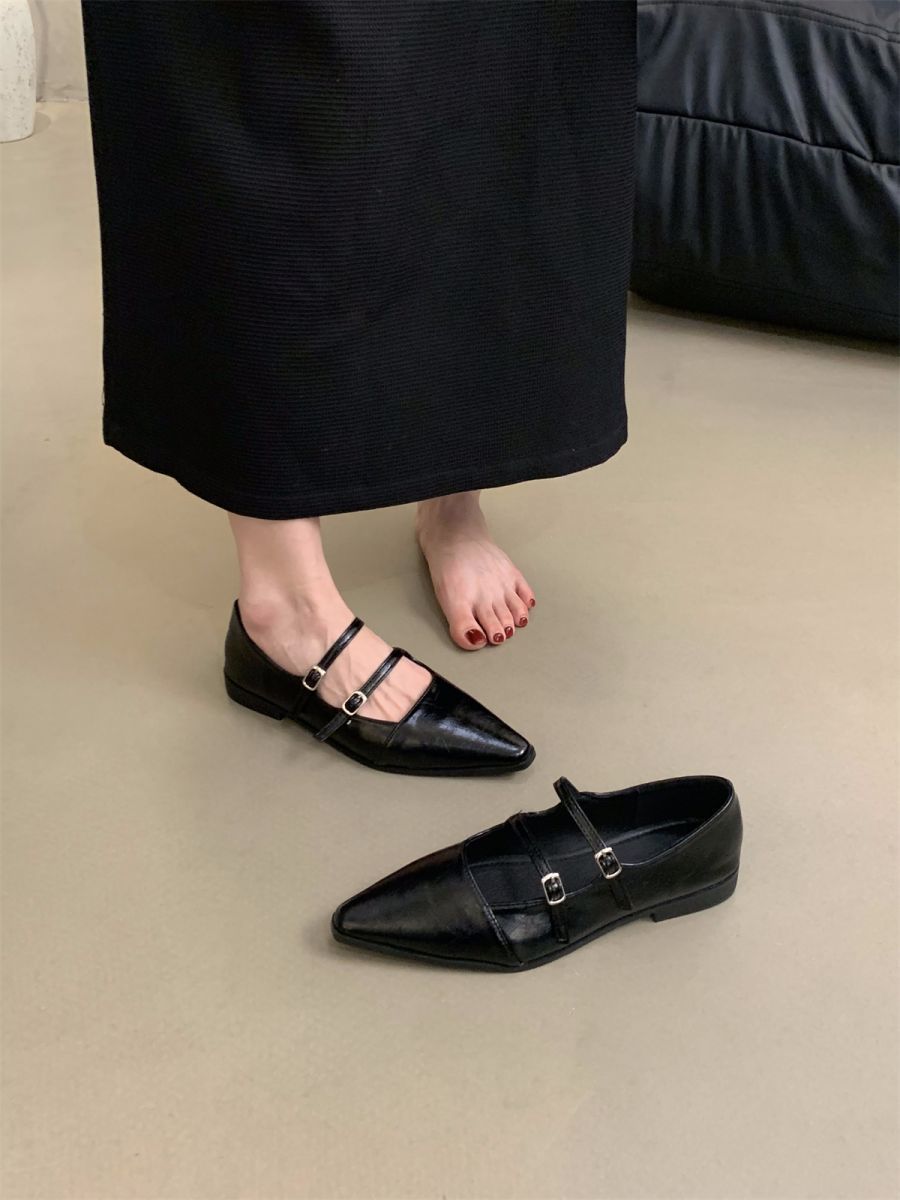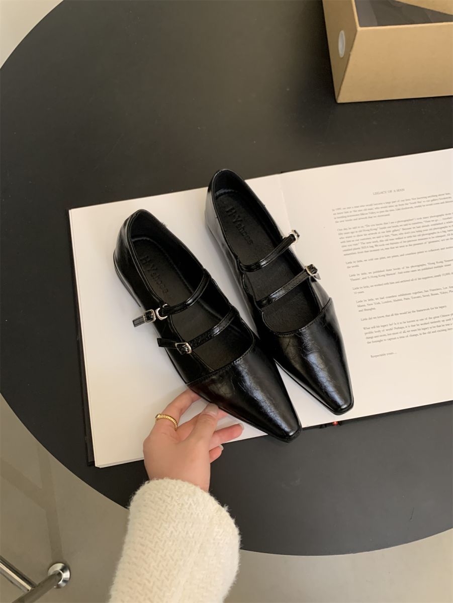 뾰족한 발가락 얕은 입 싱글 레이어 신발 여성의 봄과 가을 새로운 한국 스타일 작은 가죽 신발 여성의 영국 프랑스 스타일 이브닝 스타일 플랫 메리 제인 신발