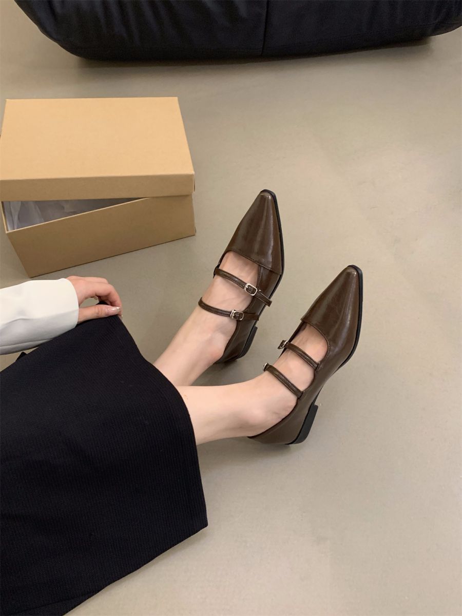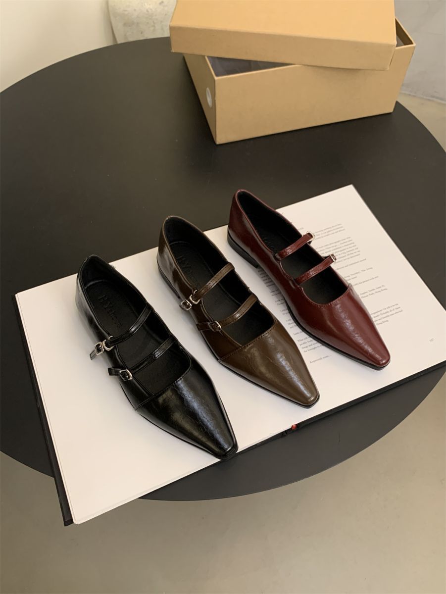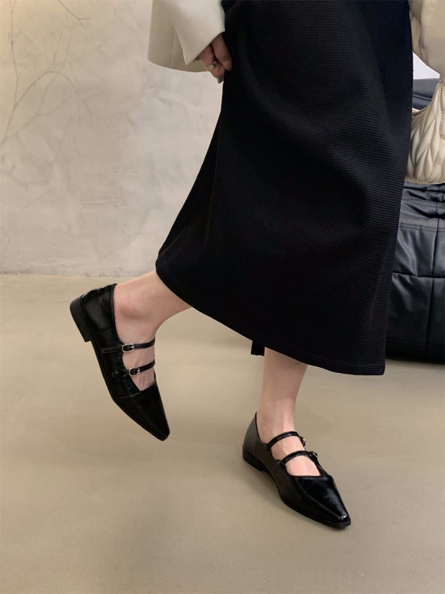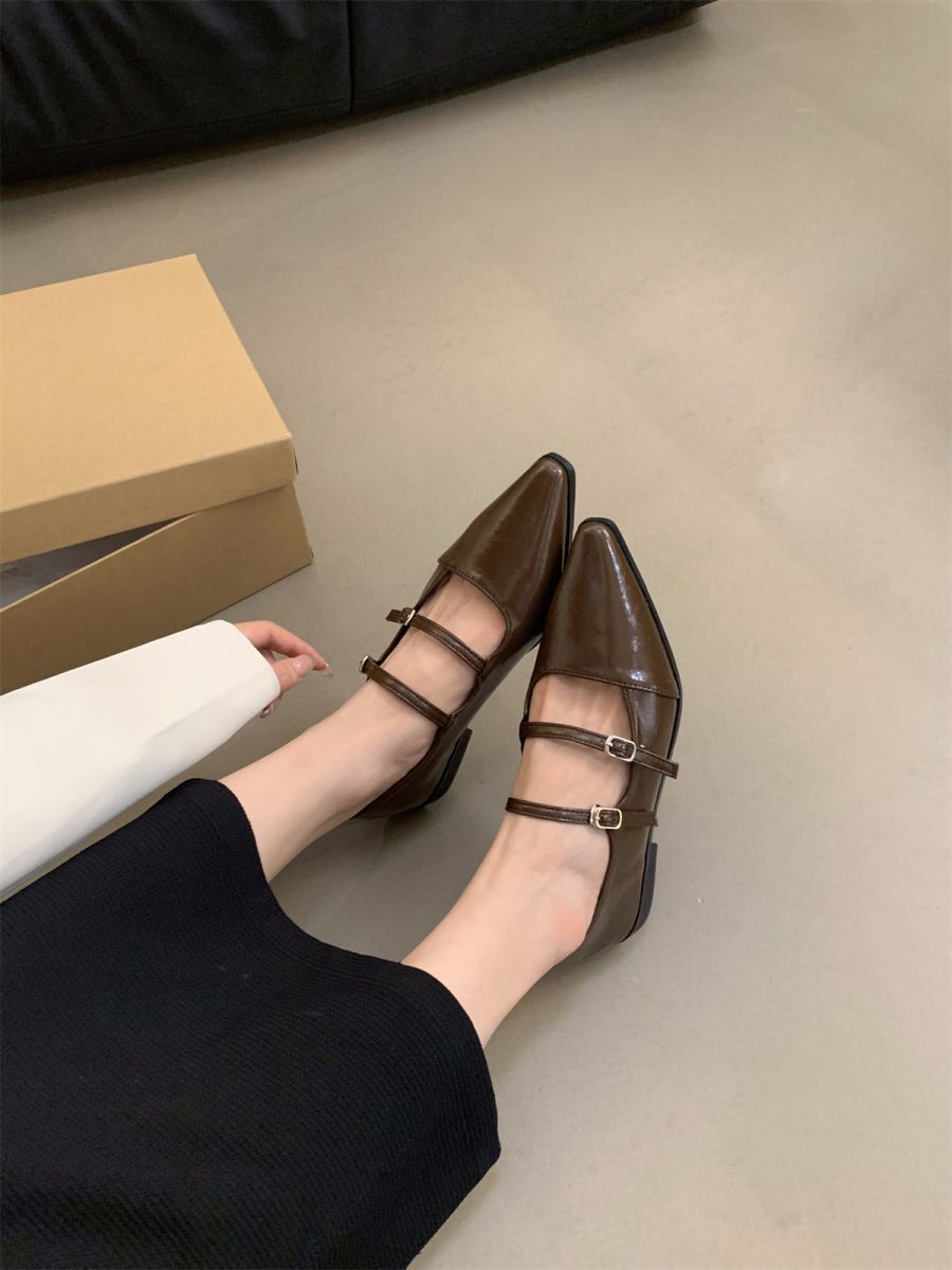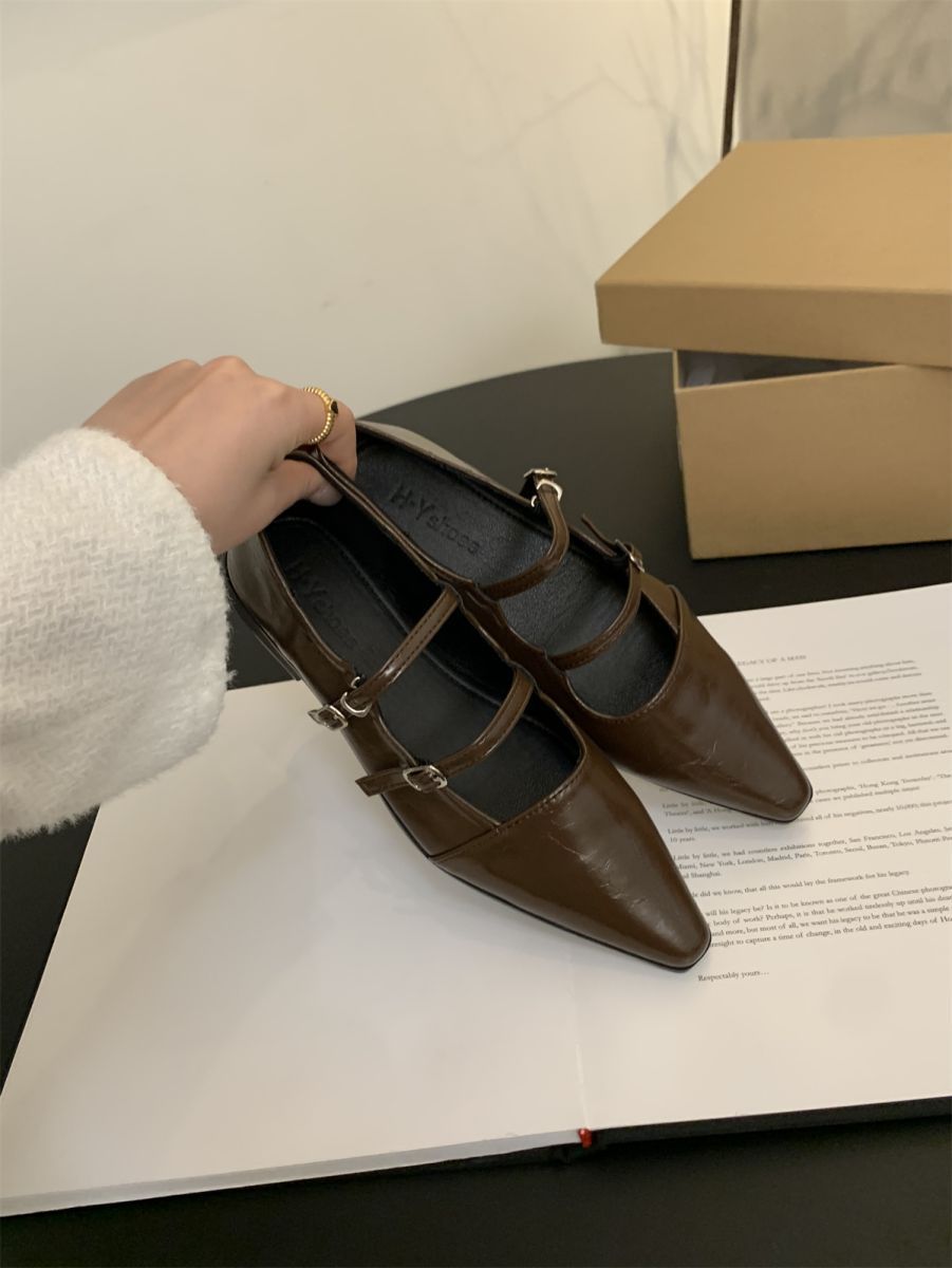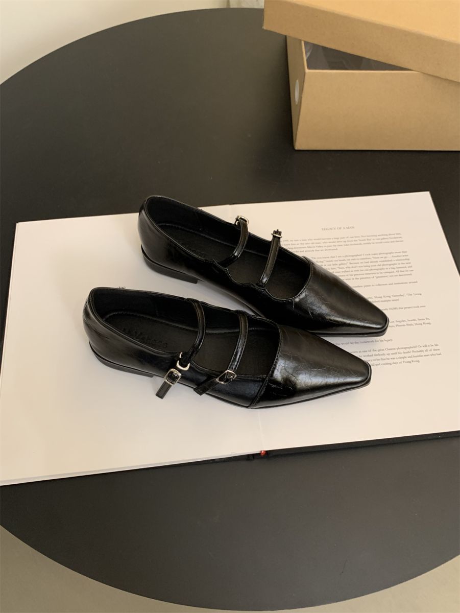 뾰족한 발가락 얕은 입 싱글 레이어 신발 여성의 봄과 가을 새로운 한국 스타일 작은 가죽 신발 여성의 영국 프랑스 스타일 이브닝 스타일 플랫 메리 제인 신발
