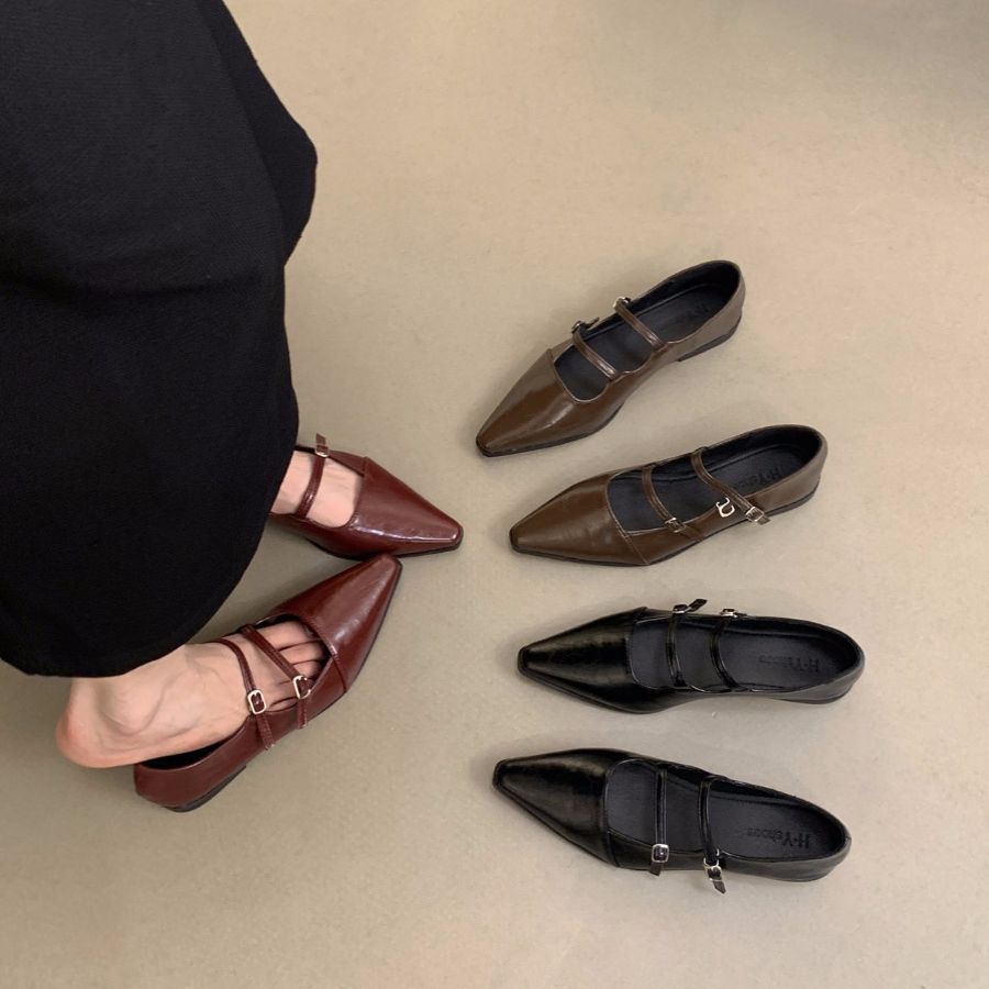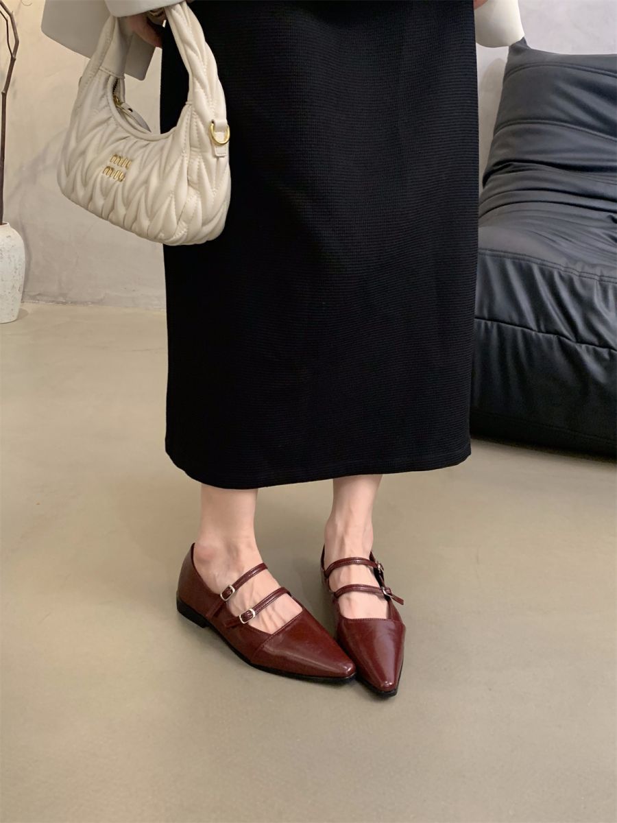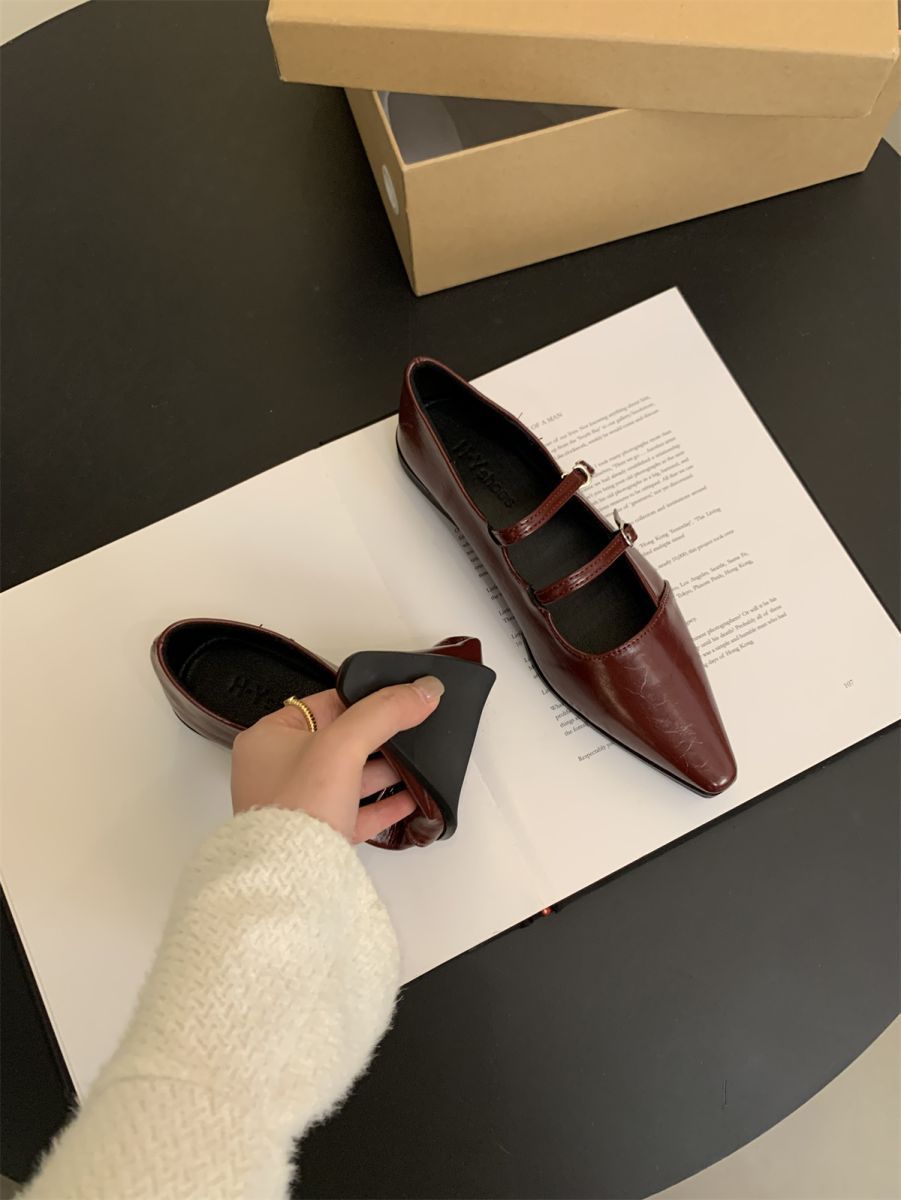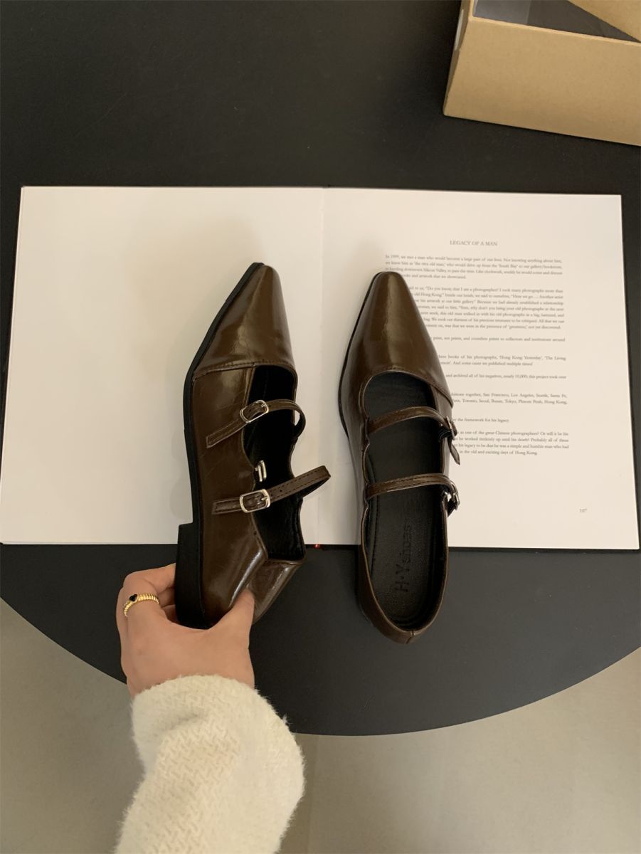 뾰족한 발가락 얕은 입 싱글 레이어 신발 여성의 봄과 가을 새로운 한국 스타일 작은 가죽 신발 여성의 영국 프랑스 스타일 이브닝 스타일 플랫 메리 제인 신발스토어 가기