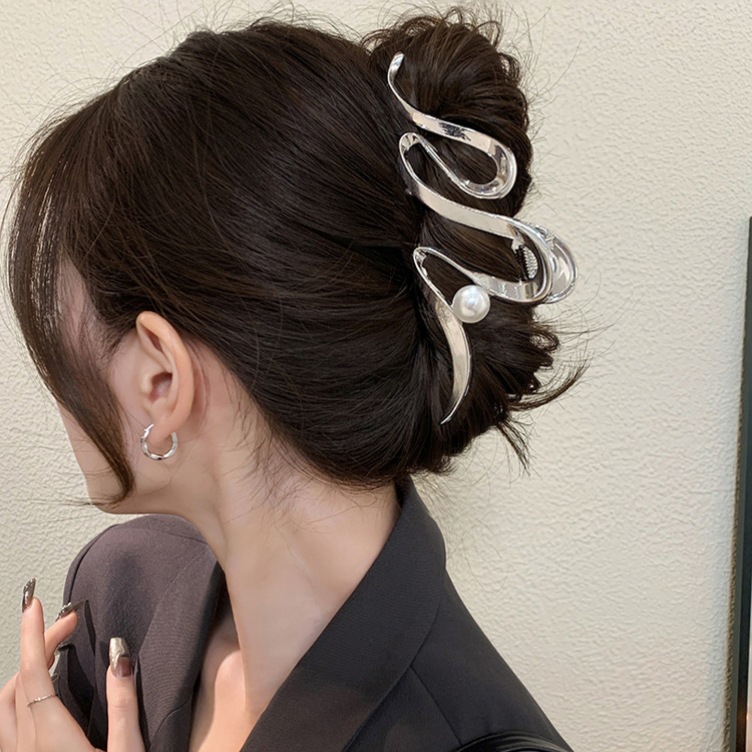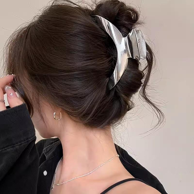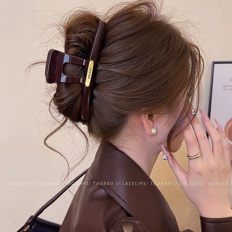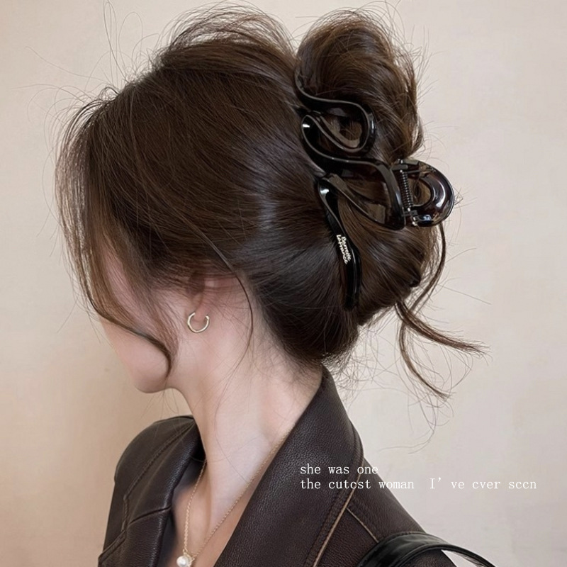 대형 간단한 우아한 편지 그랩 클립 여성용 2025 새로운 하이 엔드 센스 헤드 헤어 상어 클립 헤드웨어