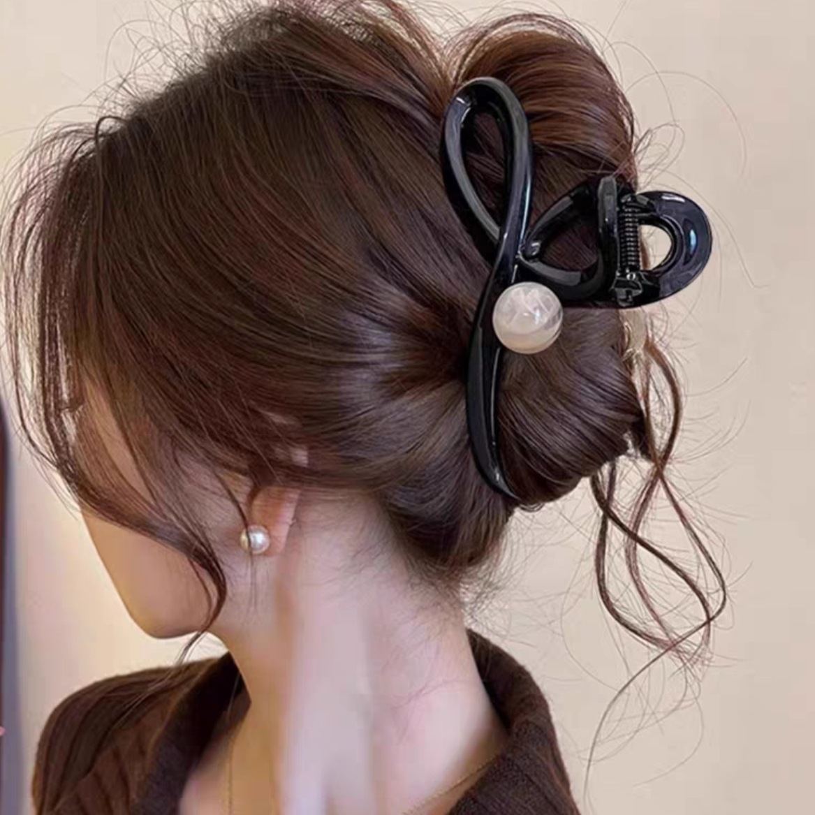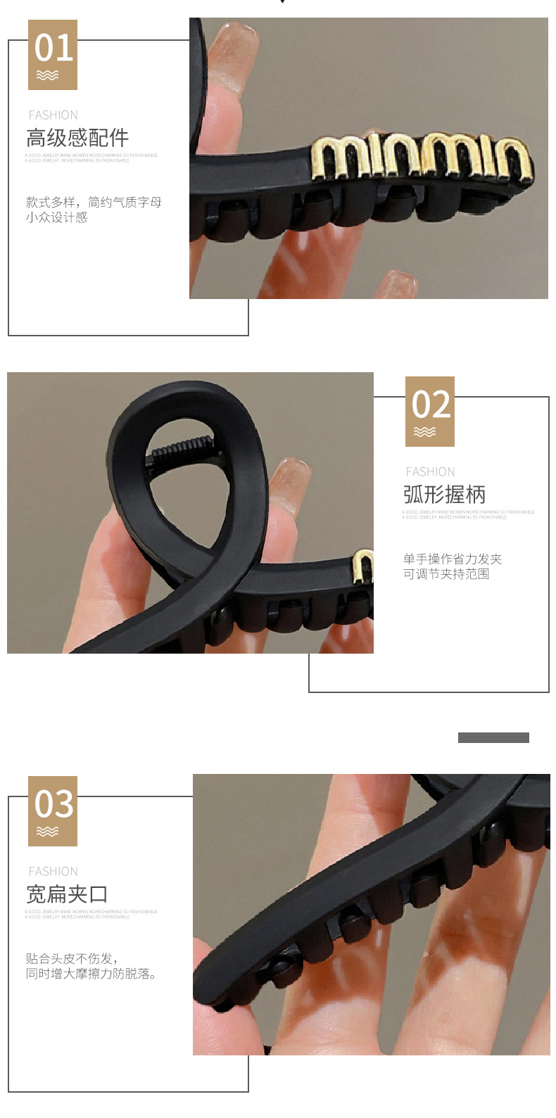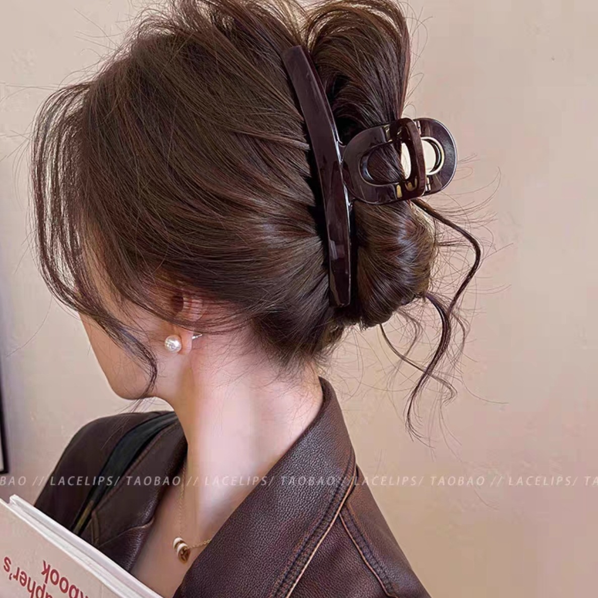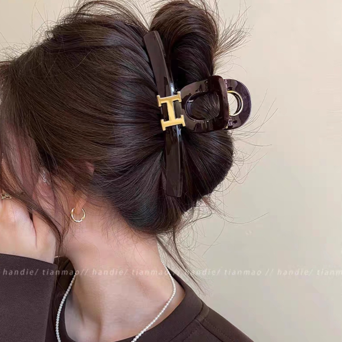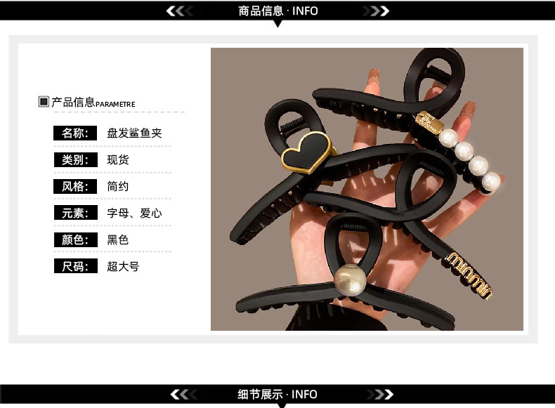 대형 간단한 우아한 편지 그랩 클립 여성용 2025 새로운 하이 엔드 센스 헤드 헤어 상어 클립 헤드웨어스토어 가기
