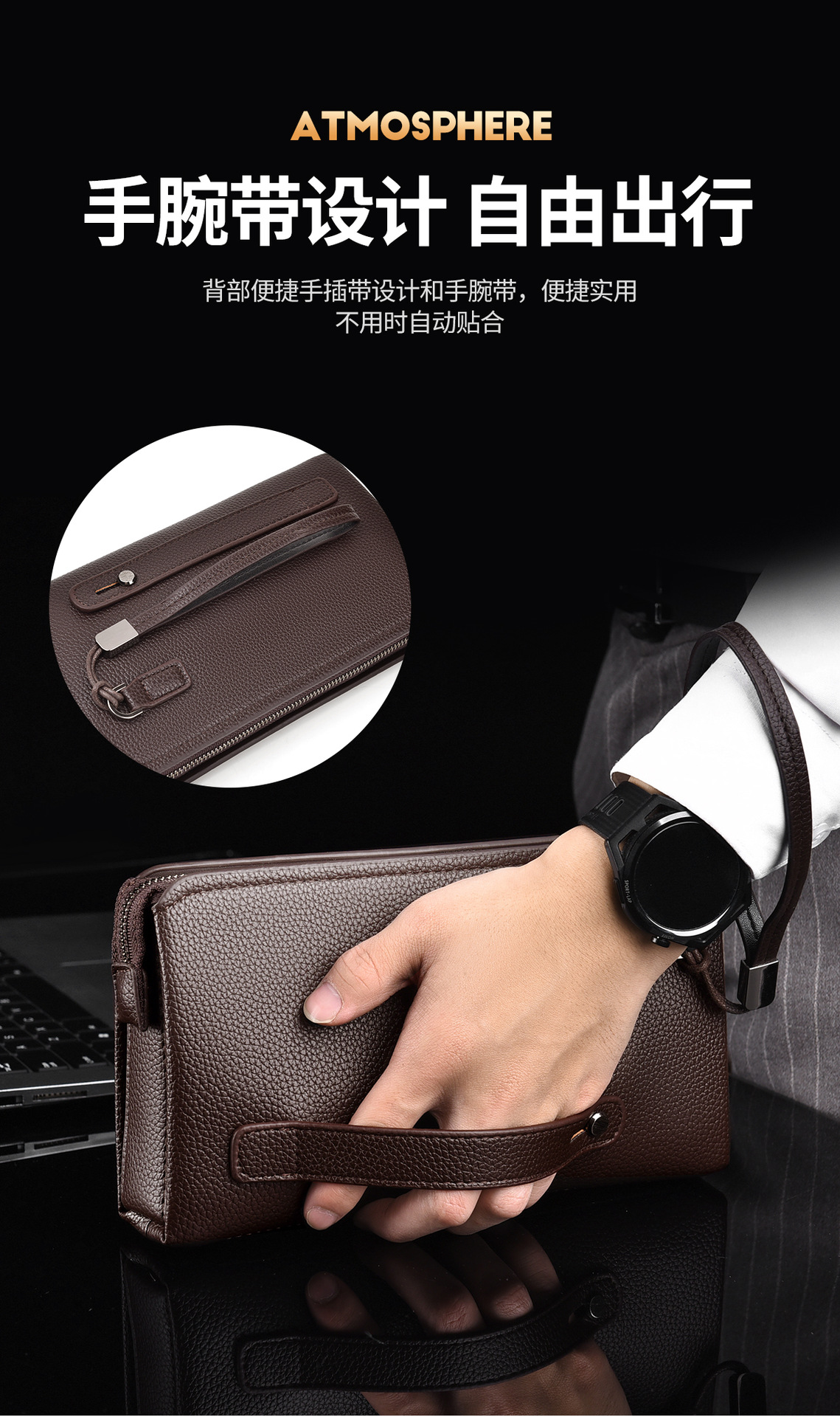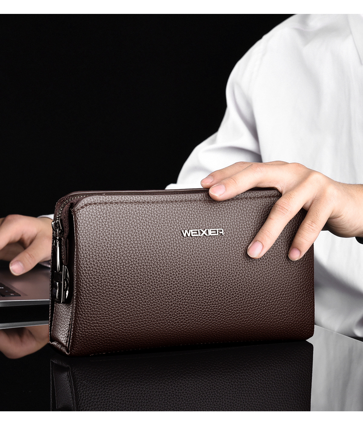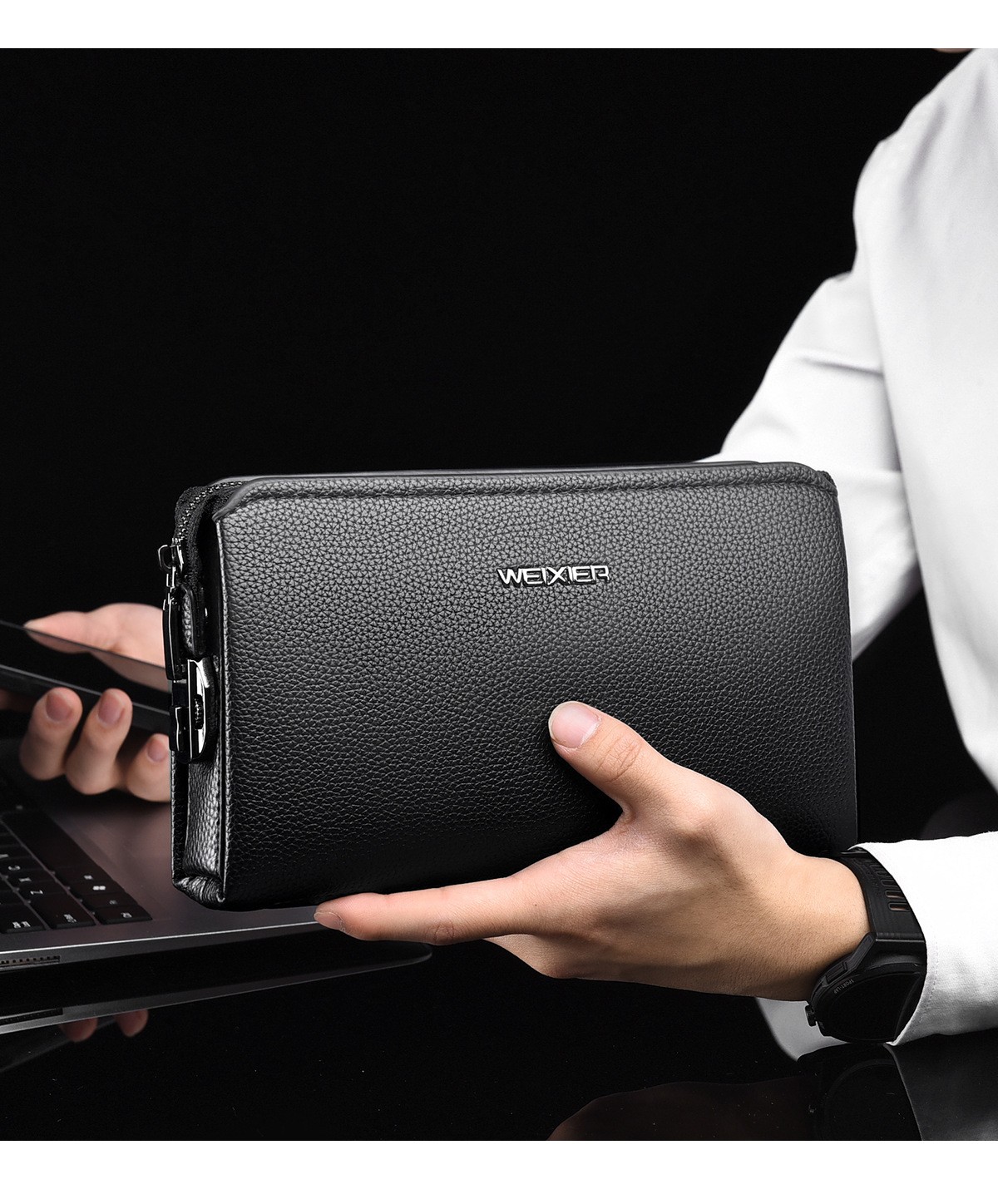WEIXIER 남성 고급 감각 방수 비즈니스 클러치 대용량 암호 잠금 도난 방지 휴대용 남성 핸드백