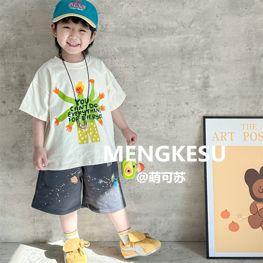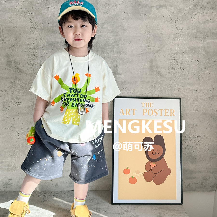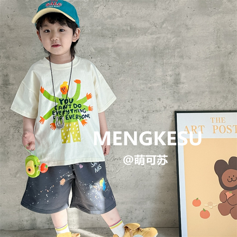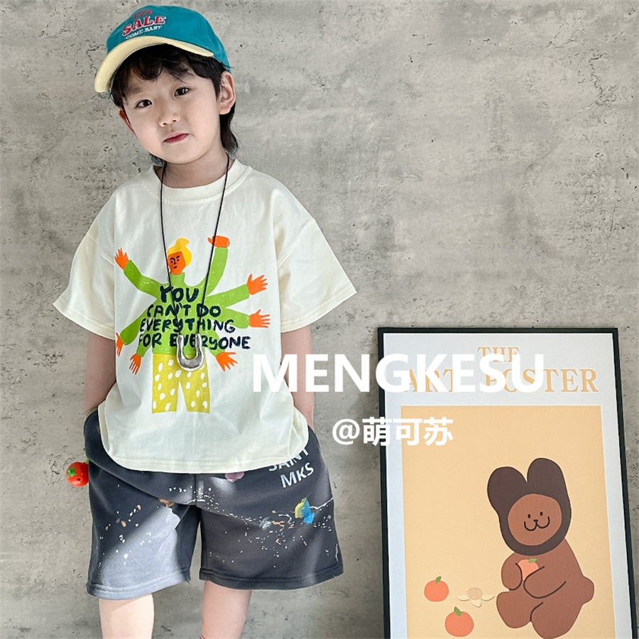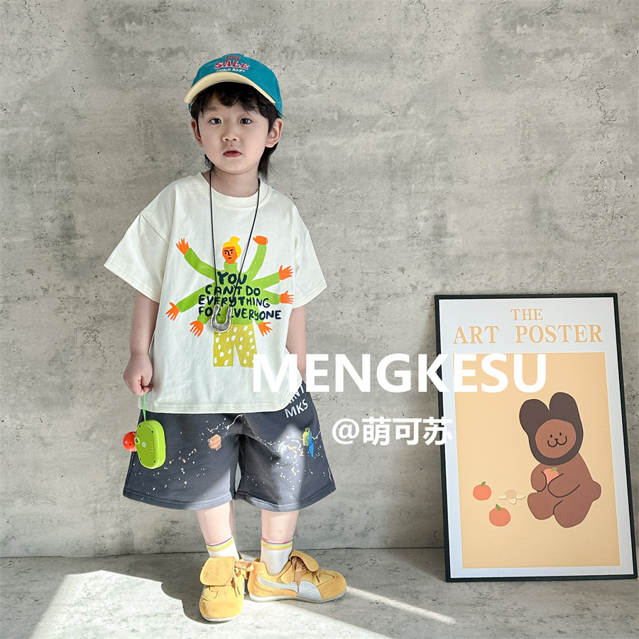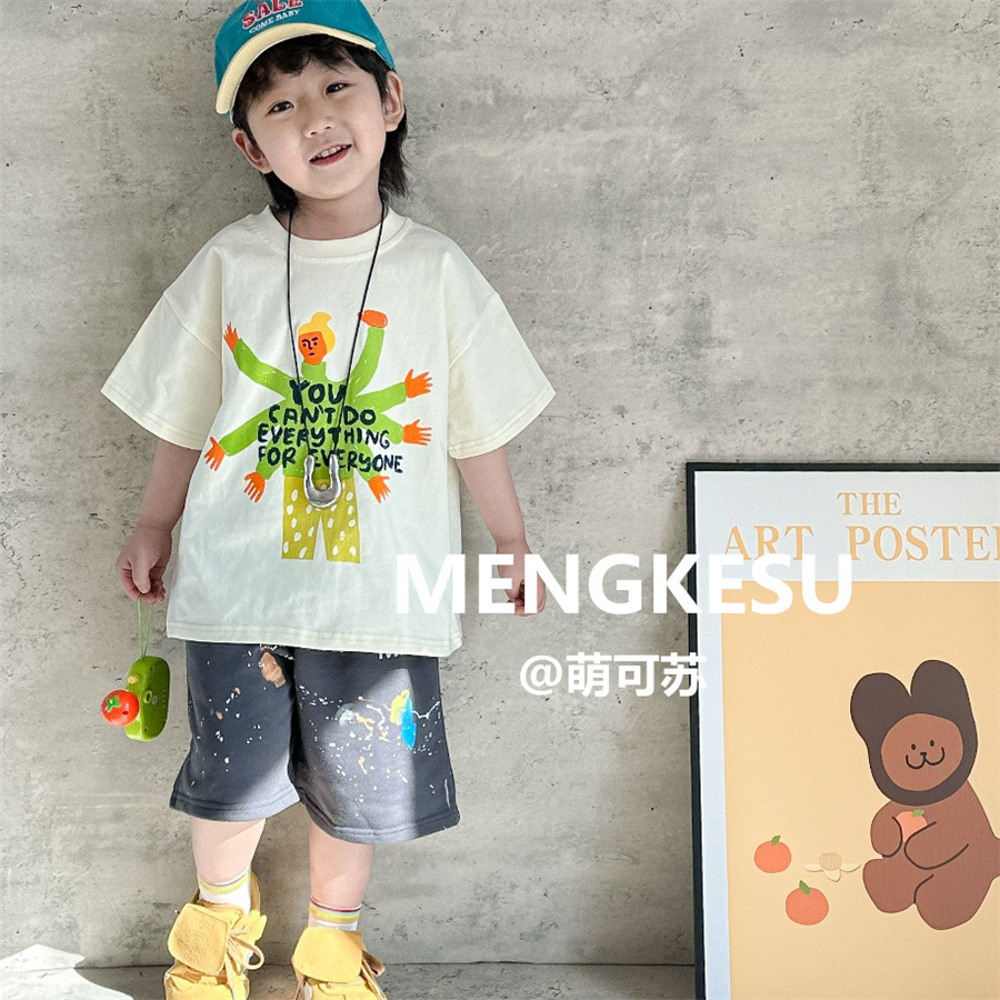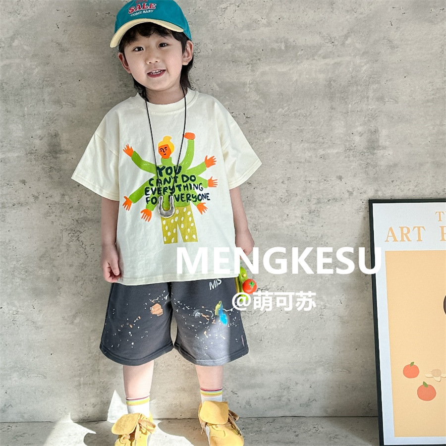 Moe Su 어린이 반팔 티셔츠 순수 코튼 트렌디 브랜드 새로운 여름 원피스 아기 어린이 만화 반팔 티셔츠