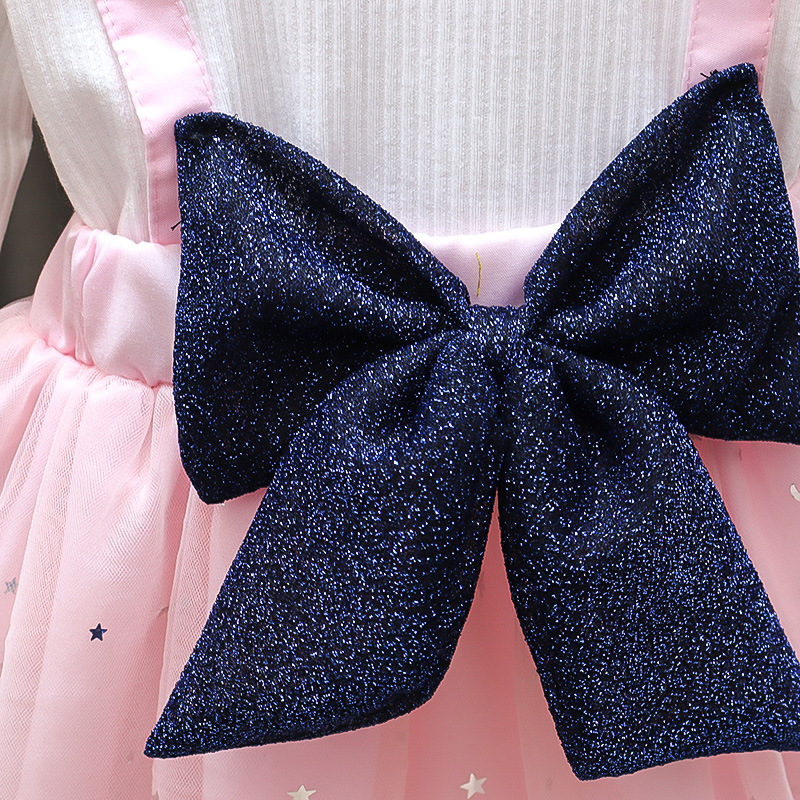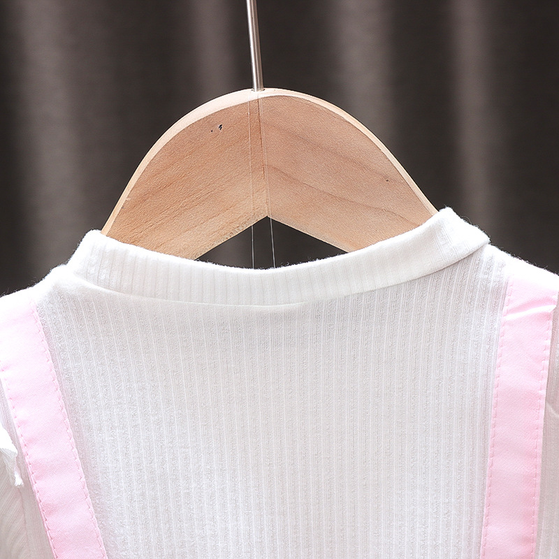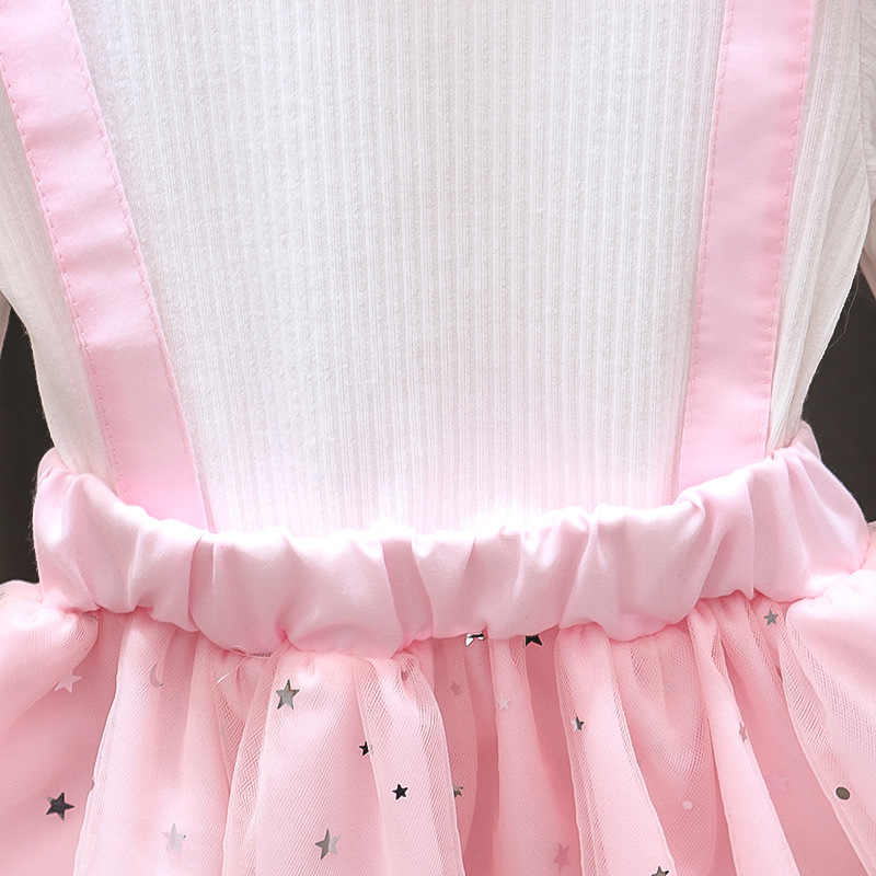 소녀의 외국 스타일 원피스 봄과 가을 원피스 아기 가짜 2 조각 어린이 원피스 2025 긴 소매 스트랩 어린 소녀의 공주 원피스