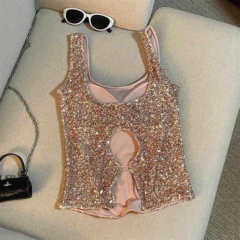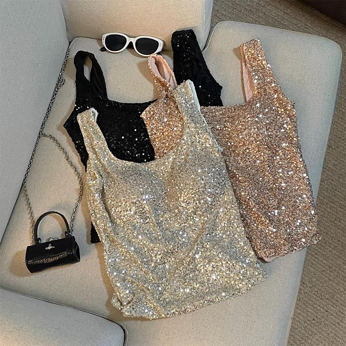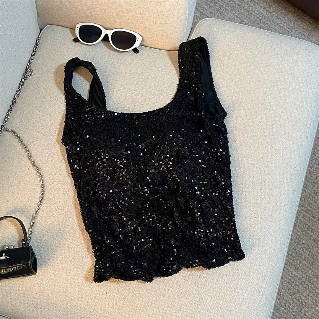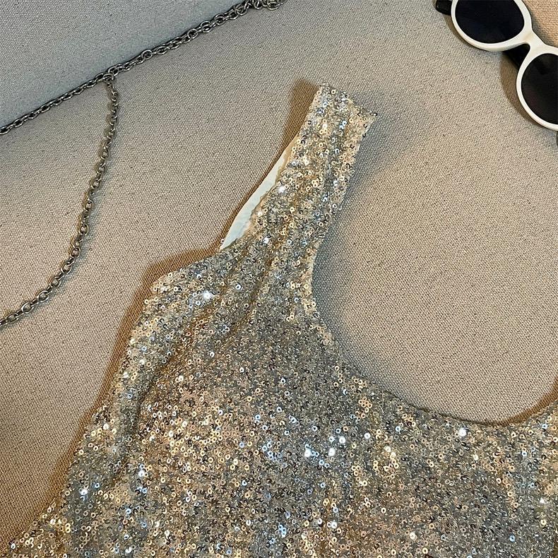 얼음 실크 탄성 편안함 뜨거운 소녀 순수한 내부와 외부에 착용하고 싶은 가슴 패드가있는 견고한 스팽글 짧은 캐미솔스토어 가기