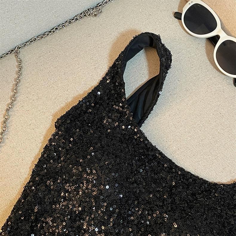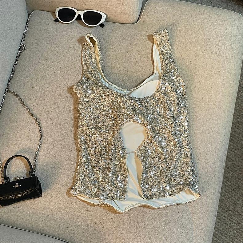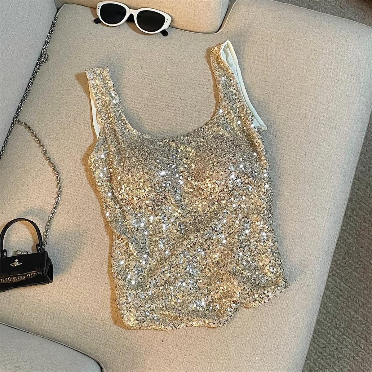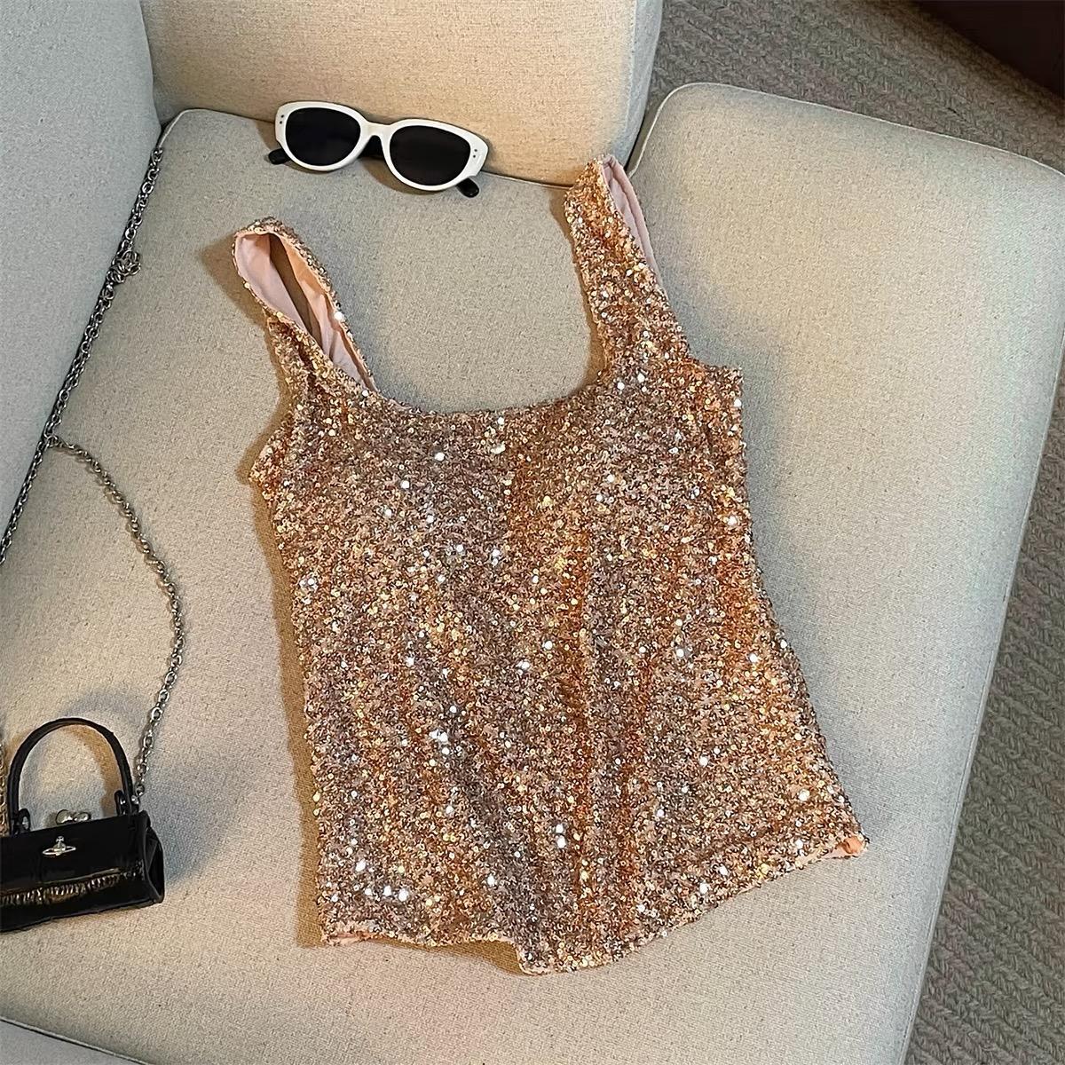 얼음 실크 탄성 편안함 뜨거운 소녀 순수한 내부와 외부에 착용하고 싶은 가슴 패드가있는 견고한 스팽글 짧은 캐미솔스토어 가기