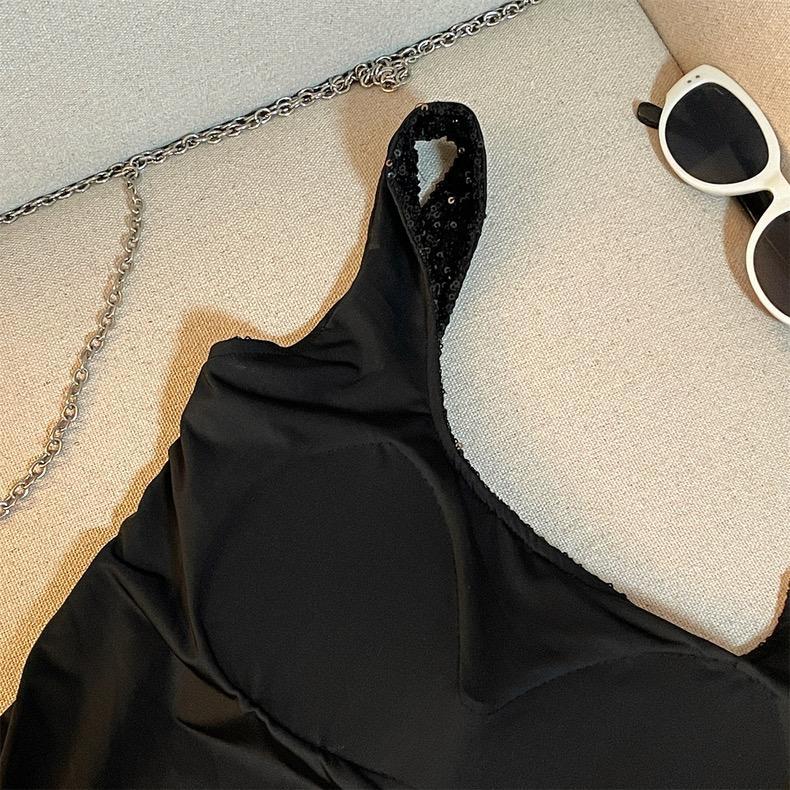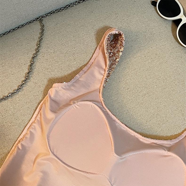 얼음 실크 탄성 편안함 뜨거운 소녀 순수한 내부와 외부에 착용하고 싶은 가슴 패드가있는 견고한 스팽글 짧은 캐미솔