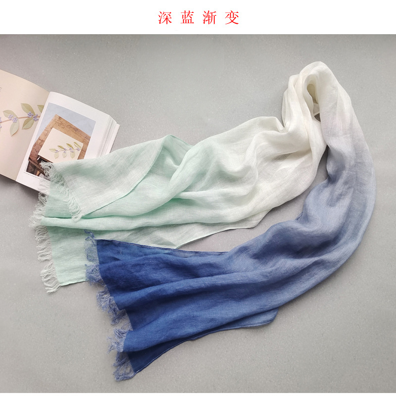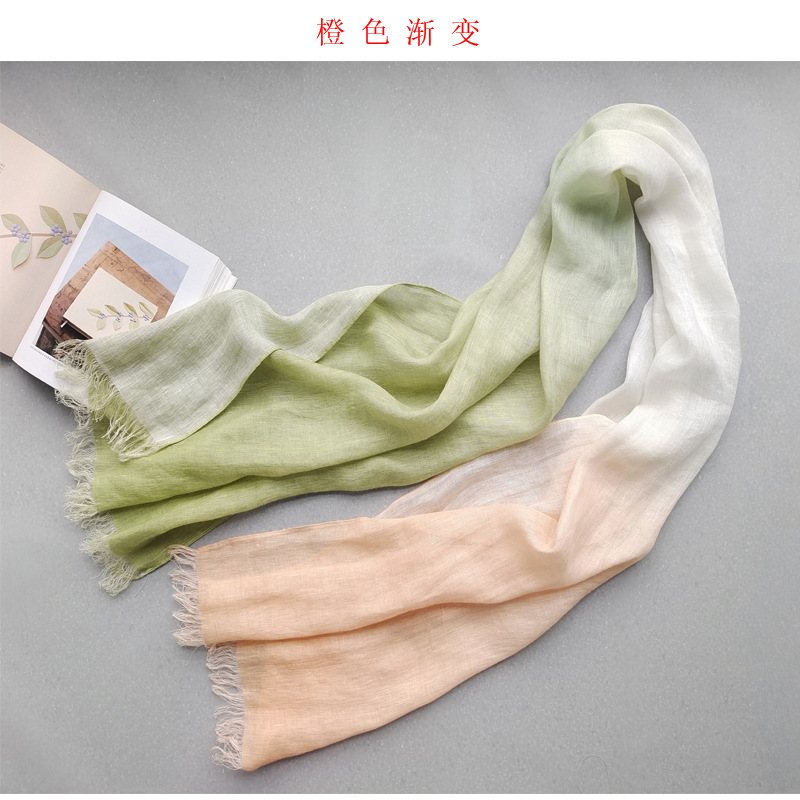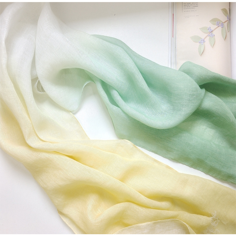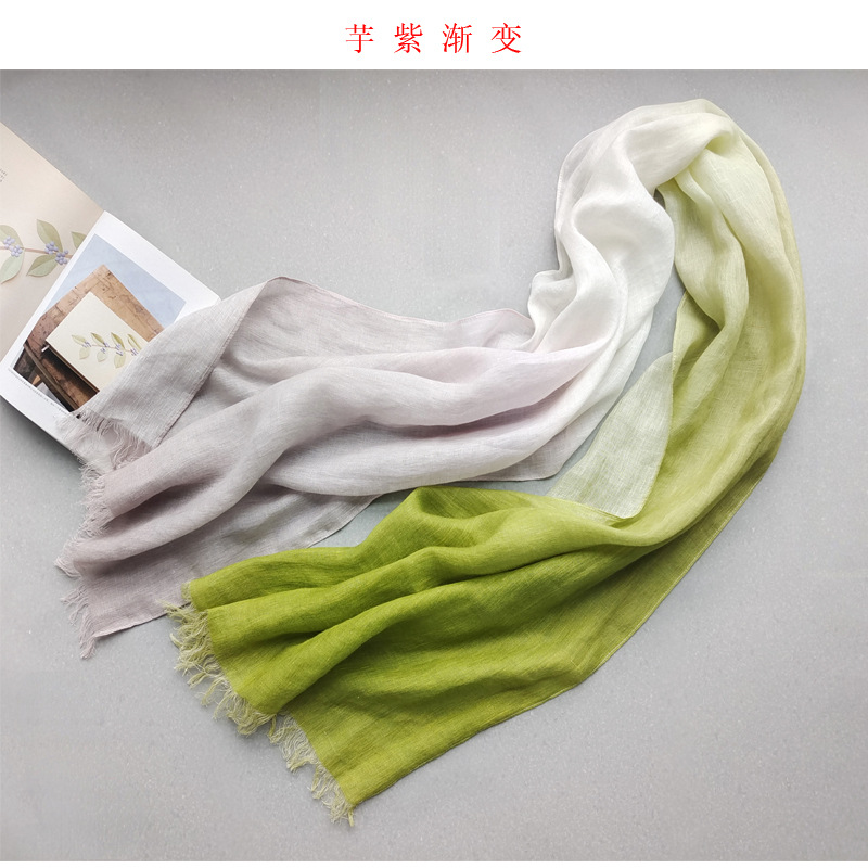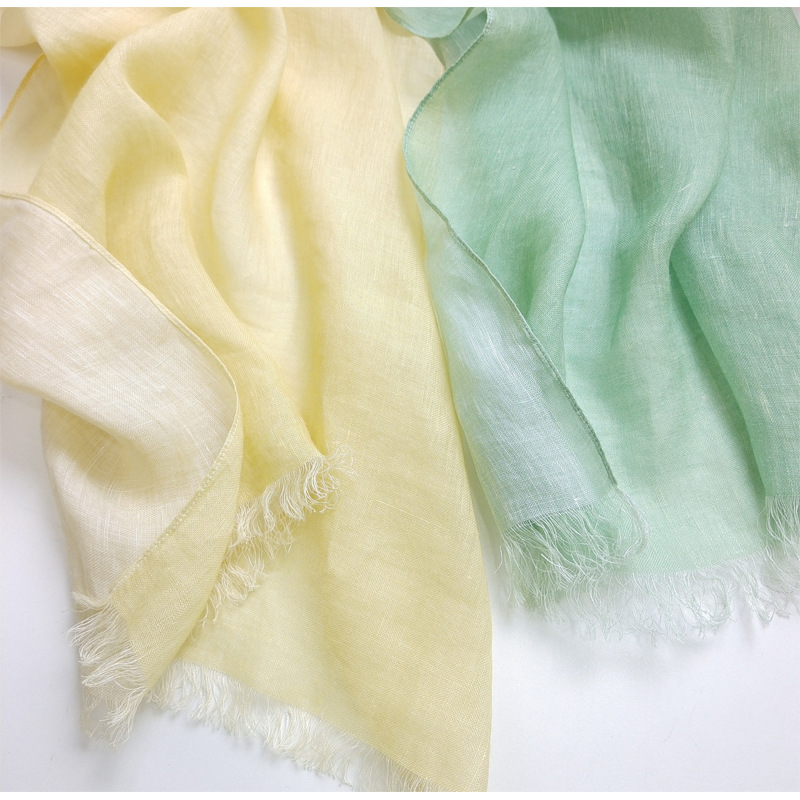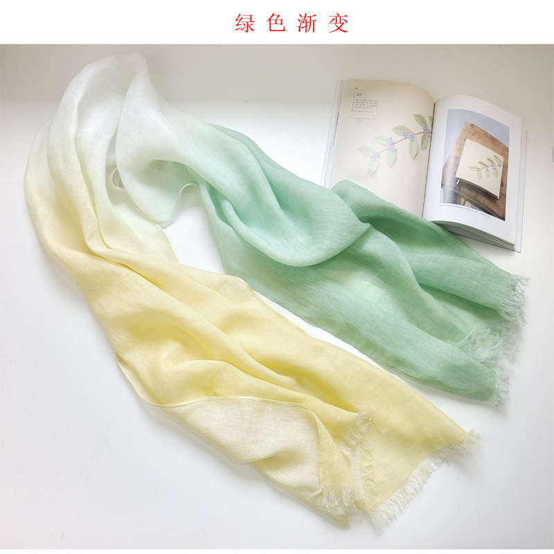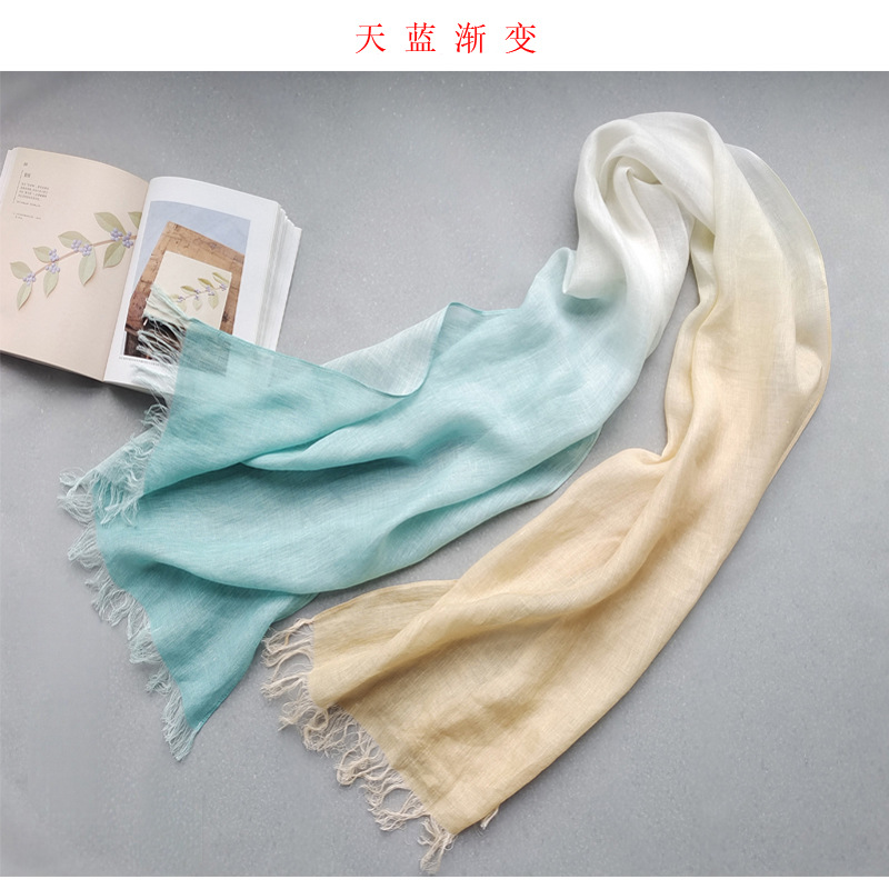 100 순수 리넨 봄과 여름 새로운 창조적 인 스카프 그라디언트 스타일 양산 목도리 여성을위한 다중 사용 일본 스카프스토어 가기