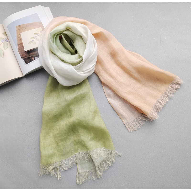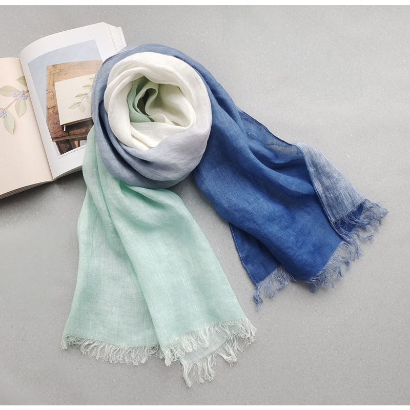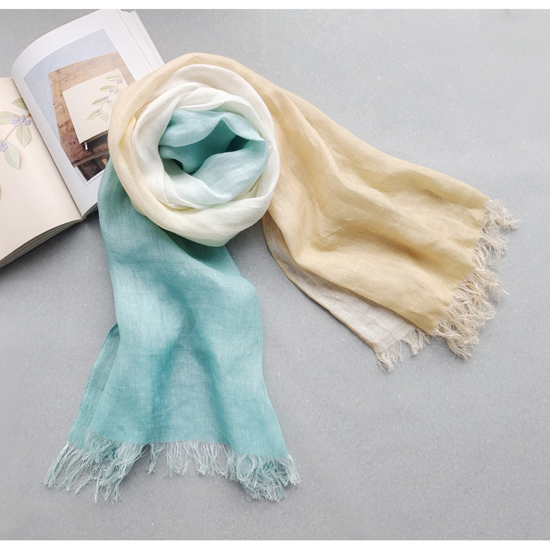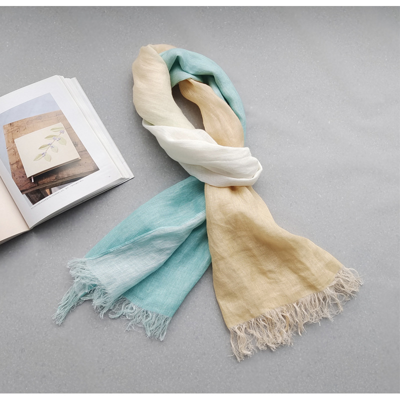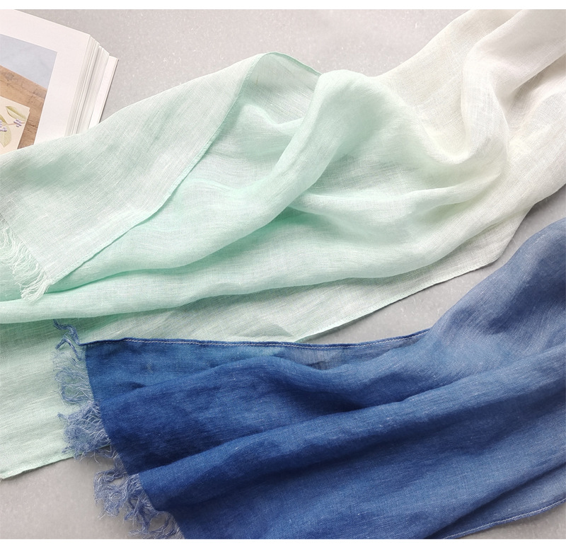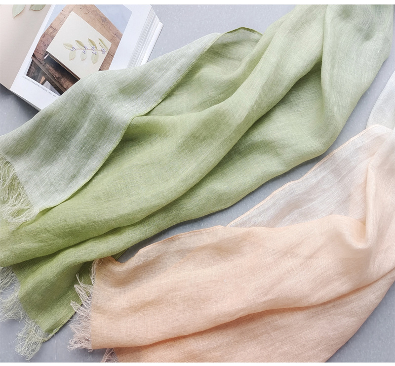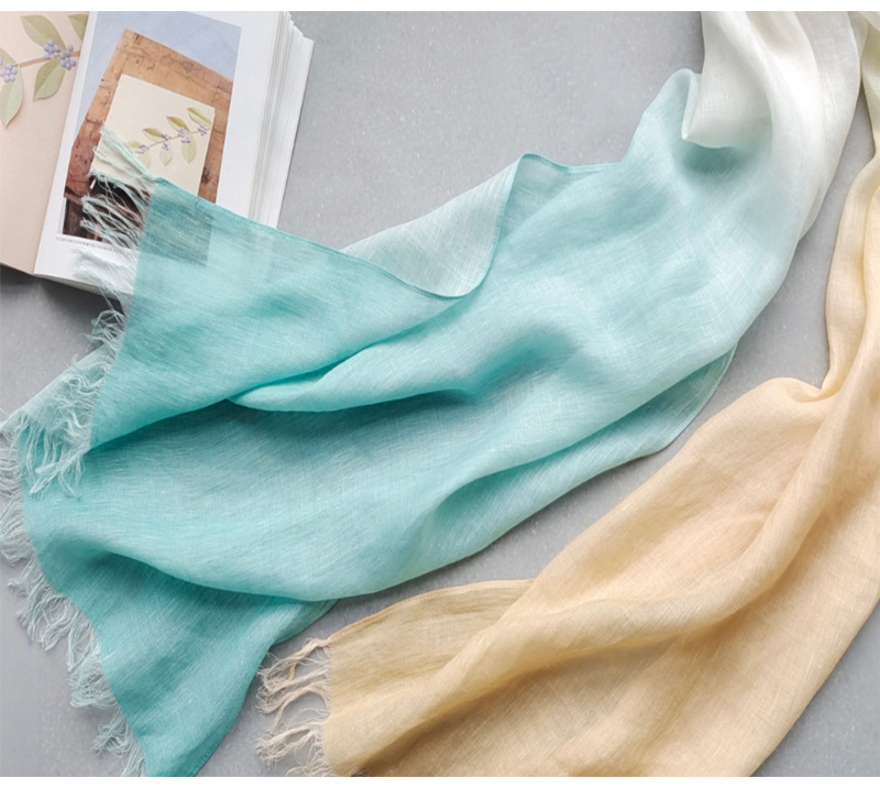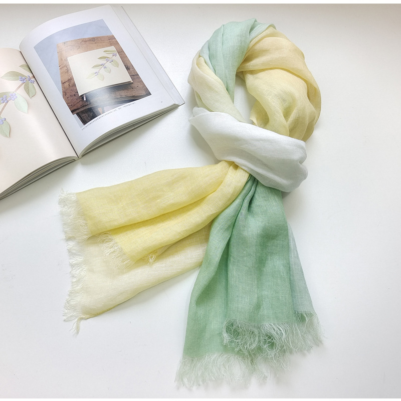 100 순수 리넨 봄과 여름 새로운 창조적 인 스카프 그라디언트 스타일 양산 목도리 여성을위한 다중 사용 일본 스카프스토어 가기