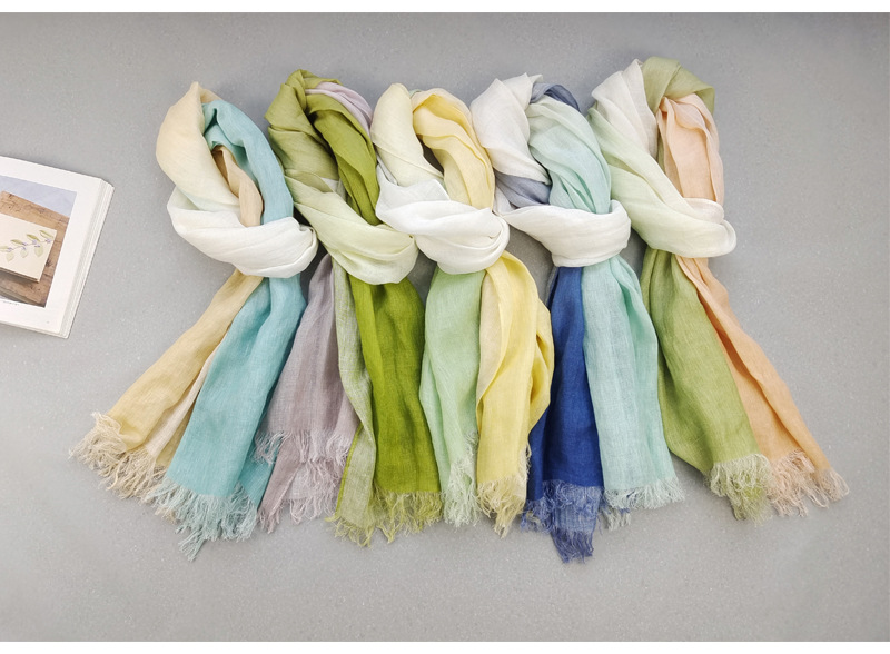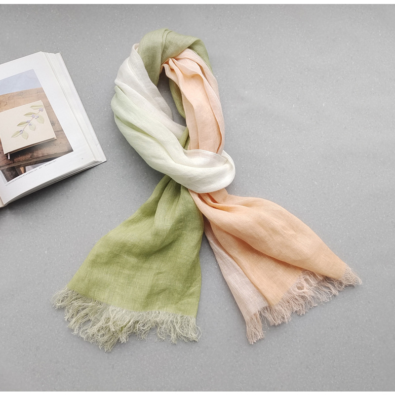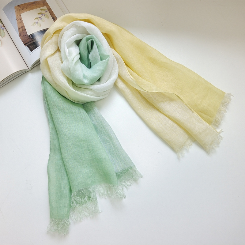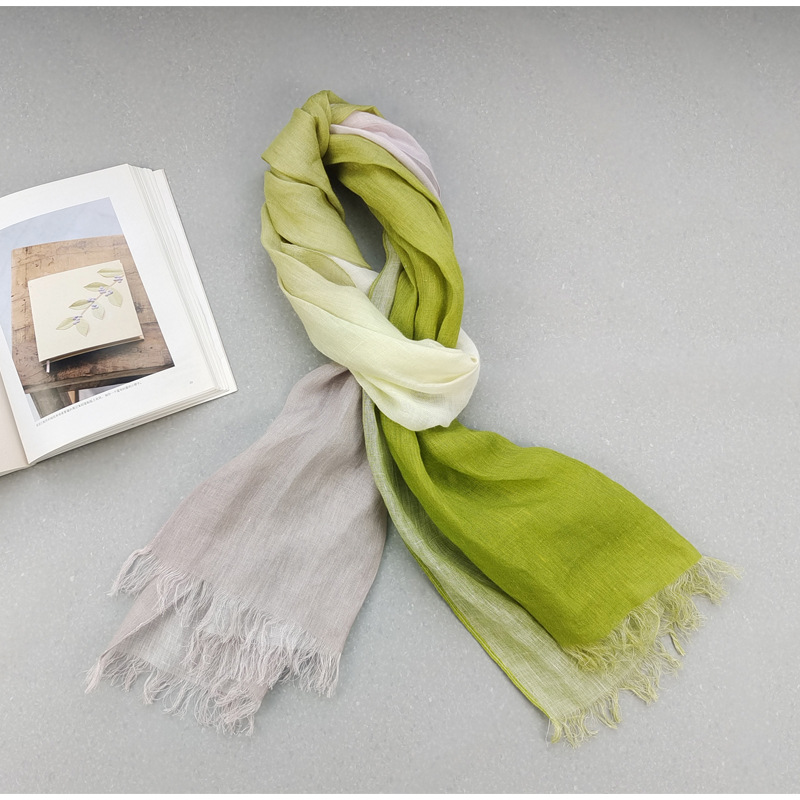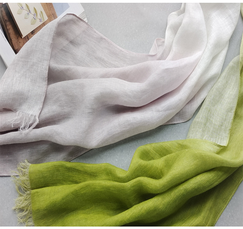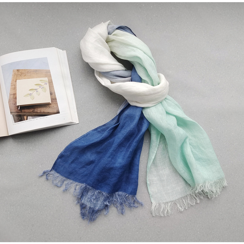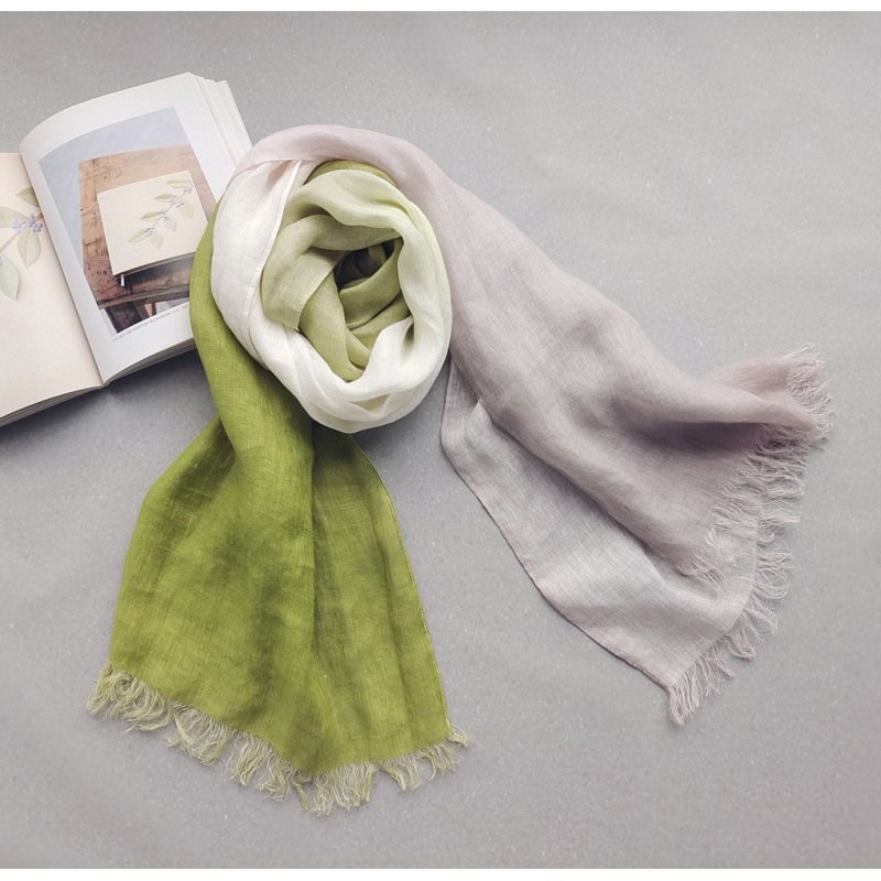 100 순수 리넨 봄과 여름 새로운 창조적 인 스카프 그라디언트 스타일 양산 목도리 여성을위한 다중 사용 일본 스카프스토어 가기