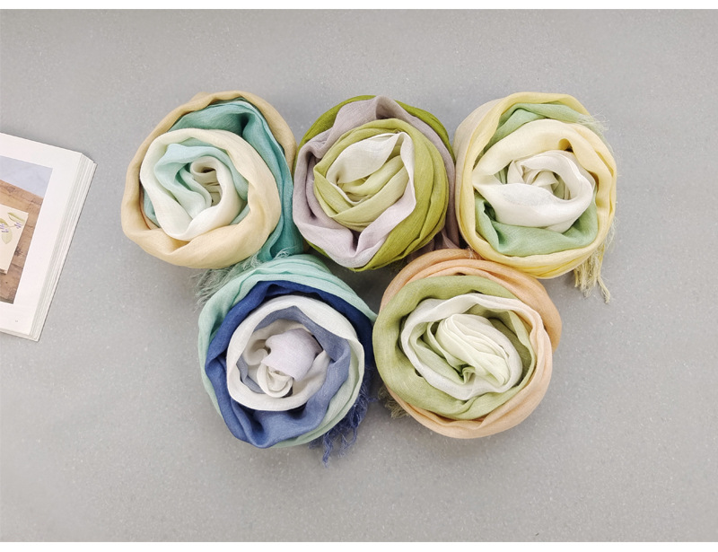 100 순수 리넨 봄과 여름 새로운 창조적 인 스카프 그라디언트 스타일 양산 목도리 여성을위한 다중 사용 일본 스카프