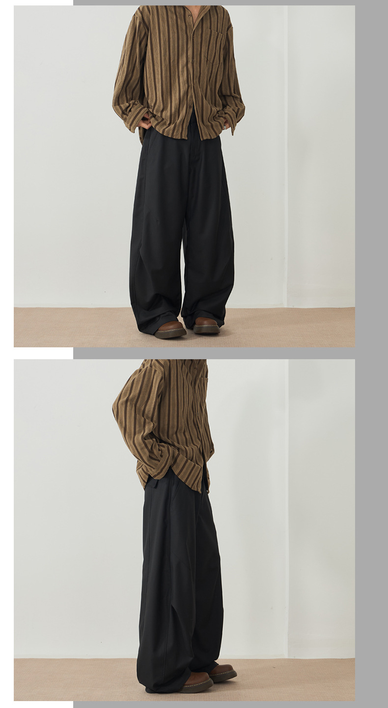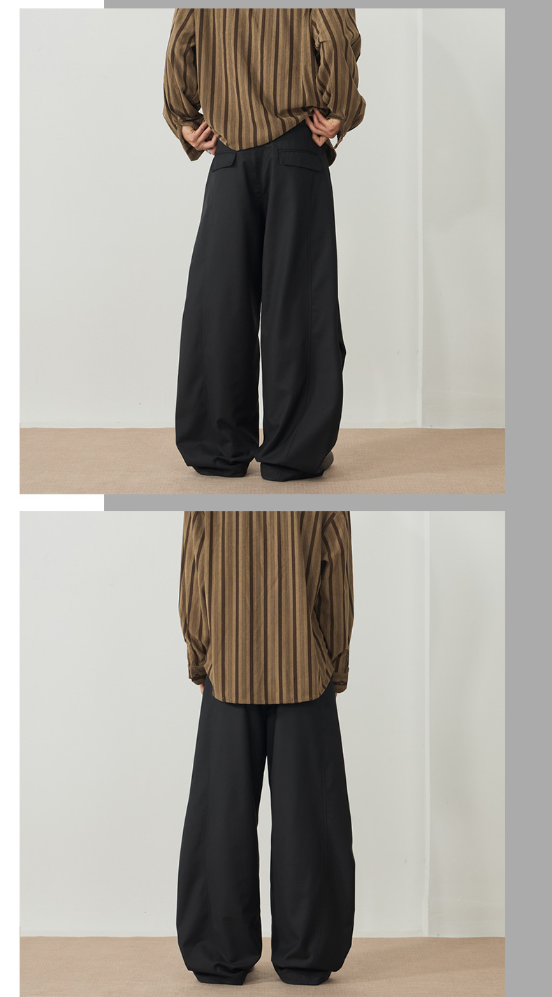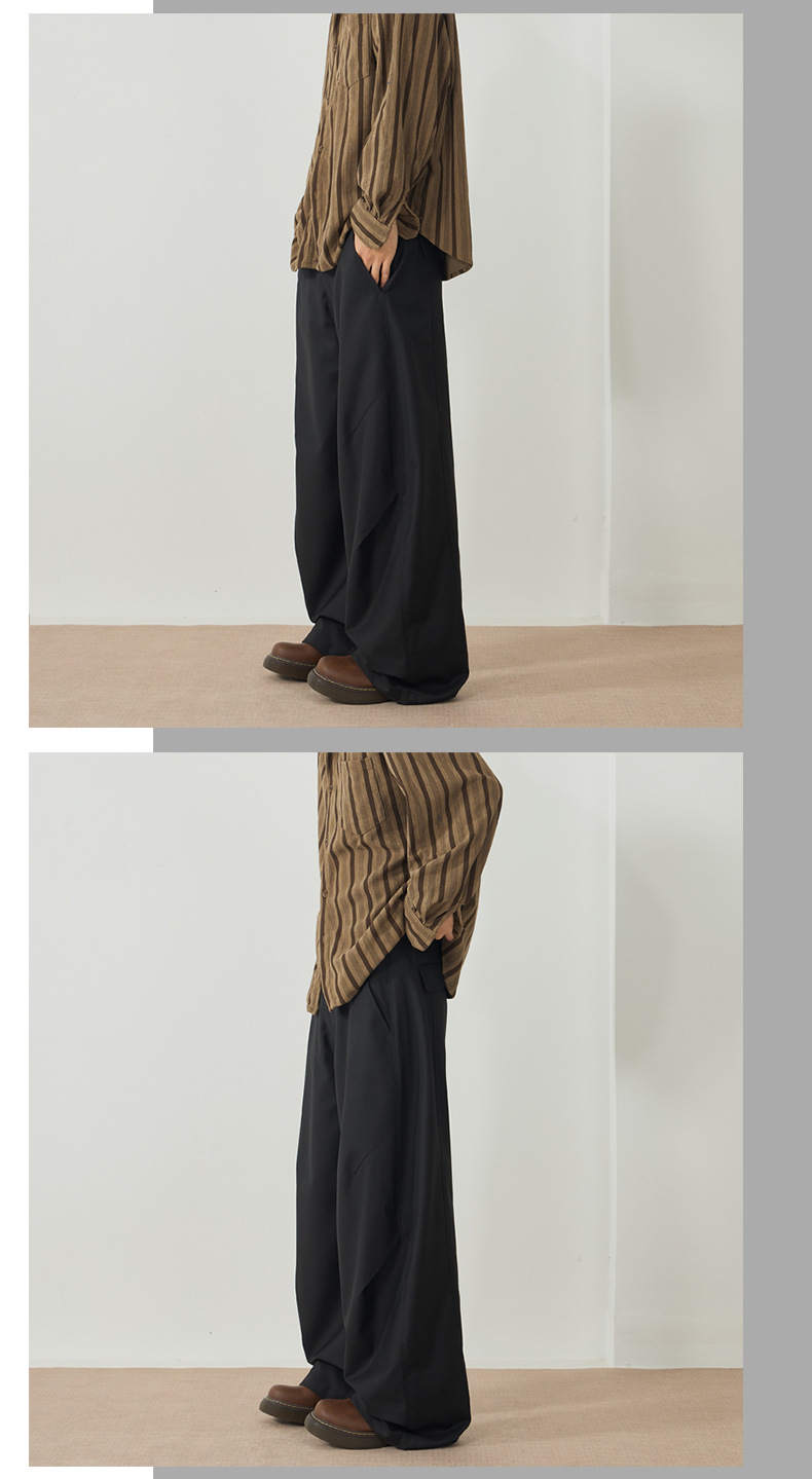 무시 의류 # 봄 여름 신상 홍콩 스타일 블랙 웨이브컷 팬츠, 드레이프한 와이드 레그 남녀공용 캐주얼 팬츠스토어 가기