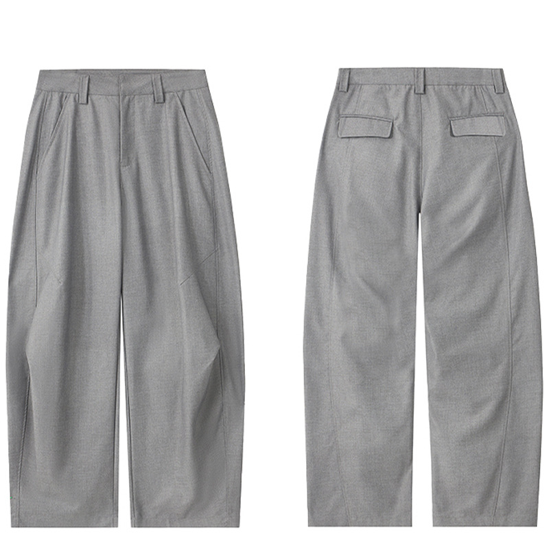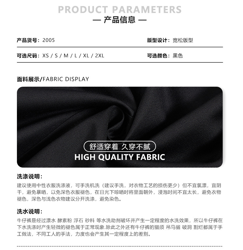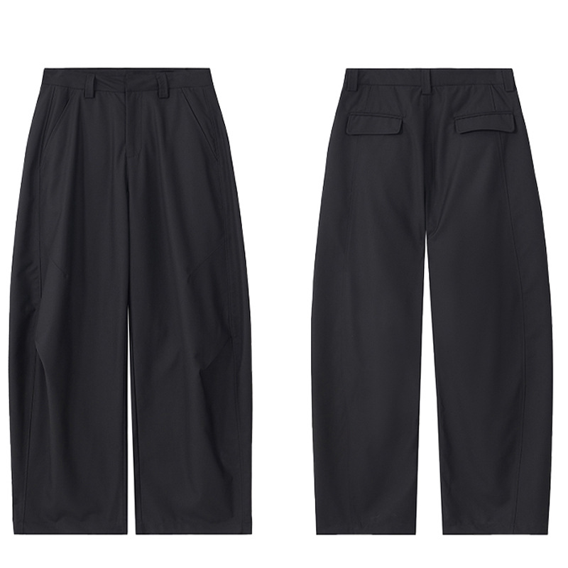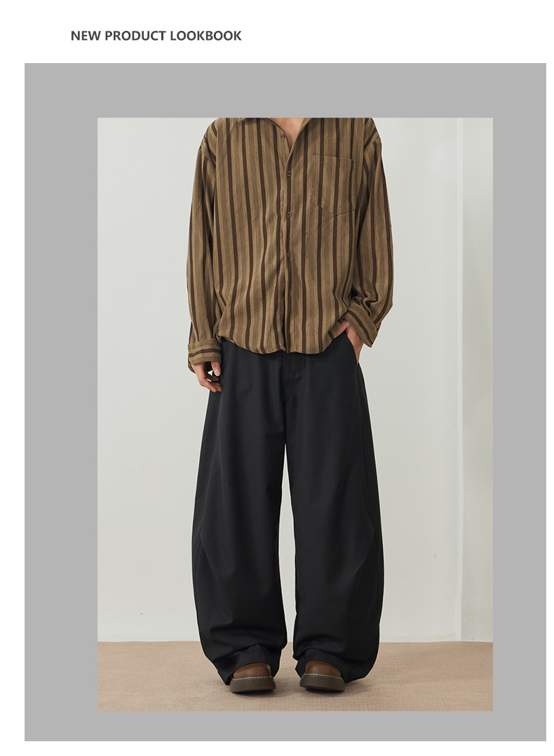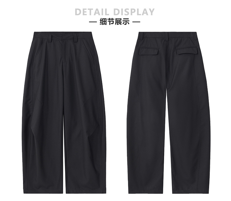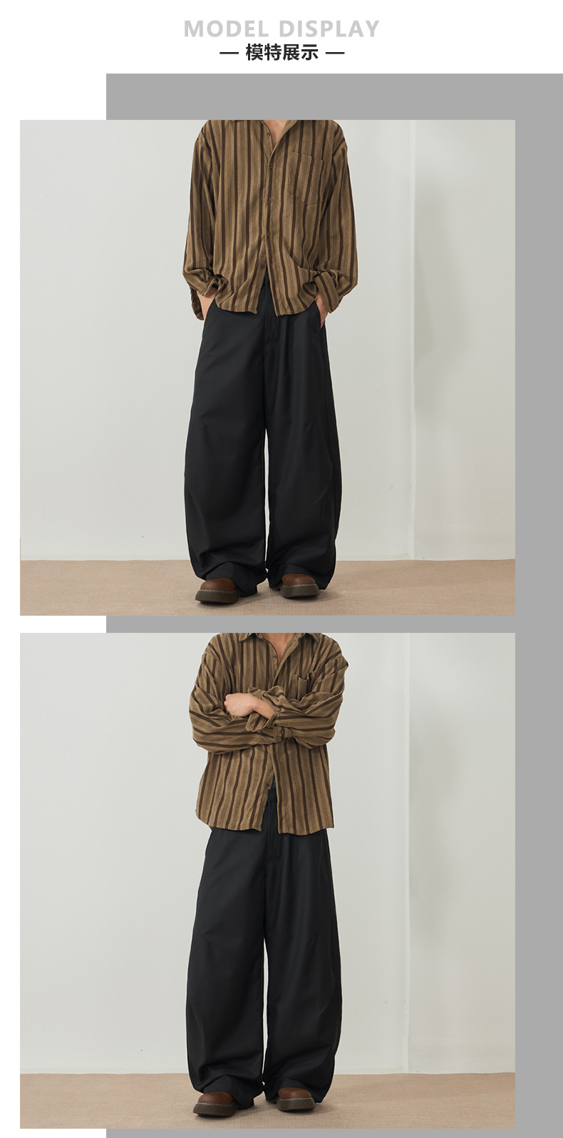 무시 의류 # 봄 여름 신상 홍콩 스타일 블랙 웨이브컷 팬츠, 드레이프한 와이드 레그 남녀공용 캐주얼 팬츠스토어 가기